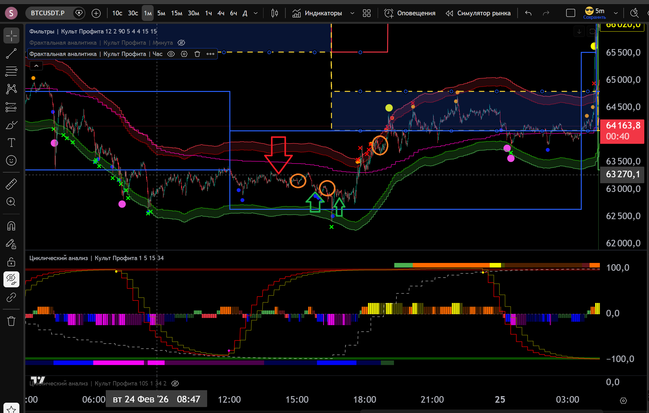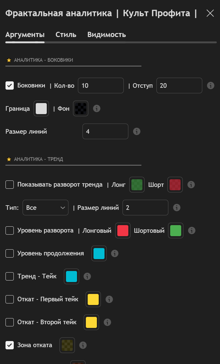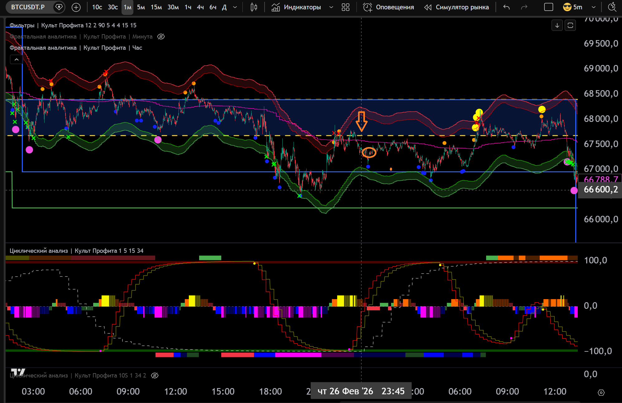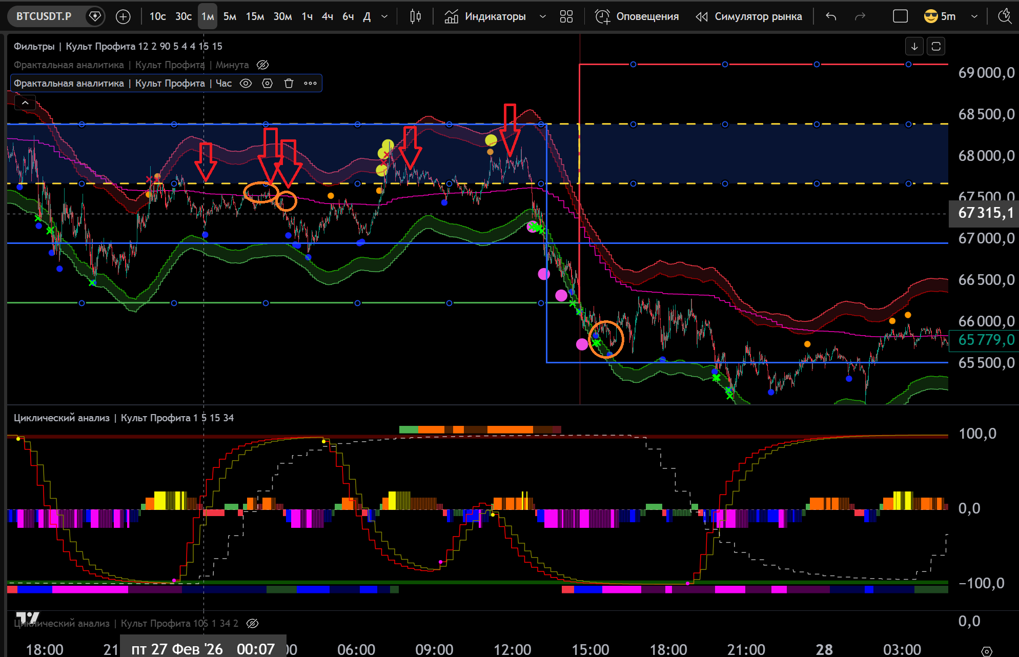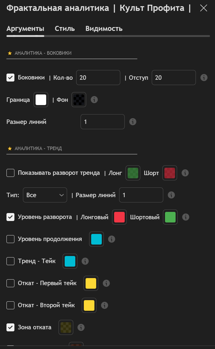 Основное - для вкладки ТФ 5m в индикаторе Фрактальная Аналитика Минута установил множитель 1.786 чтобы видеть боковики покрупнее