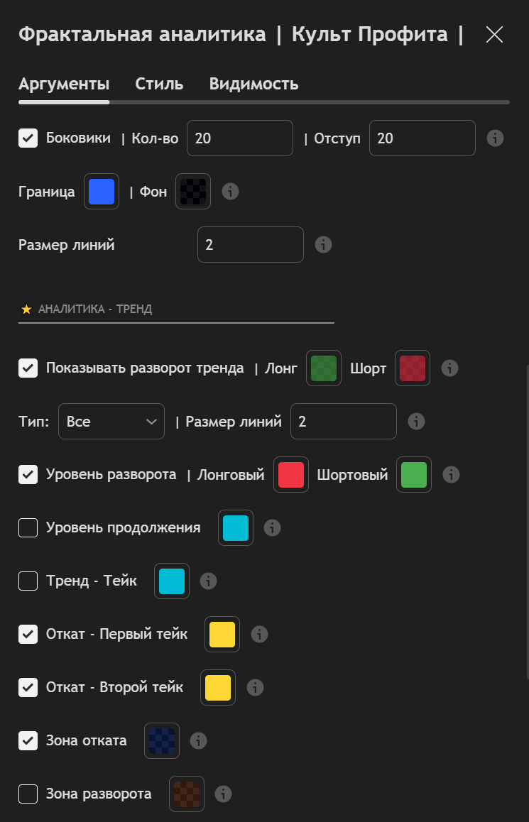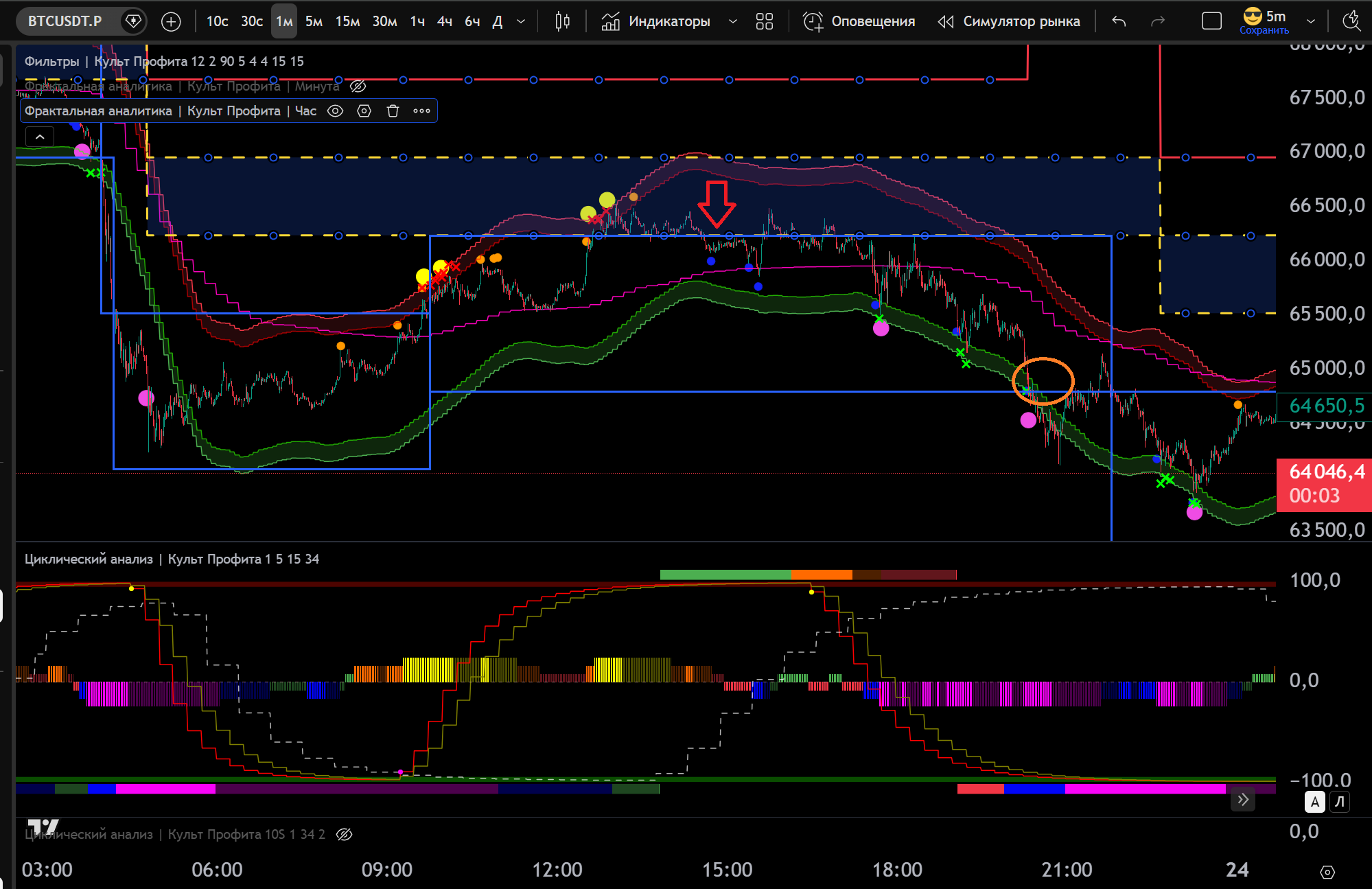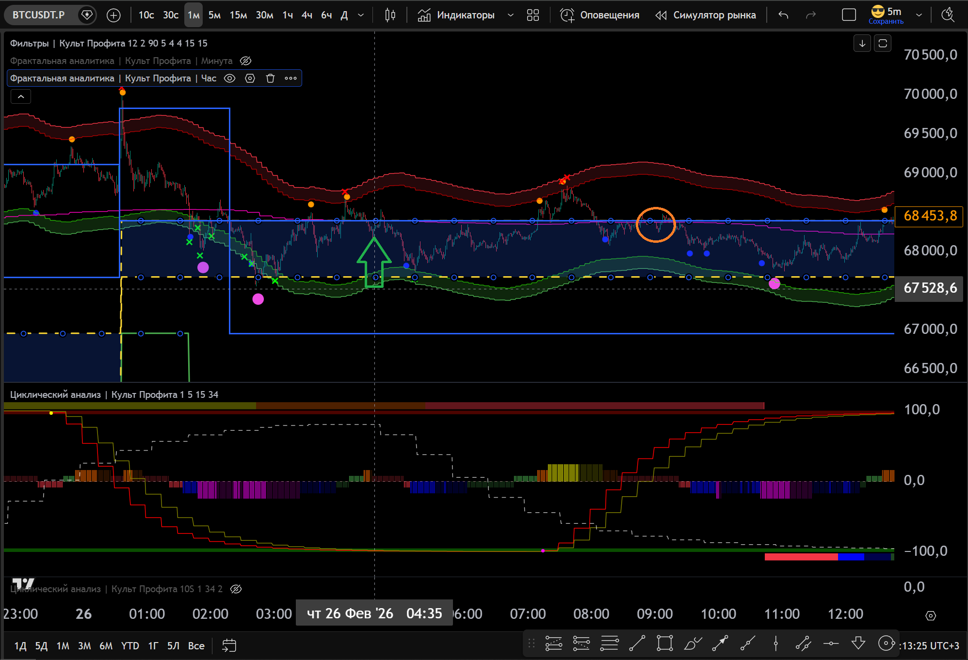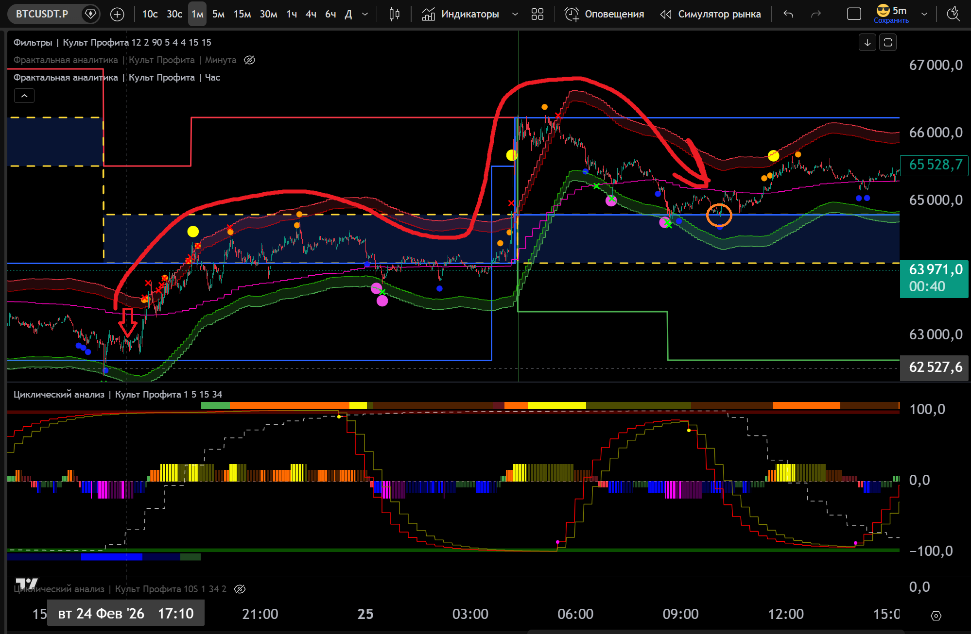 Основное - для вкладки ТФ 5m в индикаторе Фрактальная Аналитика Минута установил множитель 1.786 чтобы видеть боковики покрупнее
