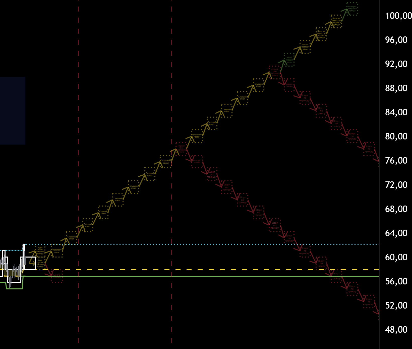 Откаты к нижней границе тренда