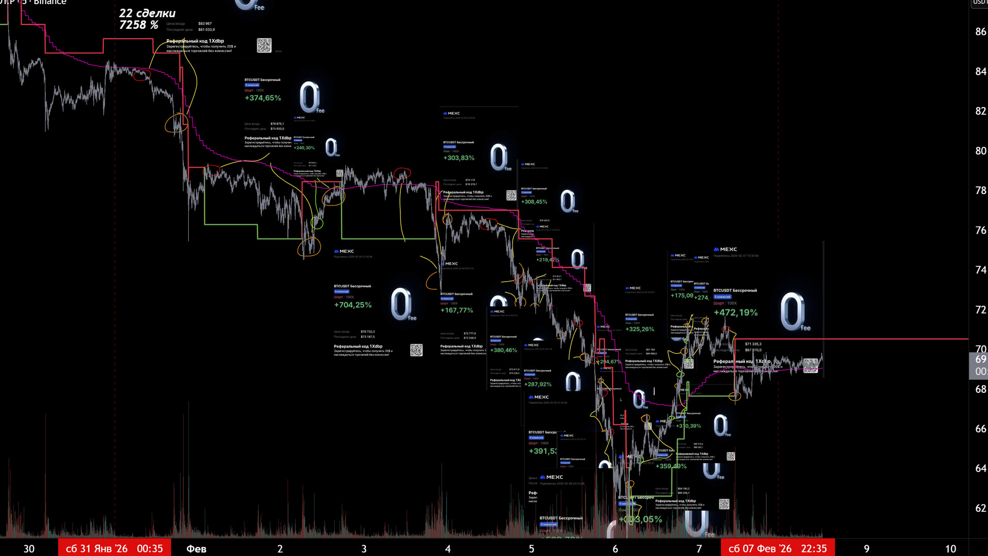 За неделю 22 сделки + 7258%.