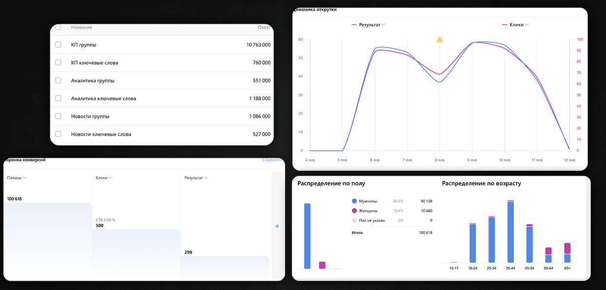 был проведён глубокий ресёрч по группам и ключевым словам;
