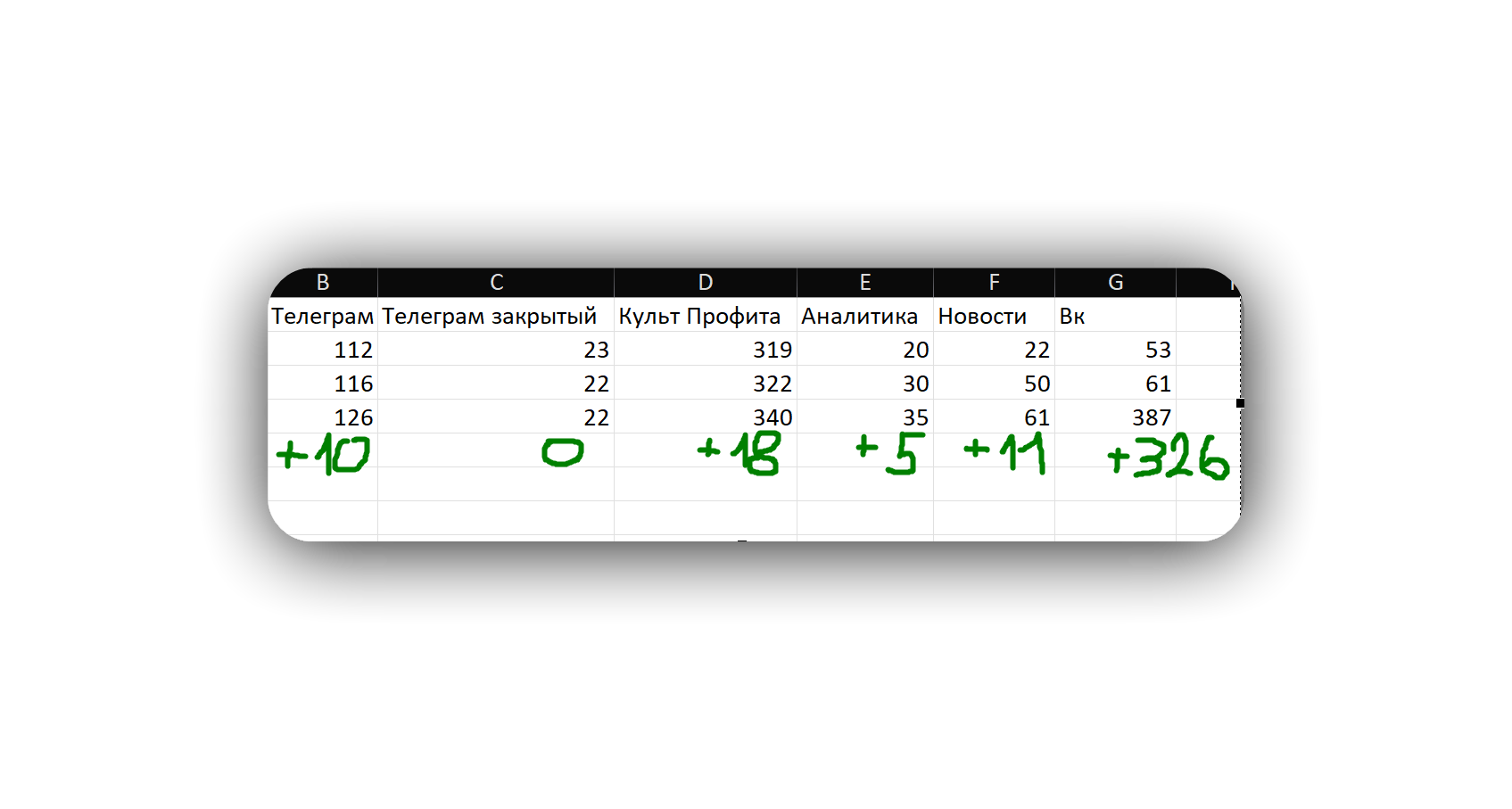 Telegram (основной канал): +10 подписчиков, всего 126