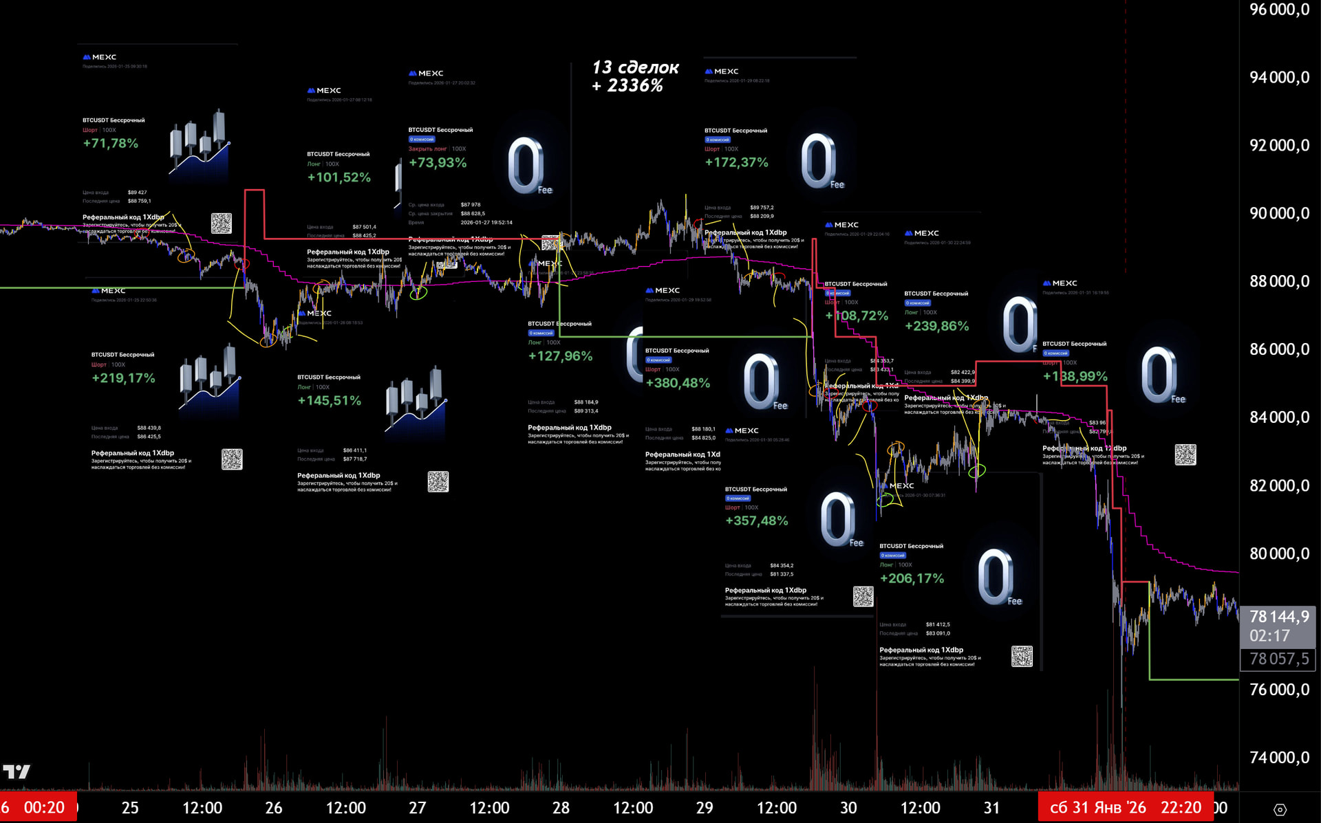 За неделю 13 сделок + 2336%.