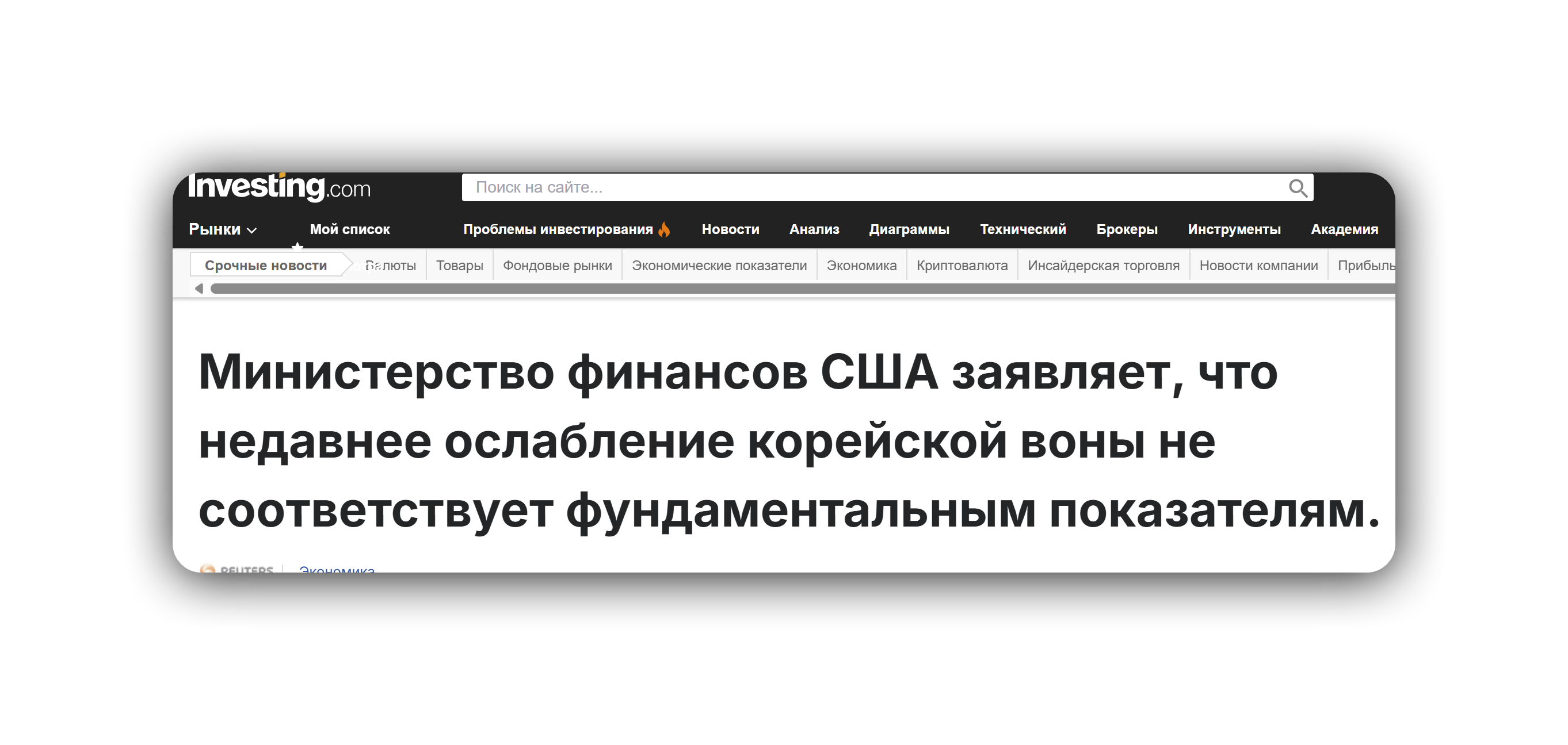 Источник: investing.com — https://www.investing.com/news/economy-news/us-treasury-says-recent-korean-won-weakness-not-aligned-to-fundamentals-4474850