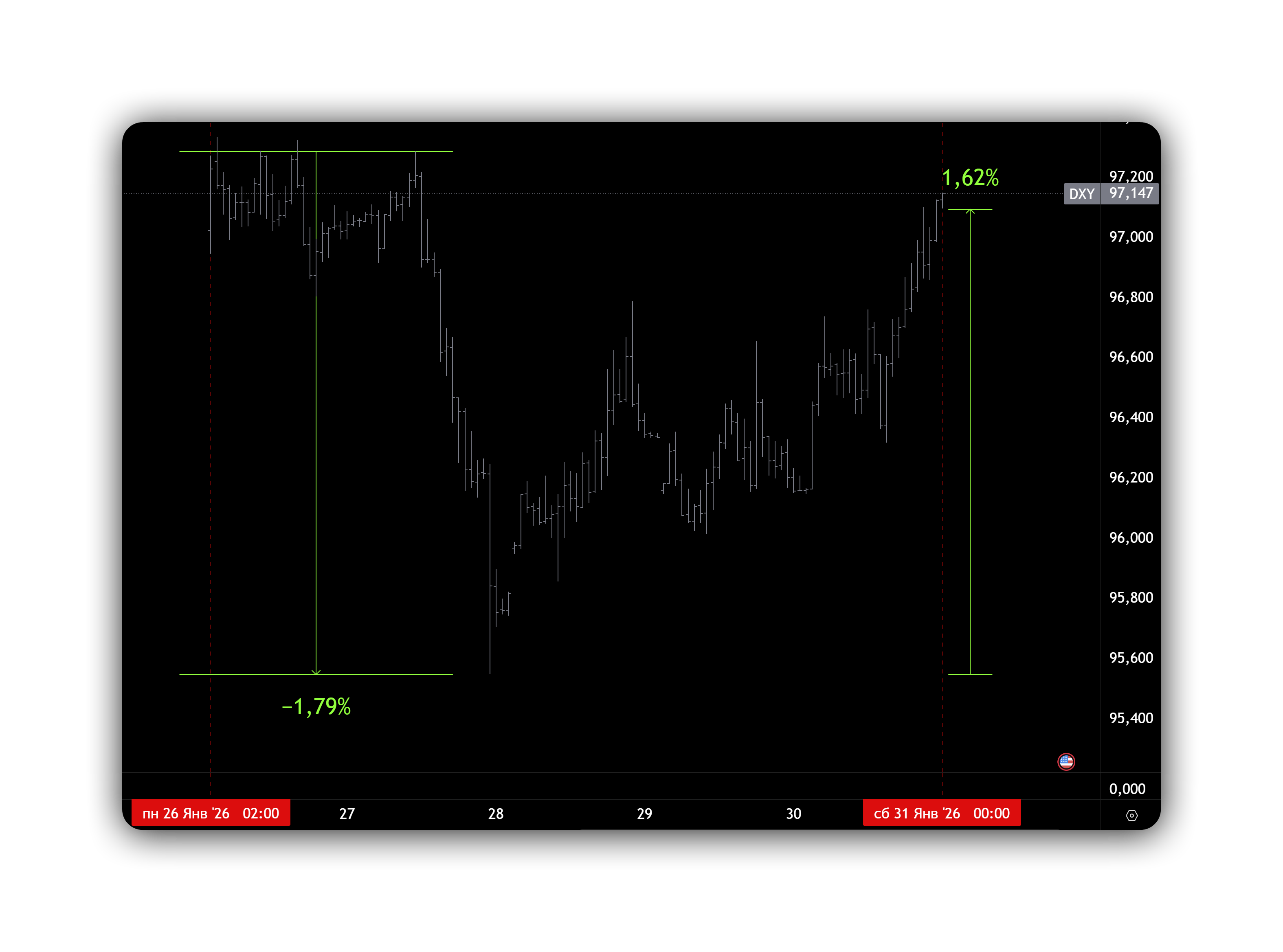 Если США начинают давить на курсы публично, это сигнал: FX становится политикой. Для доллара это двояко: с одной стороны, давление на Китай может поддерживать «американскую переговорную позицию», с другой — усиливает торговые риски и может возвращать спрос на доллар как на ликвидность. На графике — скорее рост диапазона, чем тренд.