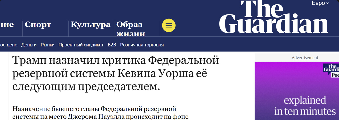 Источник: theguardian.com — https://www.theguardian.com/business/2026/jan/30/donald-trump-nominates-kevin-warsh-us-federal-reserve-chair