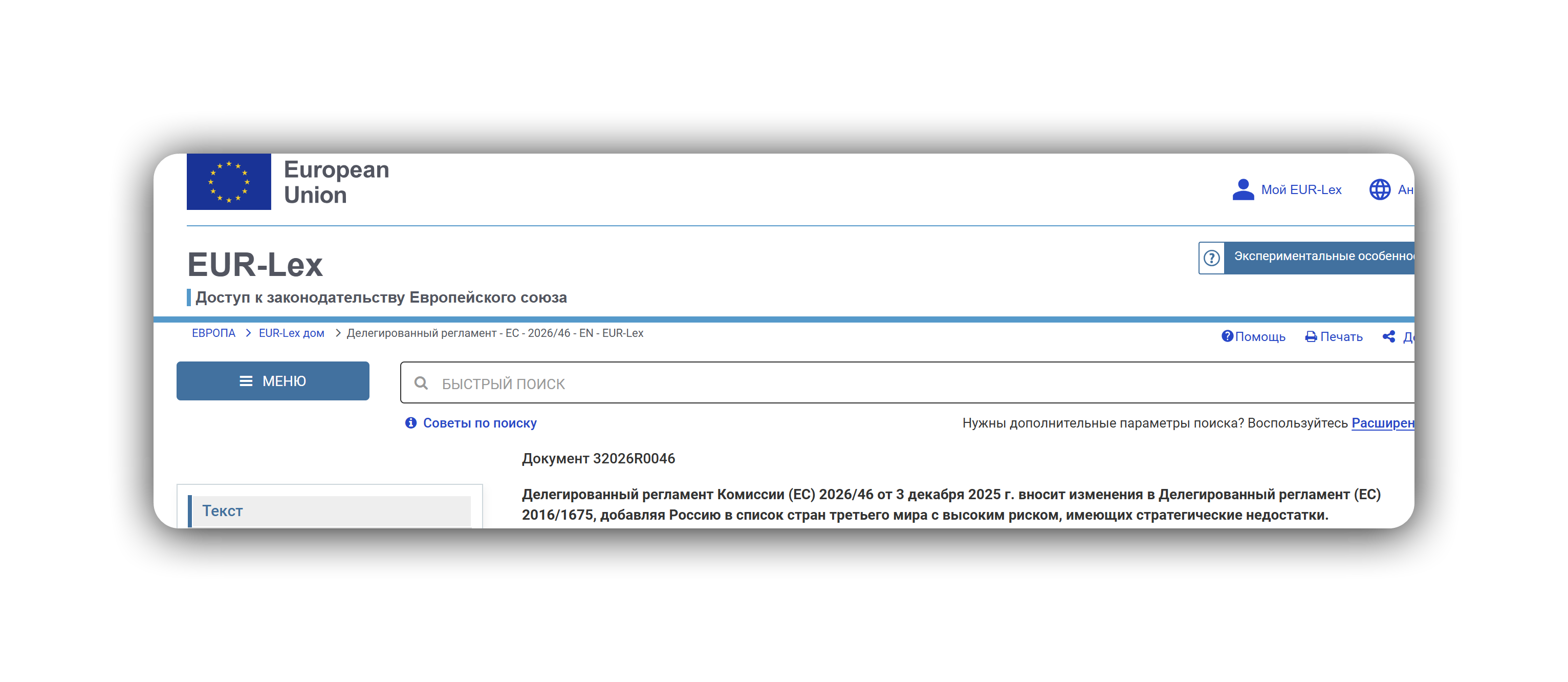Источник: eur-lex.europa.eu — https://eur-lex.europa.eu/eli/reg_del/2026/46/oj