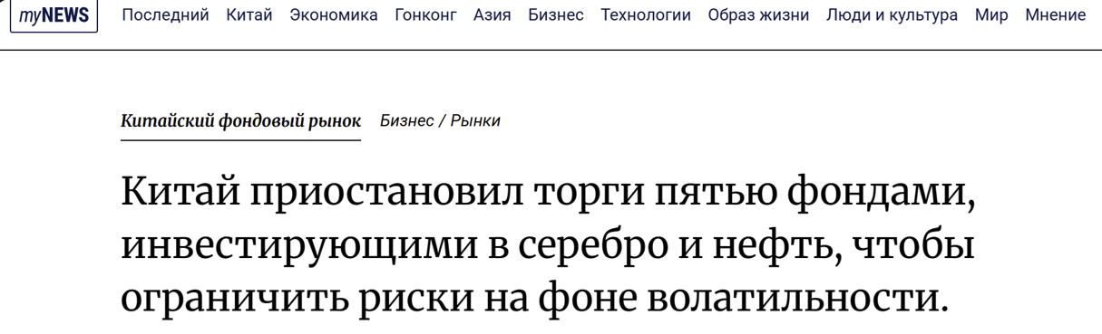 Китай приостанавливает торги рядом фондов на серебро и нефть на фоне волатильности (SCMP) — сигнал регуляторного тормоза DOWN