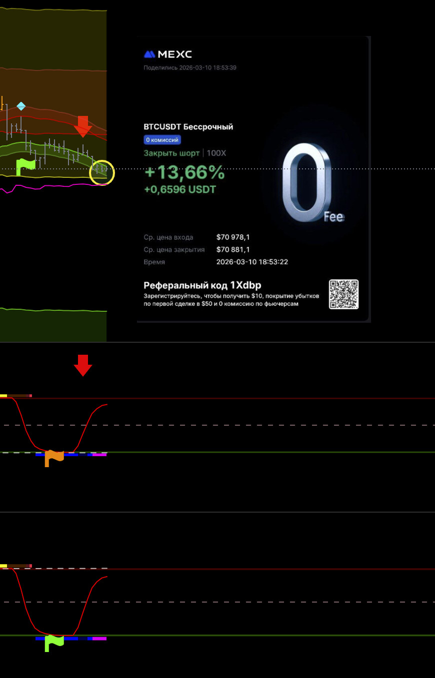 Ну вот первый намек на разворот, и вайбы последнего шорта после которого был прострел на 3% вверх.