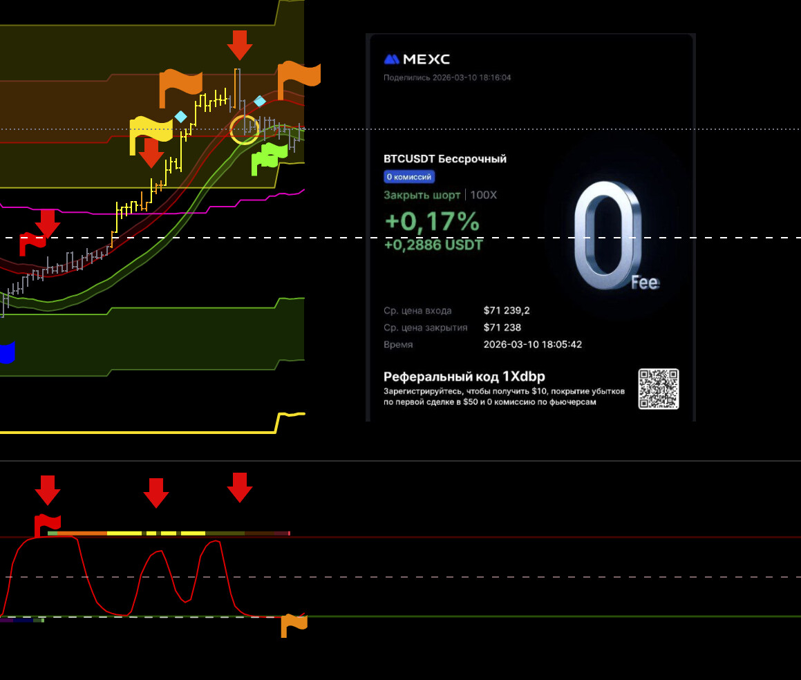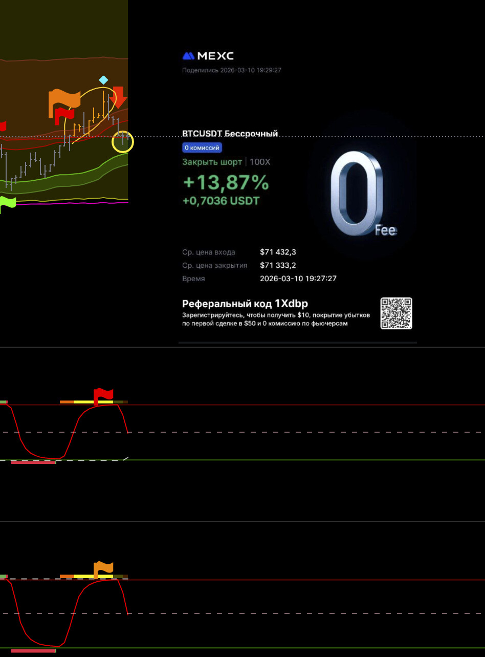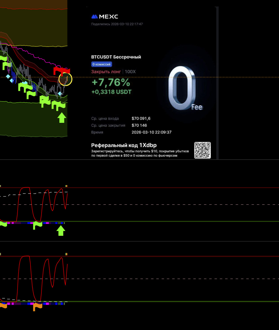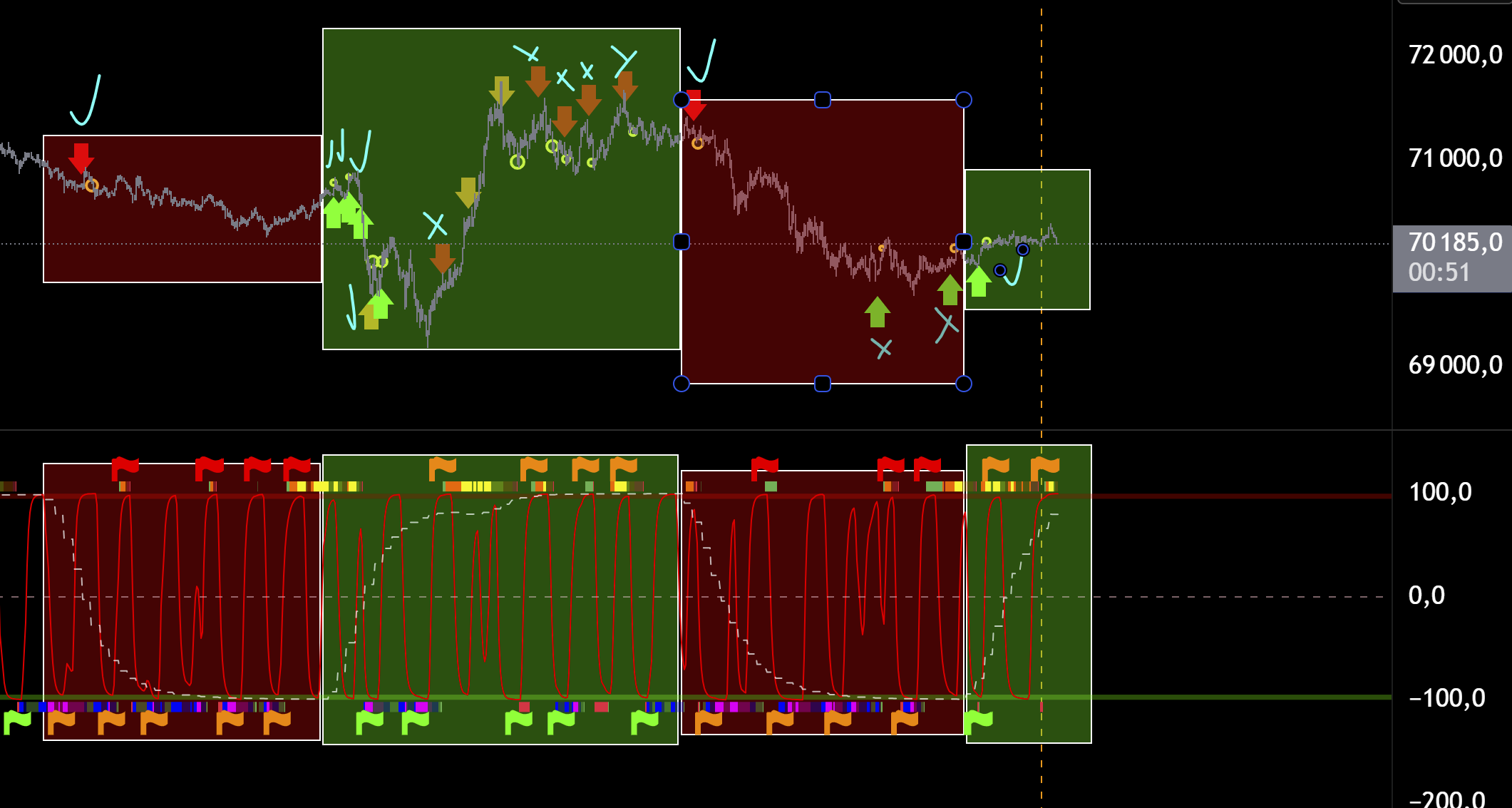 Взяли перехай. В целом перспектива отката есть часов до 22:00. Если рассматривать цикичность. Но снизу уже более серьезная зона поддержки в виде отката и дневной граница 69-70000. Промежуточные 70500 - 69800.