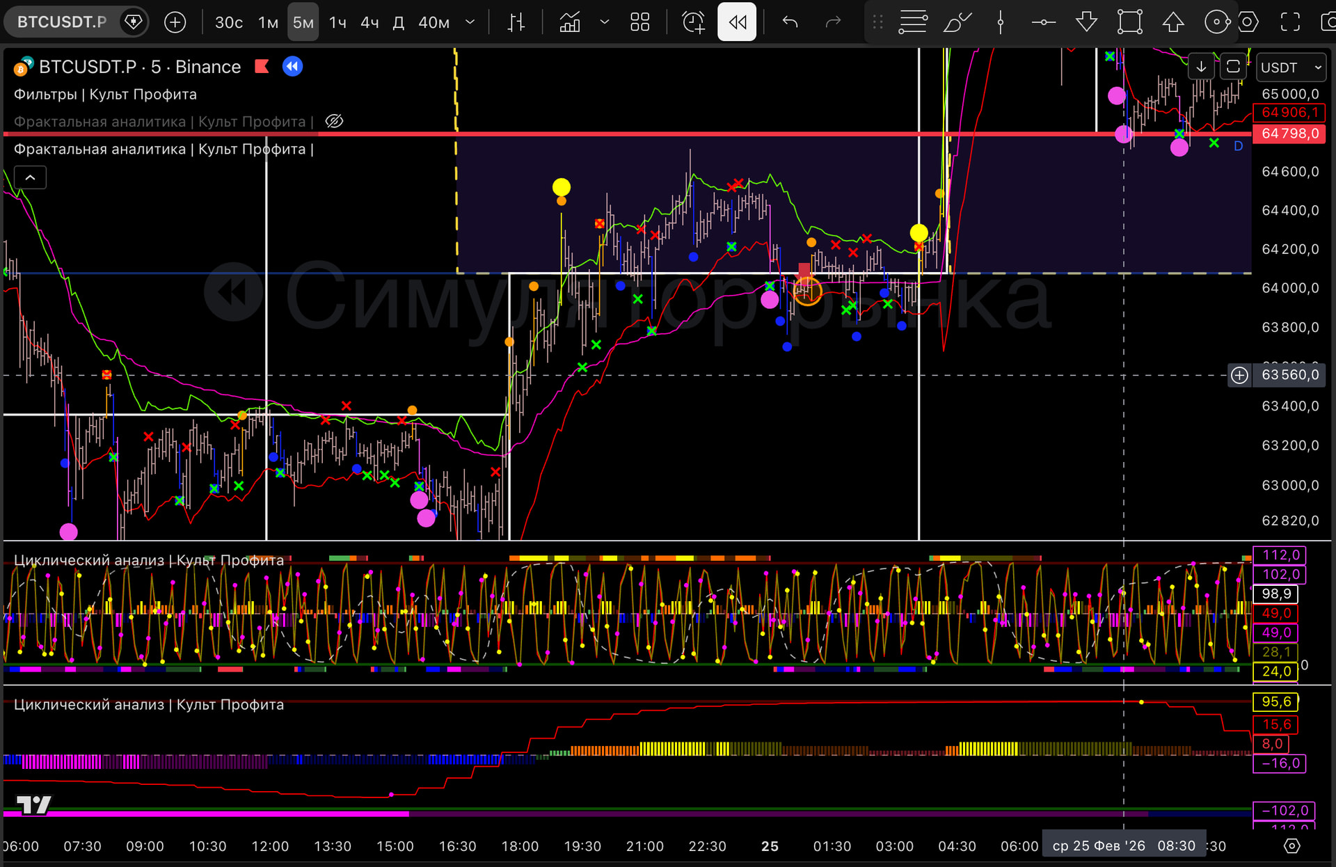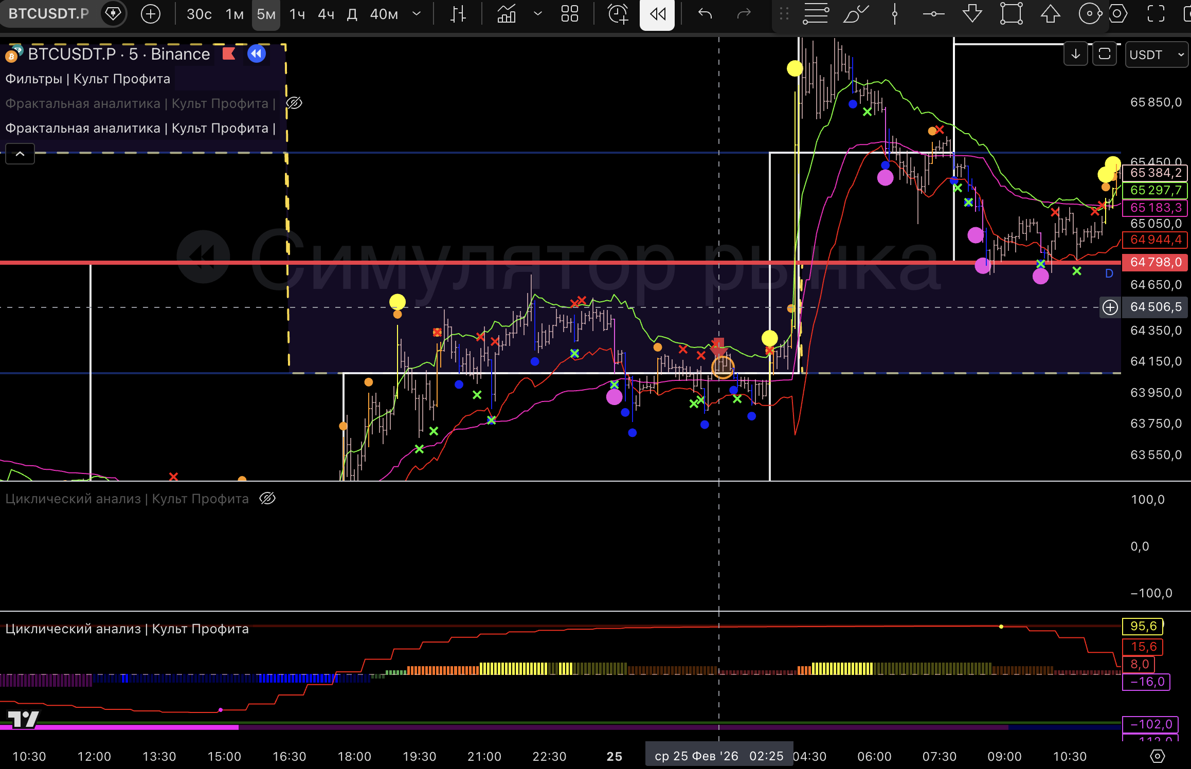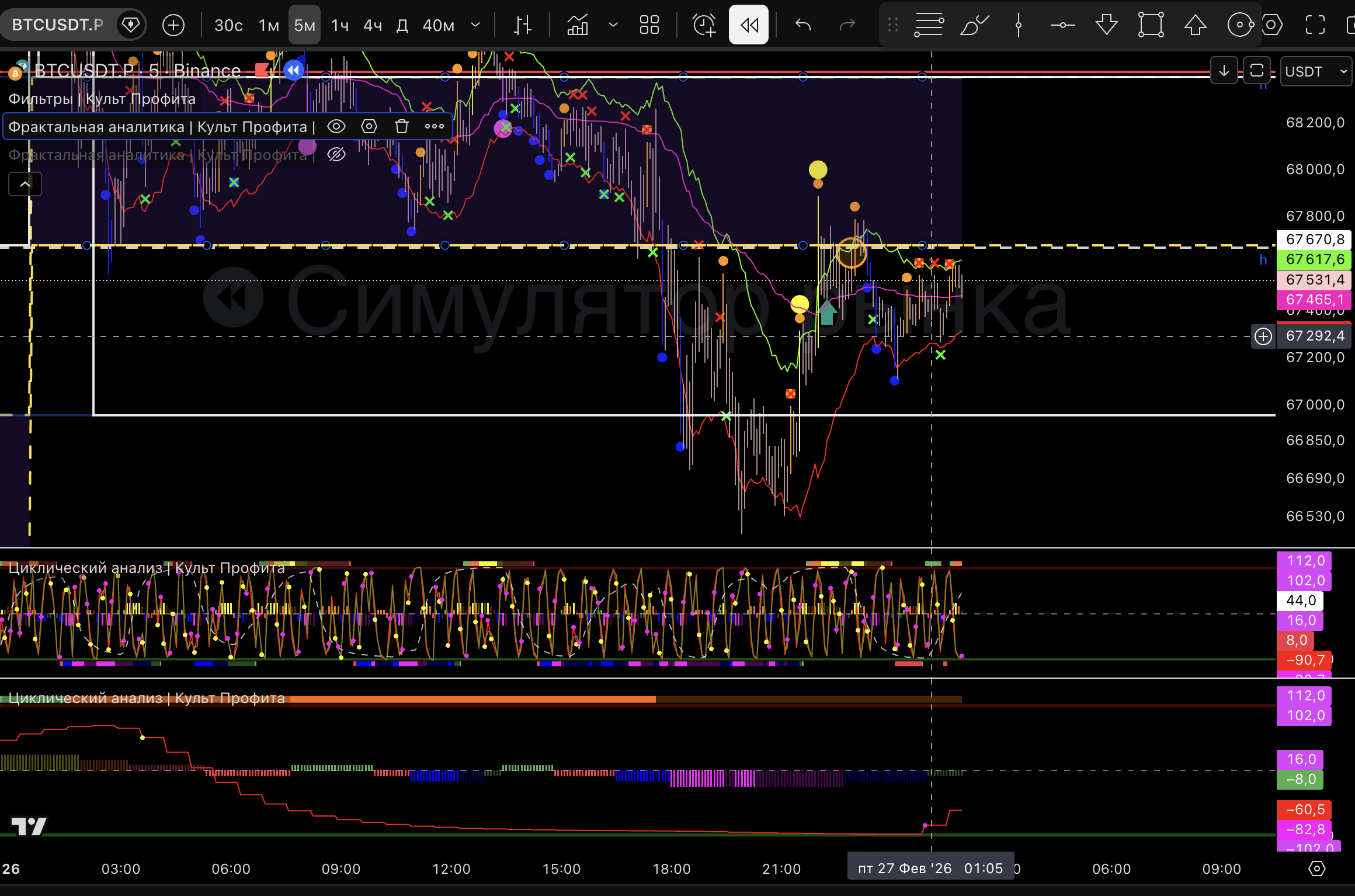 Вышел т.к загорелся розовый пм, линия цикла внизу и практически дошли до нижней границы 1м боровика.