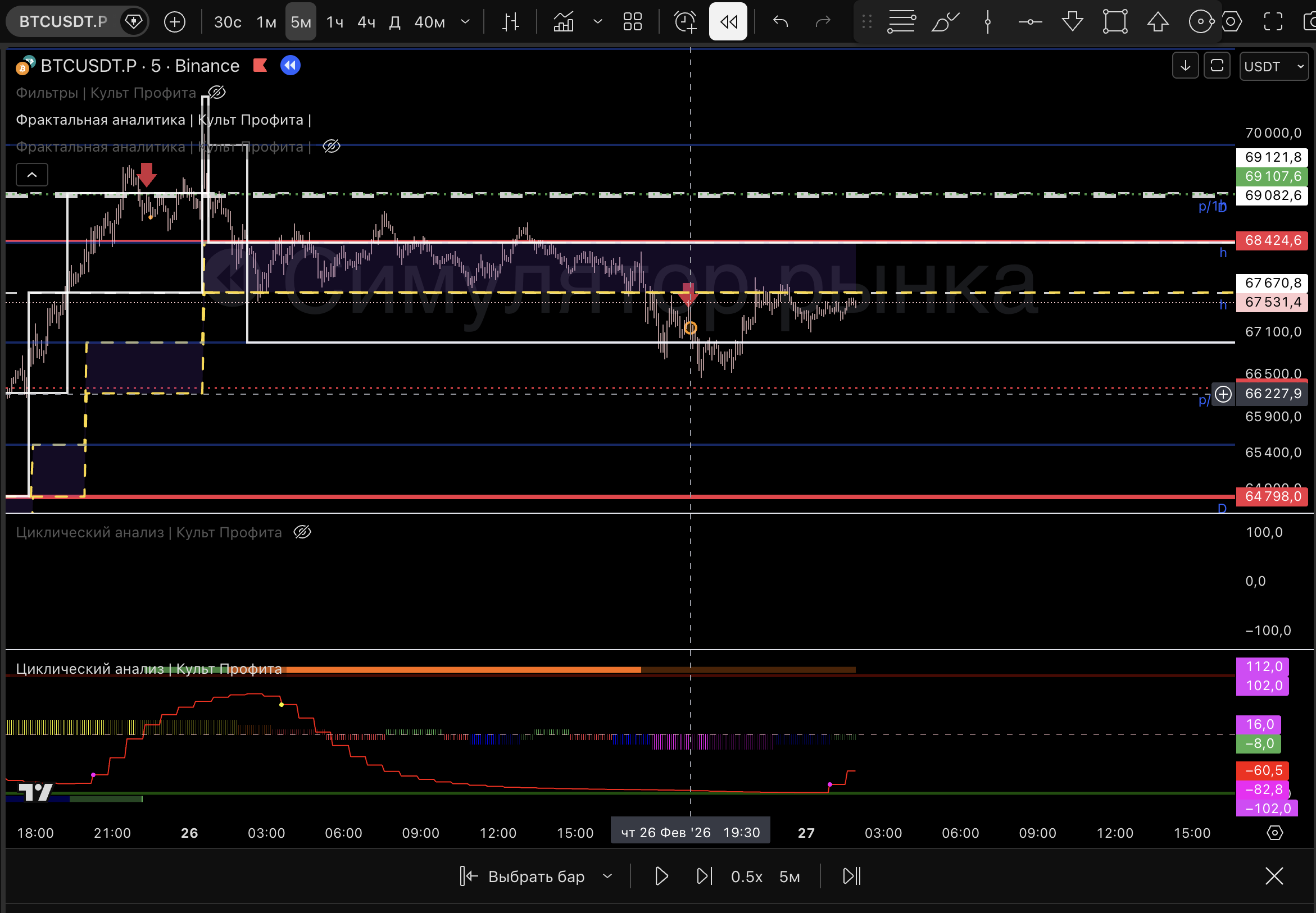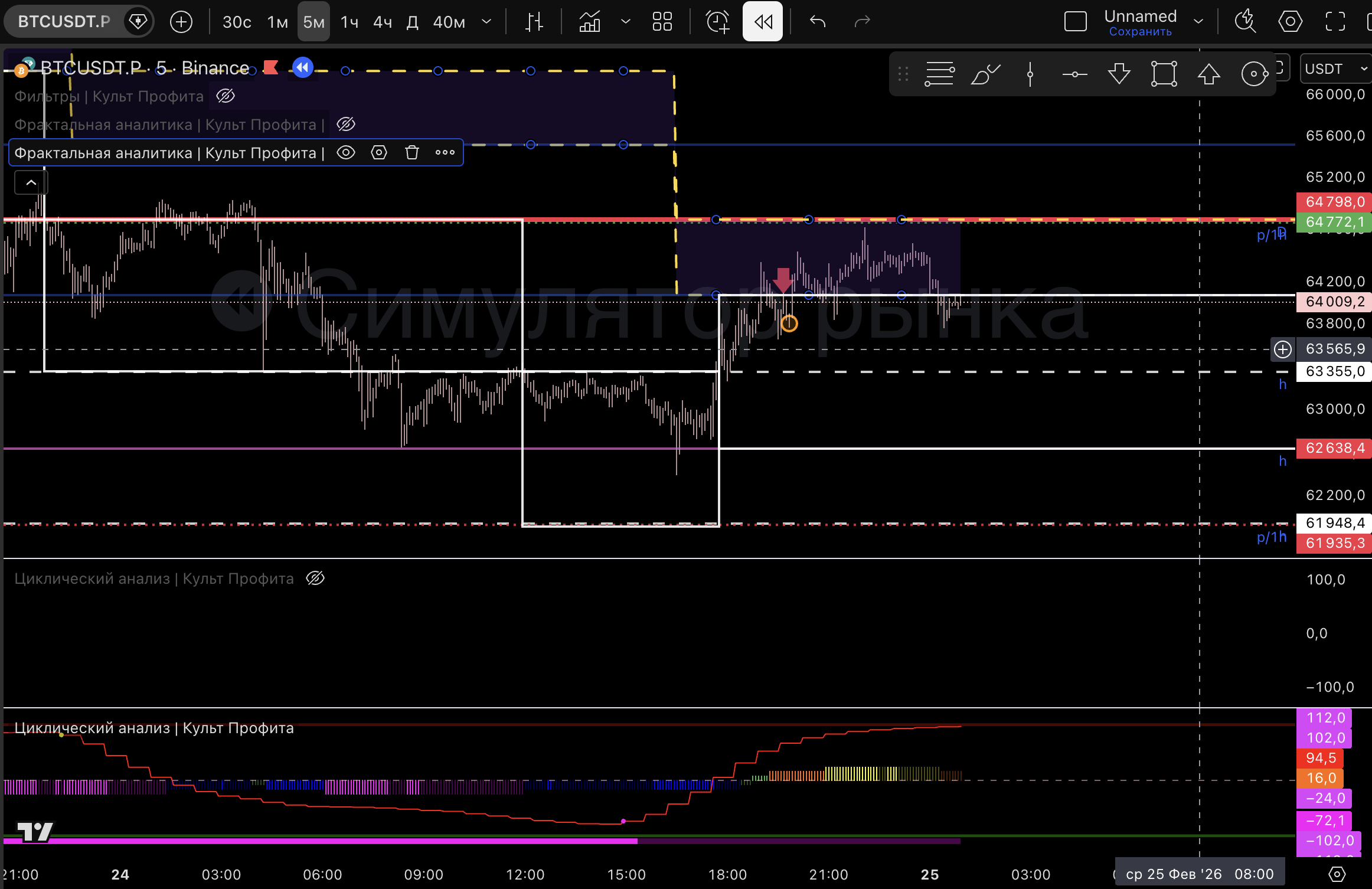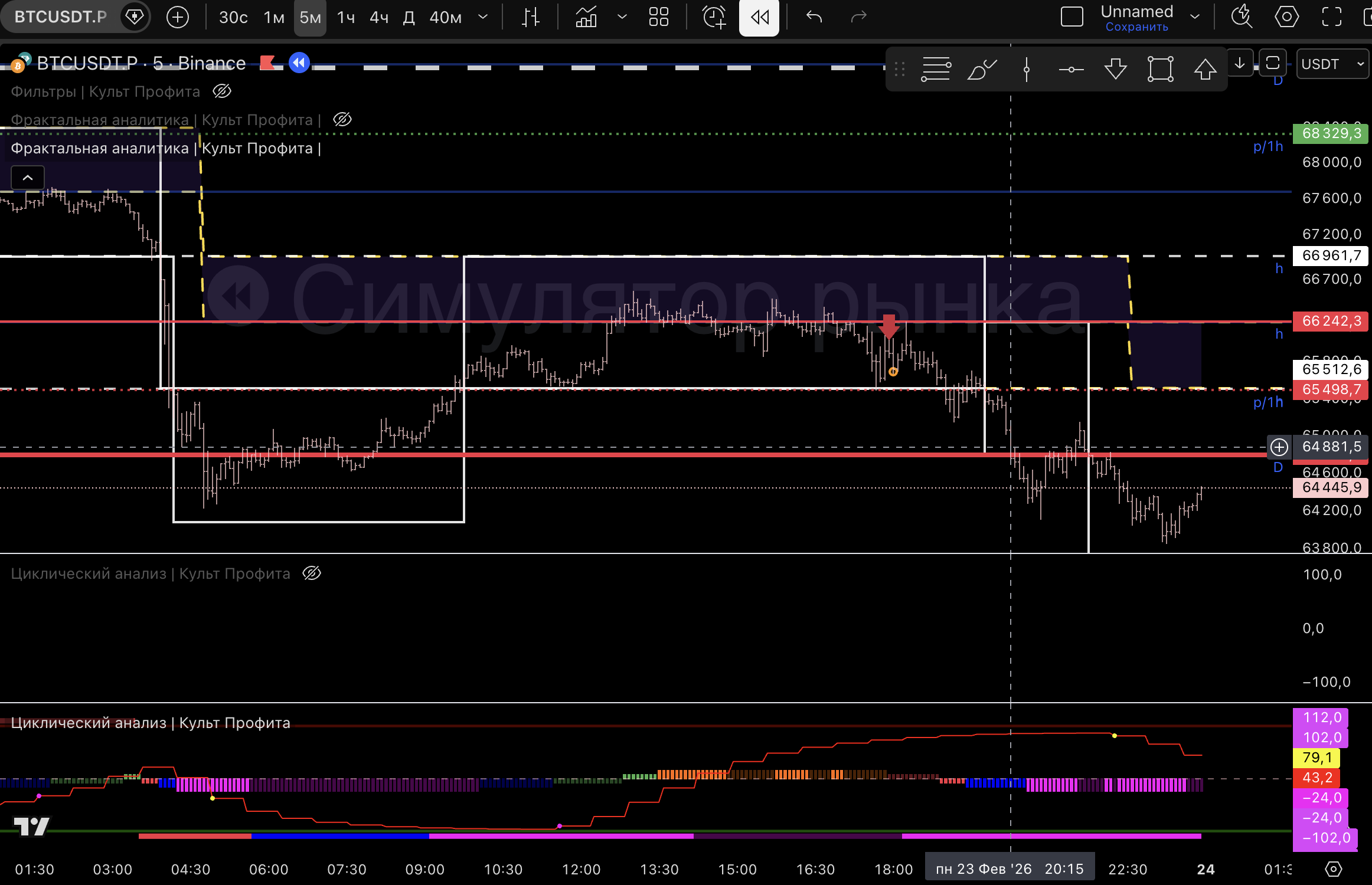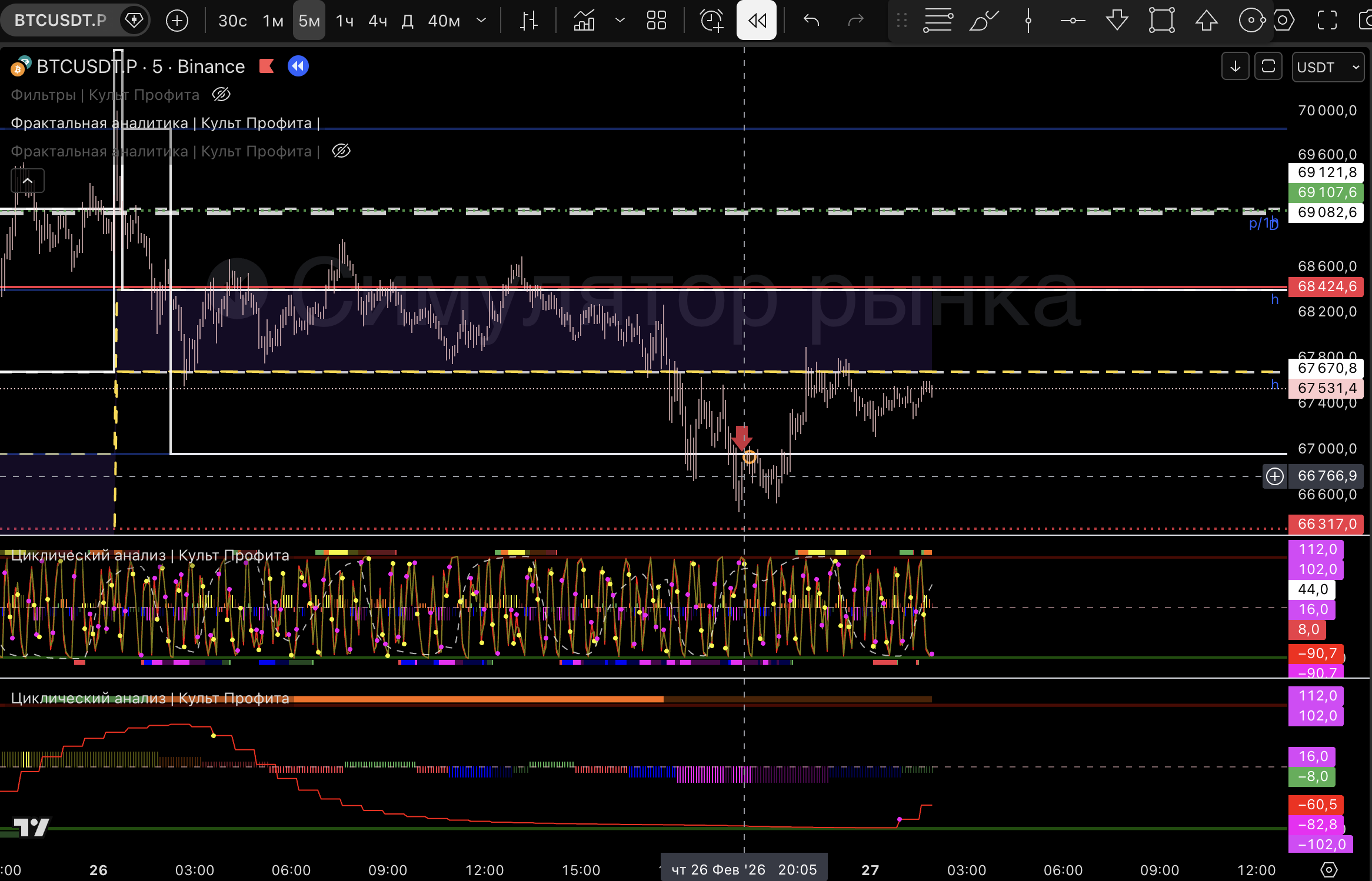 Вышел т.к загорелся розовый пм, линия цикла внизу и практически дошли до нижней границы 1м боровика.