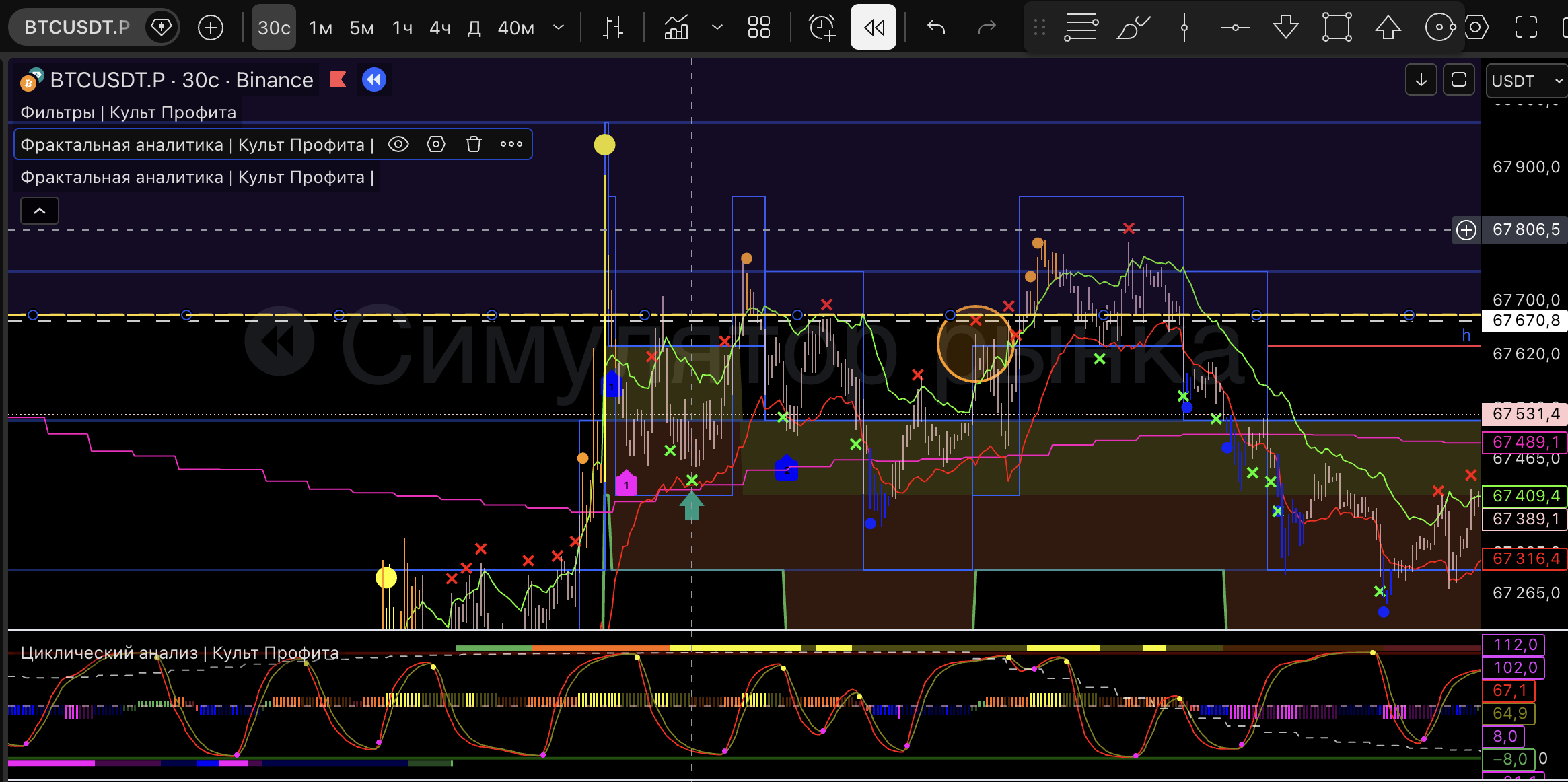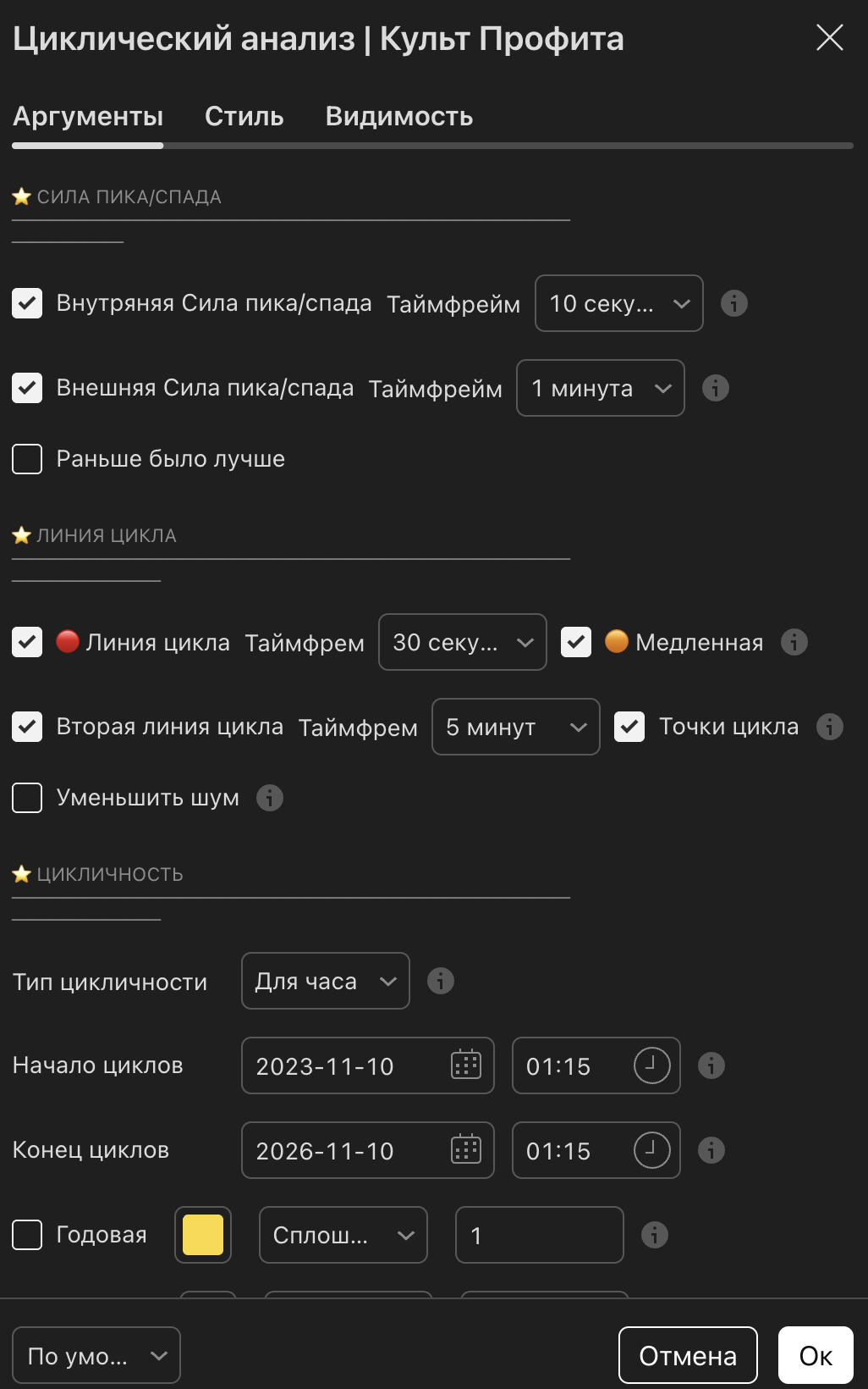 вход должен совпадать с пиковым значением Линии цикла на индикаторе Циклический анализ