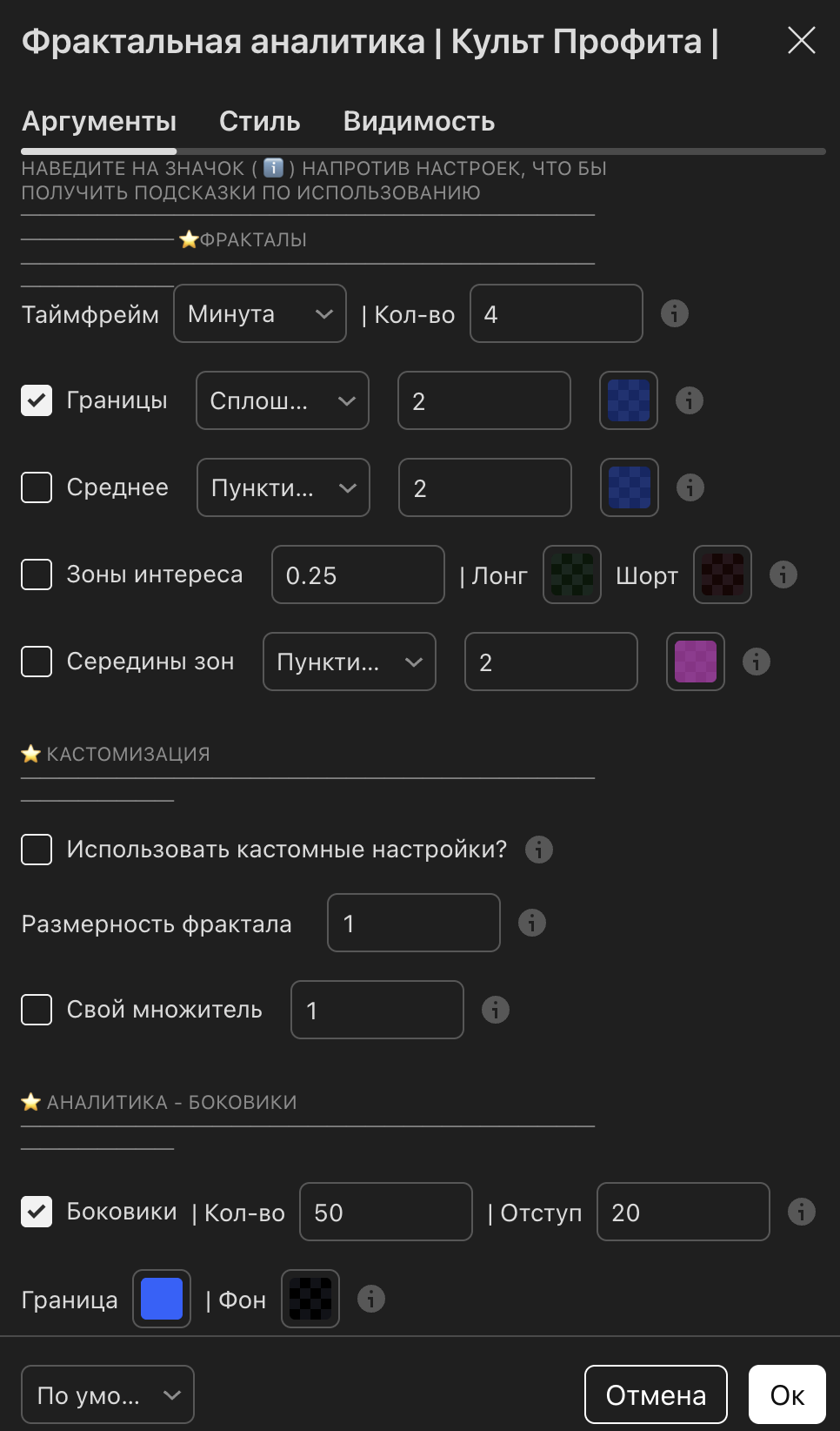 - Включен уровень разворота, зона отката и зона разворота.