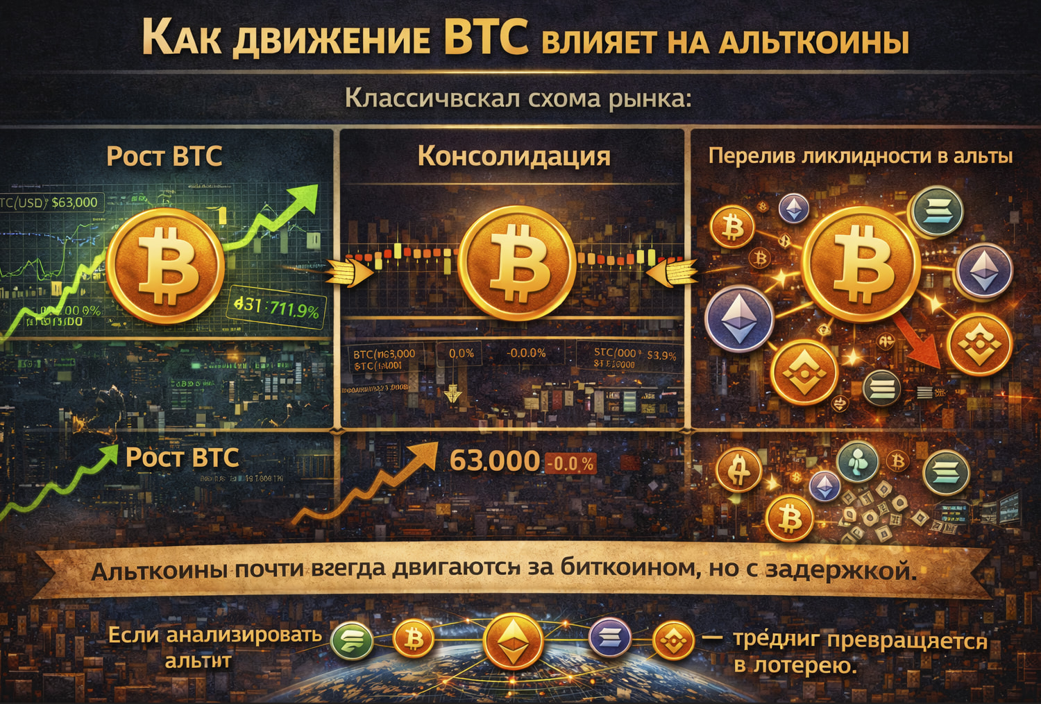 Как работает рынок криптовалют и почему анализ всегда начинается с BTC