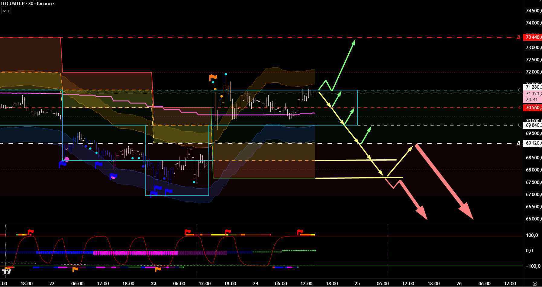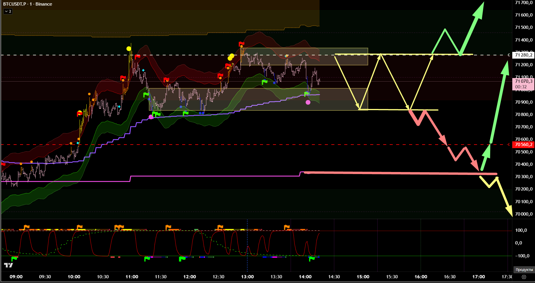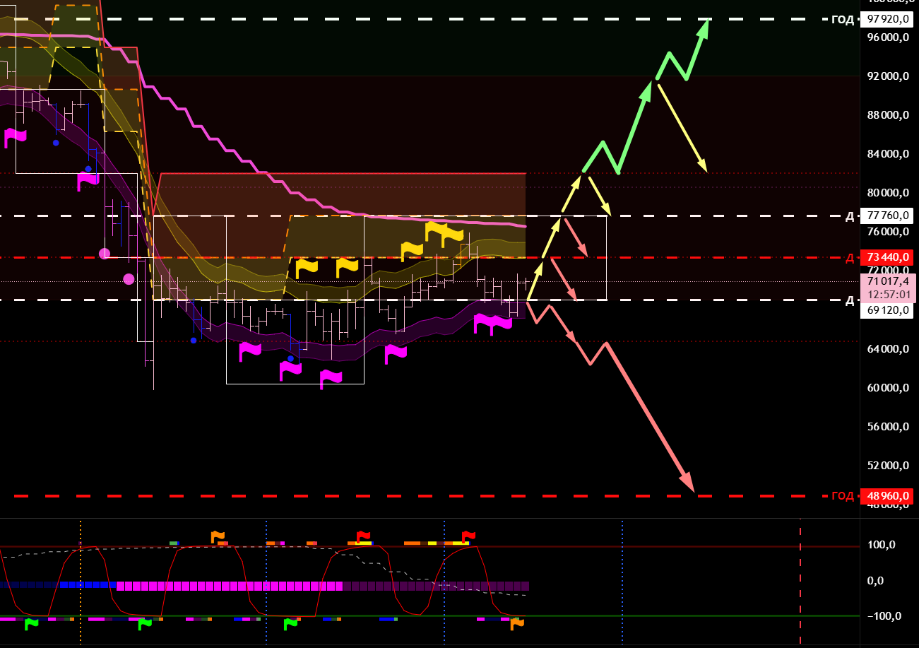 Среднее: 70560.Тренд: Лонговый, откатный.