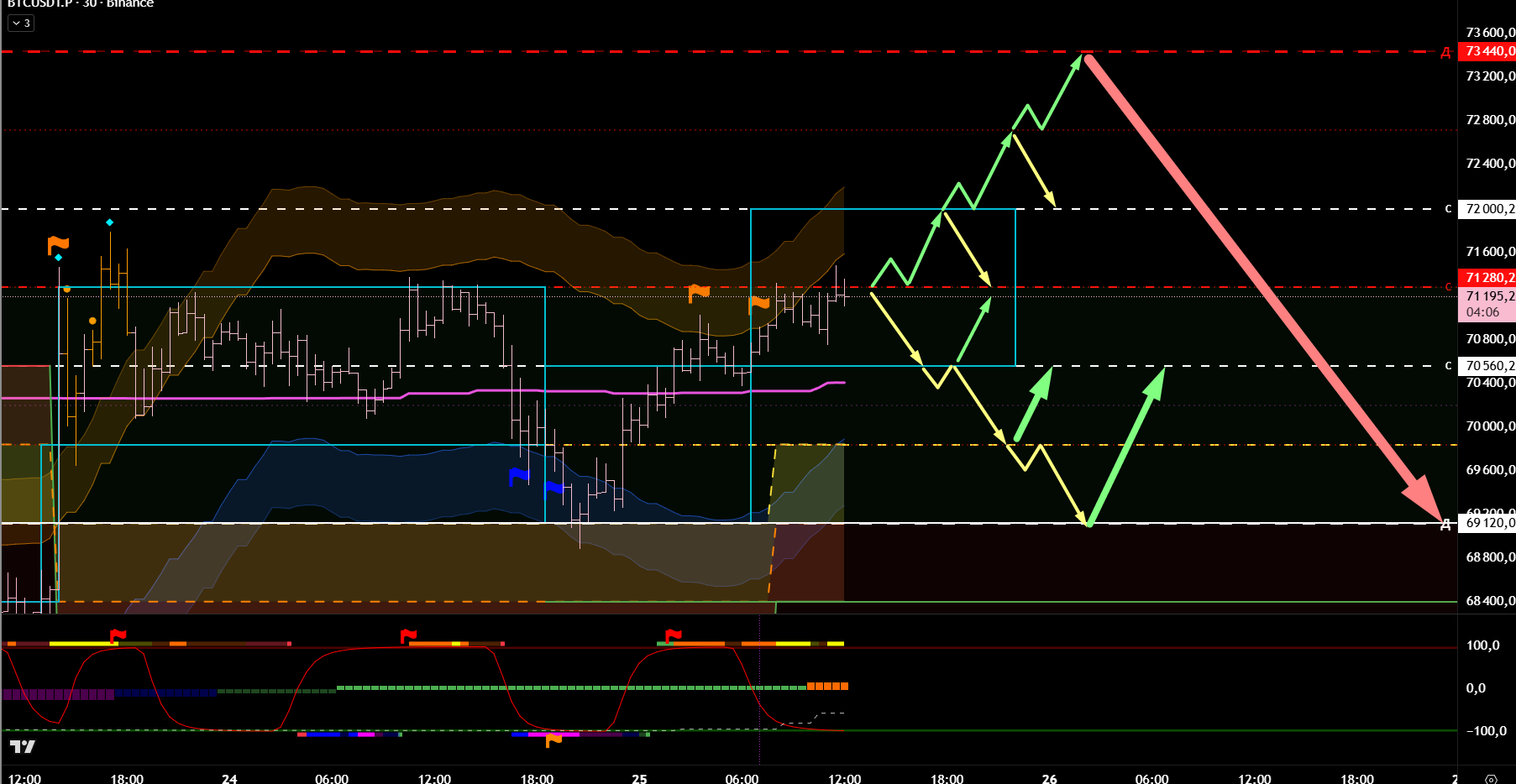 Среднее: 71280.Тренд: Лонг, откат старшего тренда.