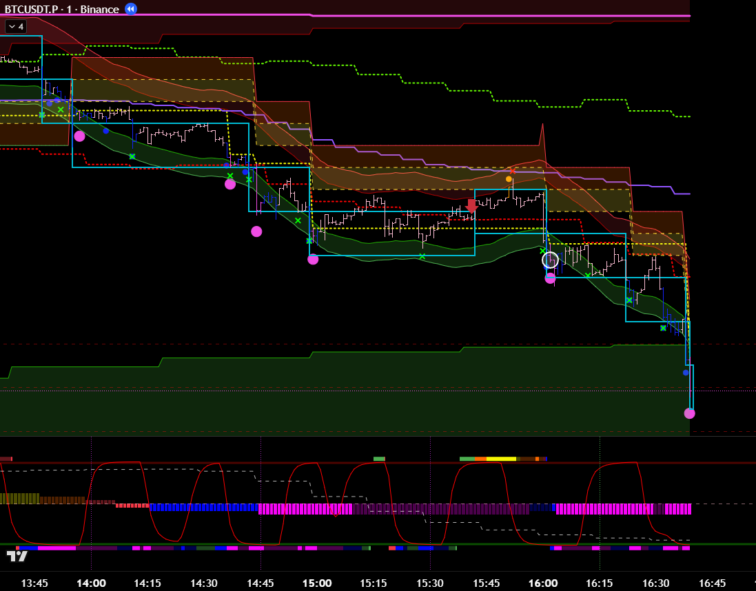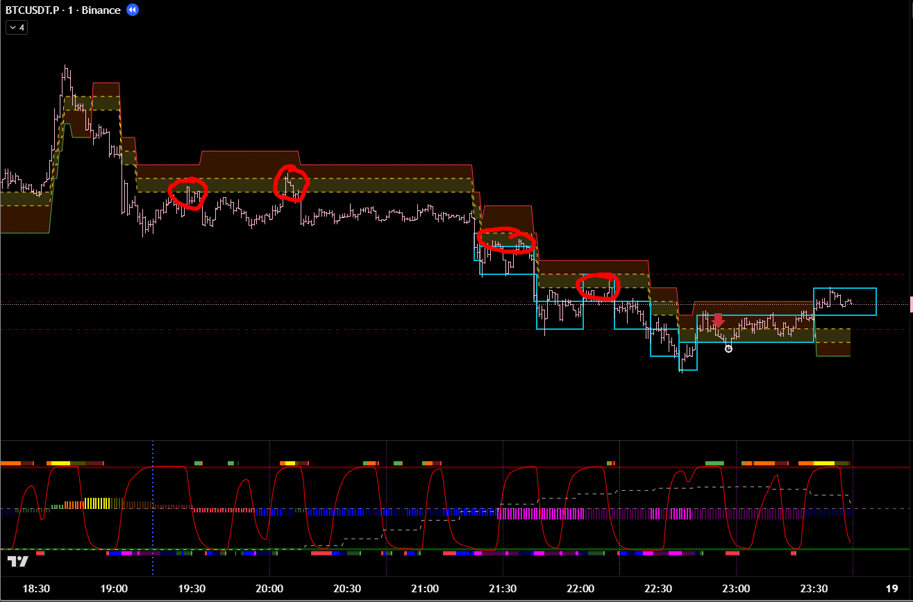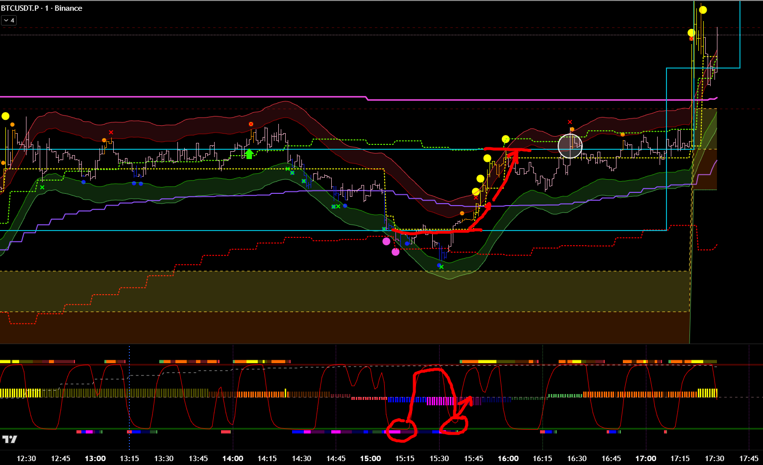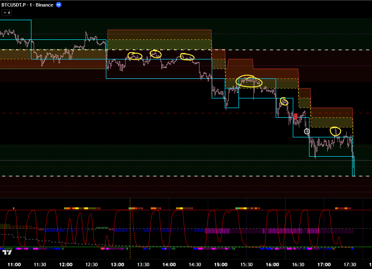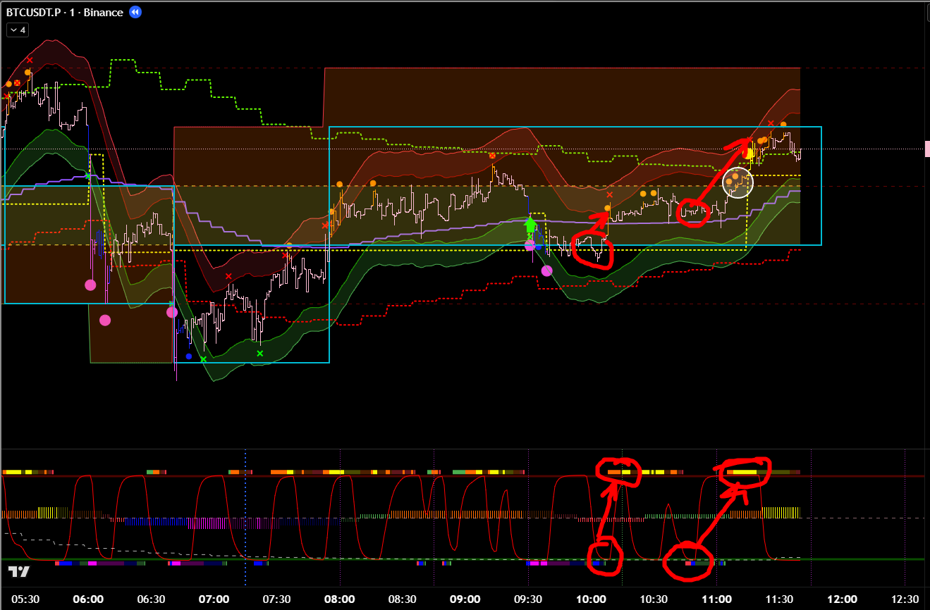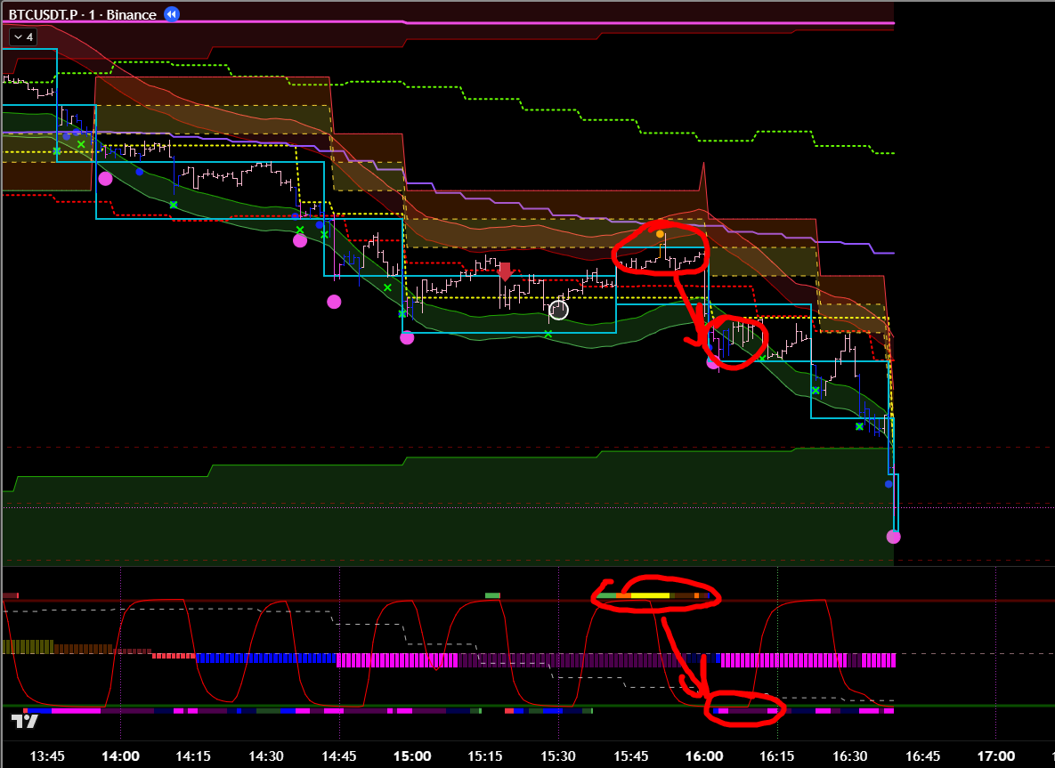 Добавив минутные фильтры, эта же сделка является хорошей. Есть бифуркация, откат, под балансом, сигнал хая. 8 из 10 как минимум? Но горит фиолетовый лой. Стоило бы? Вряд ли.