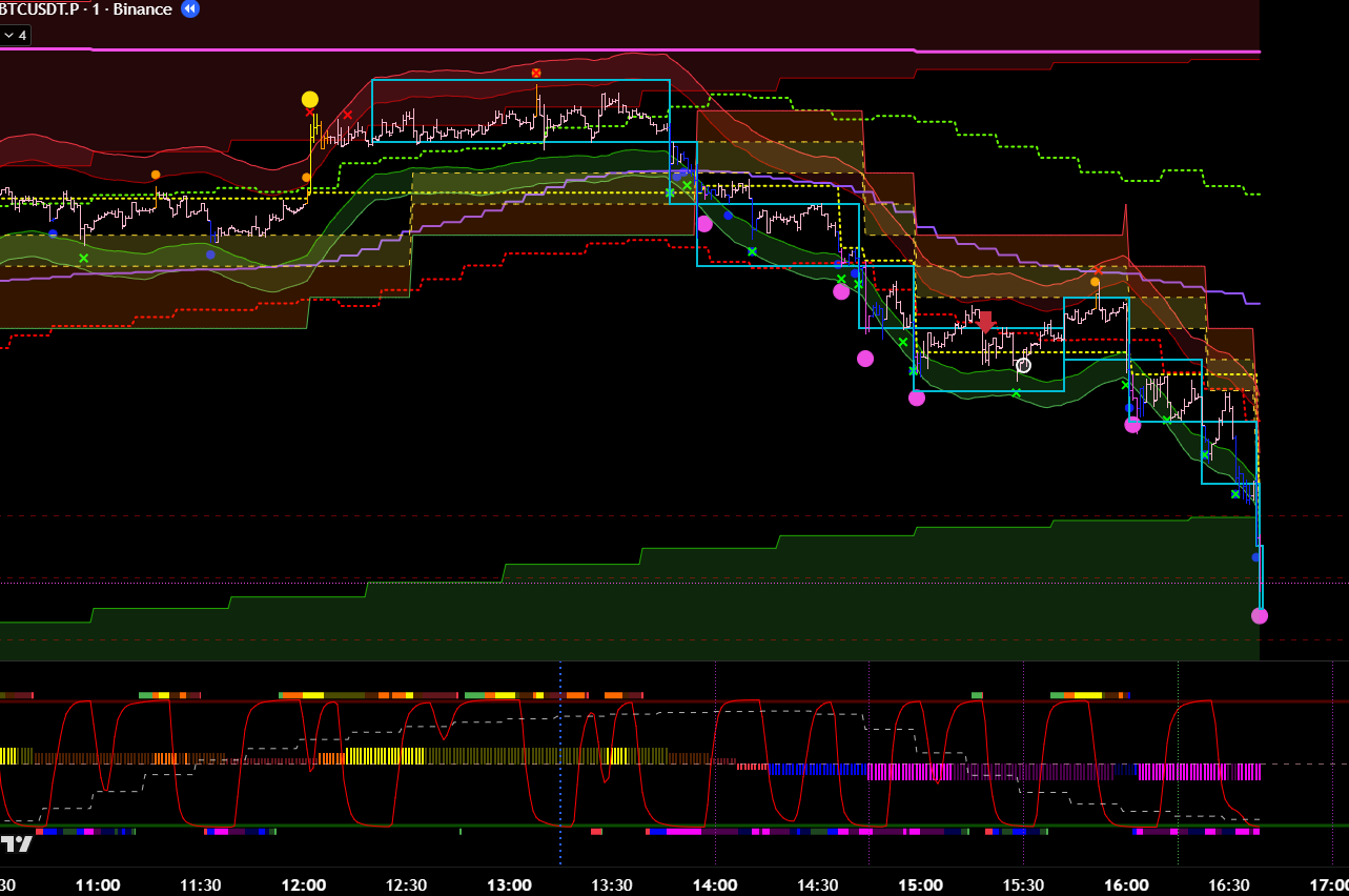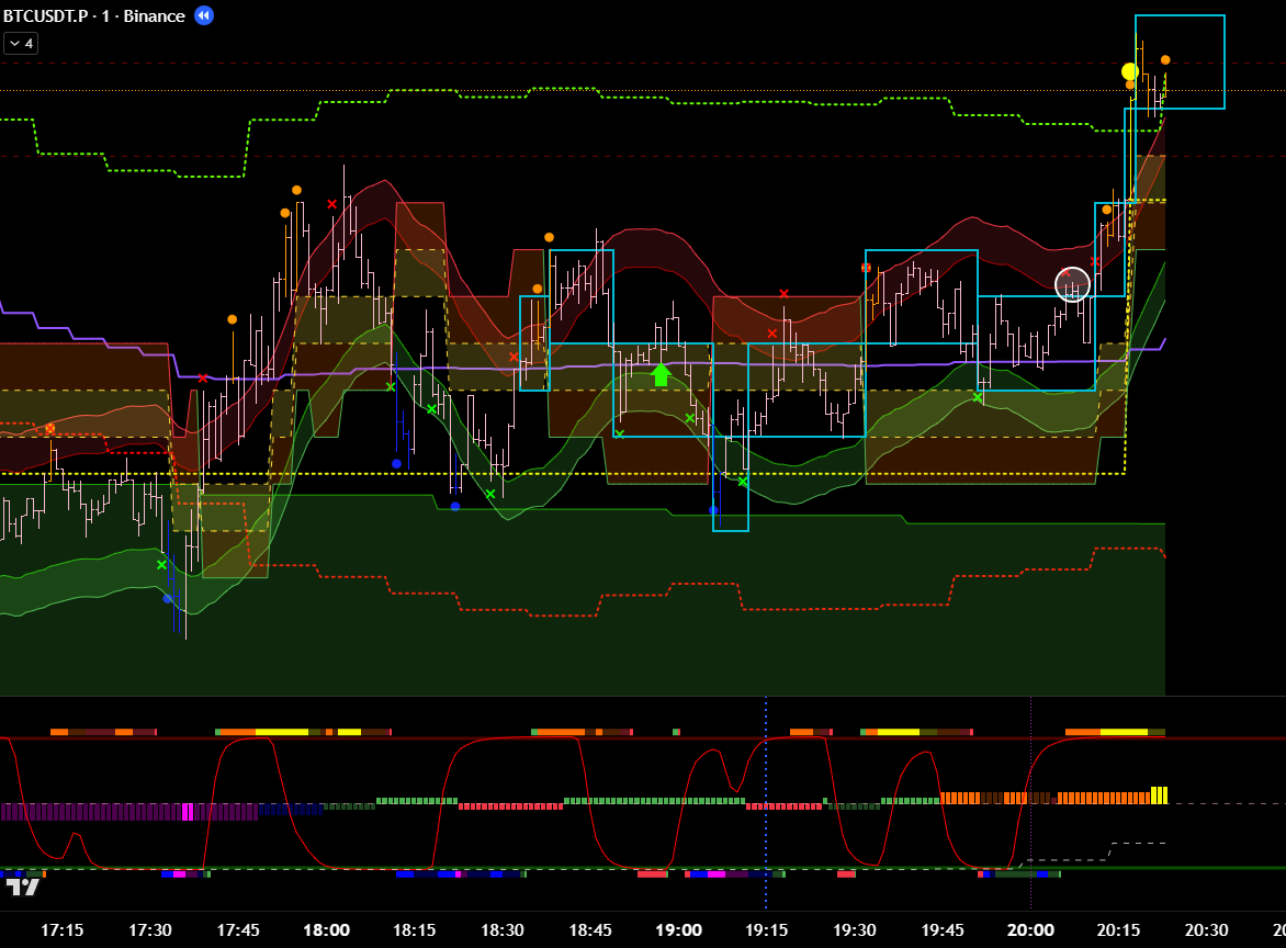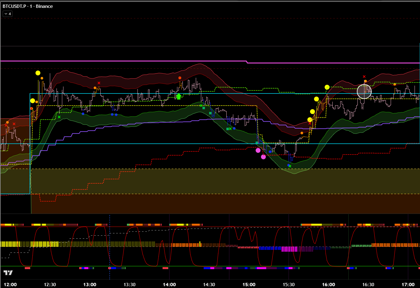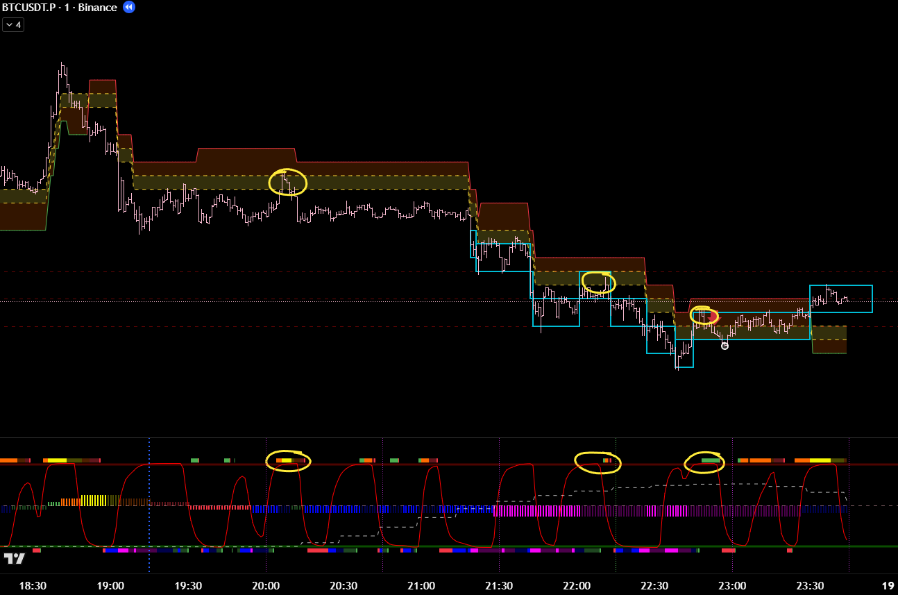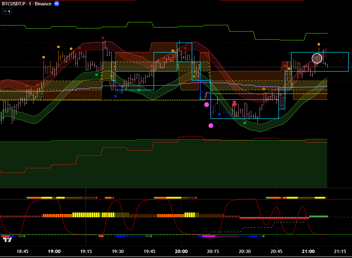 Добавив минутные фильтры, эта же сделка является хорошей. Есть бифуркация, откат, под балансом, сигнал хая. 8 из 10 как минимум? Но горит фиолетовый лой. Стоило бы? Вряд ли.