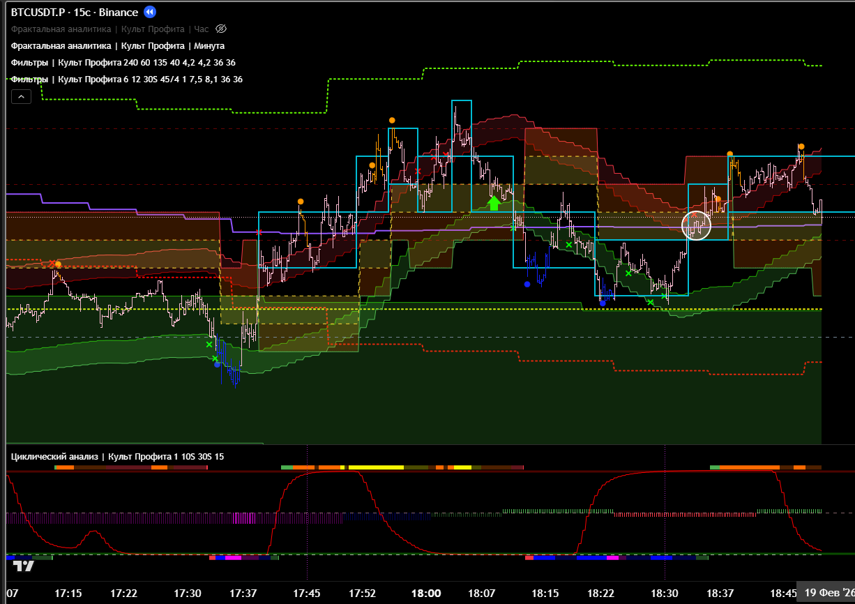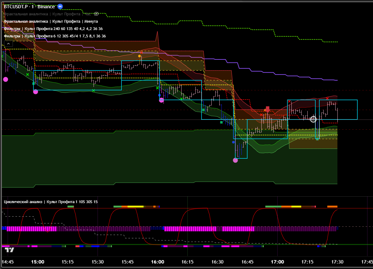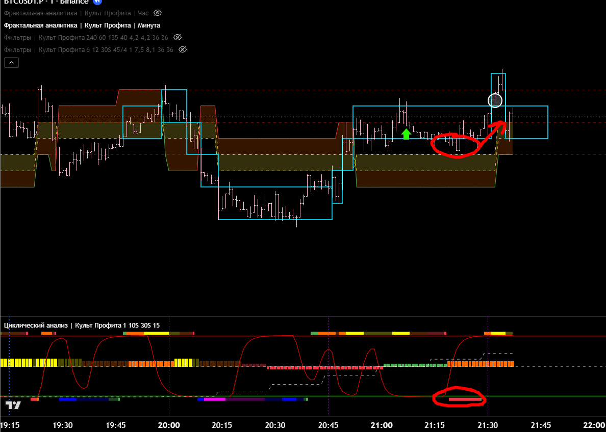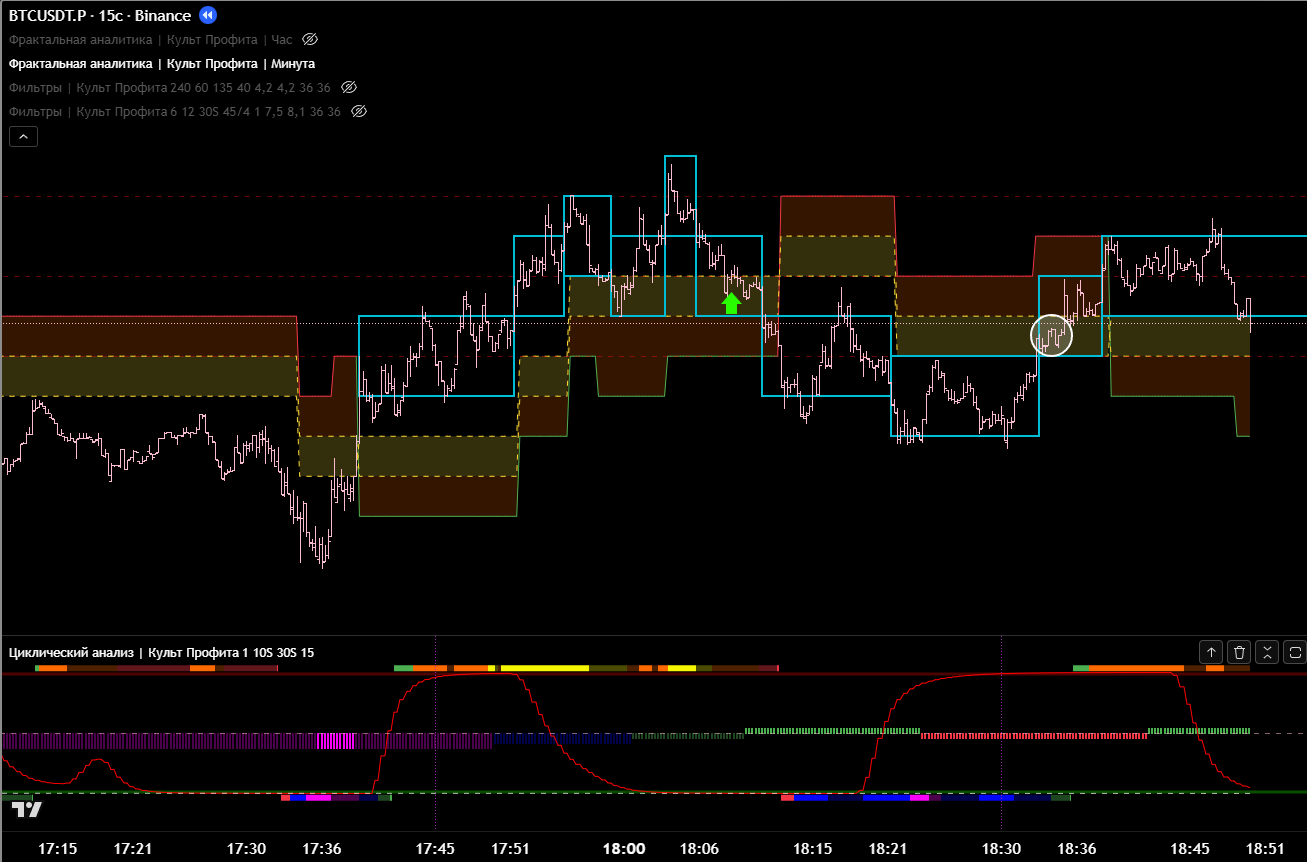 Часовой фильтр показывает, что зона П\С тейкнута. Значит ожидаемо идём в восходящем тренде. Что подтверждает 15м цикл.