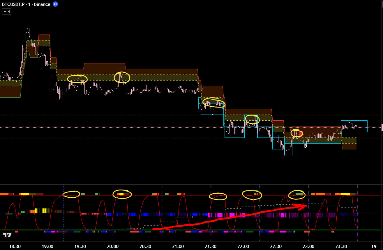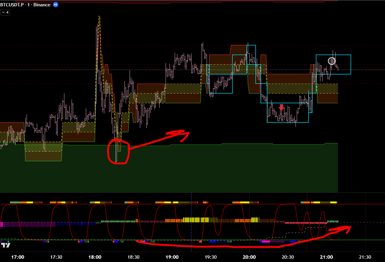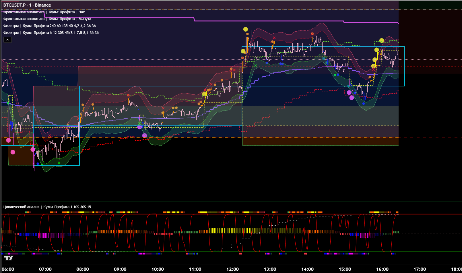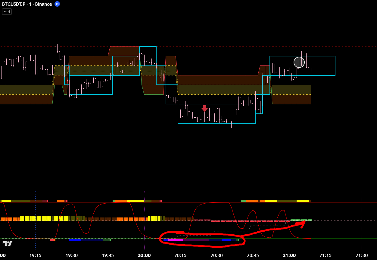 Часовой фильтр показывает, что зона П\С тейкнута. Значит ожидаемо идём в восходящем тренде. Что подтверждает 15м цикл.