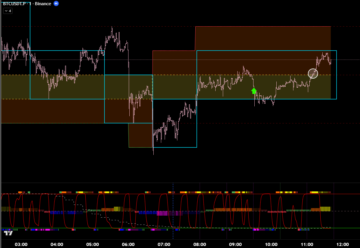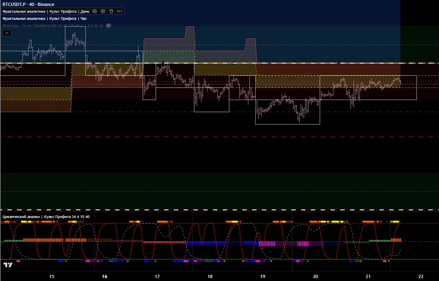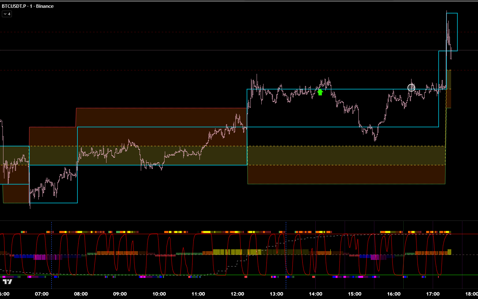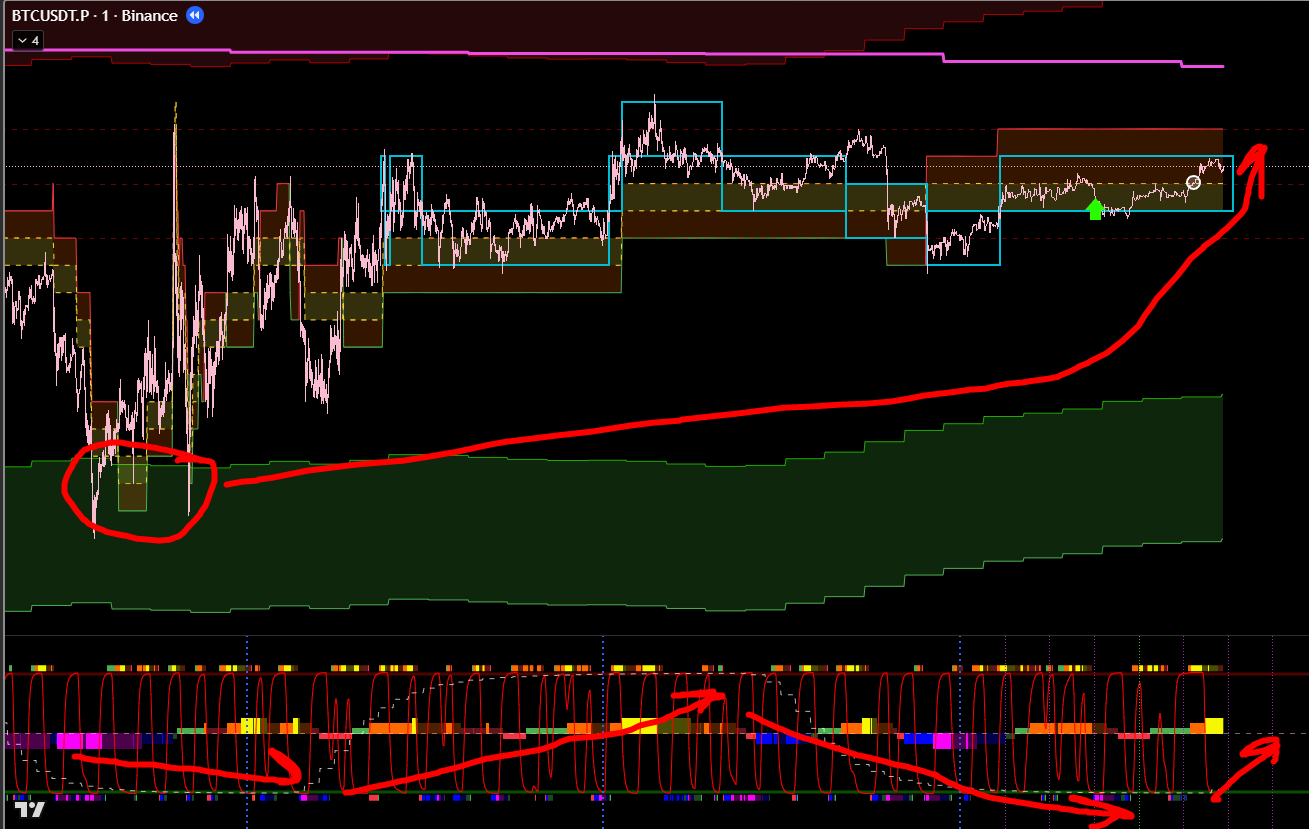 Часовой фильтр показывает, что зона П\С тейкнута. Значит ожидаемо идём в восходящем тренде. Что подтверждает 15м цикл.