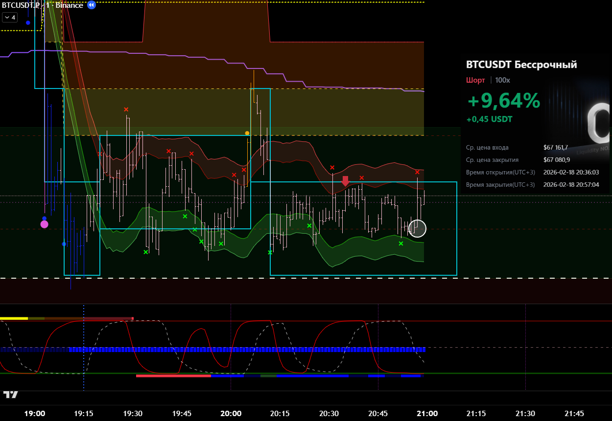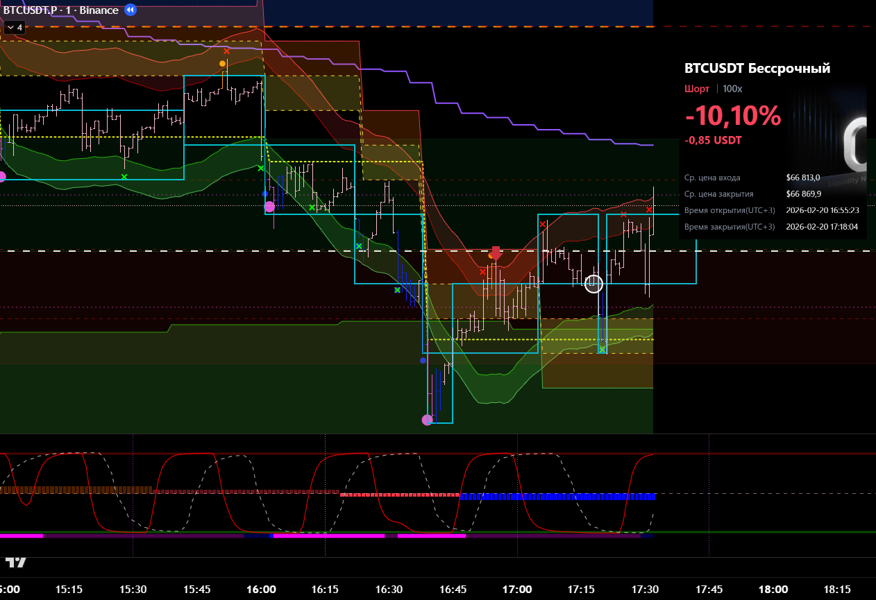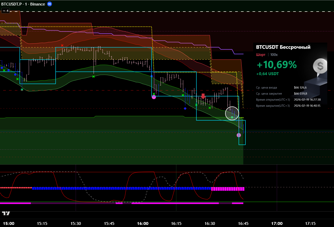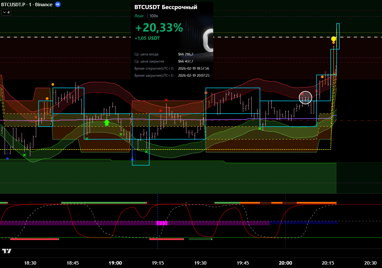 Сделка сразу после ликвидации в лонговый тренд. Видно, что даже не от лоя по циклу. Даже подтверждения бифуркации не дождался.