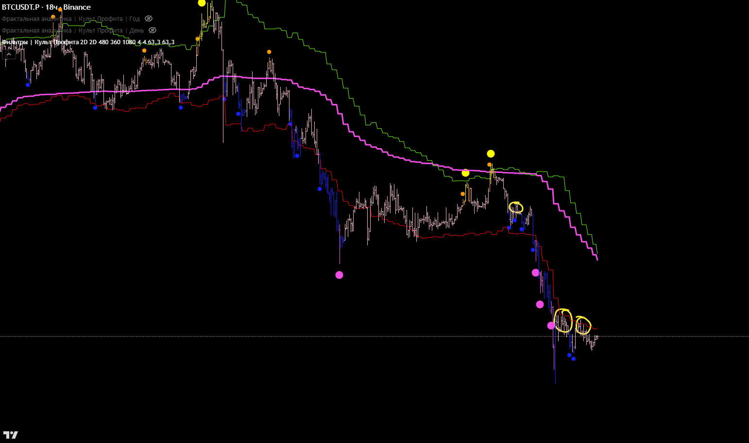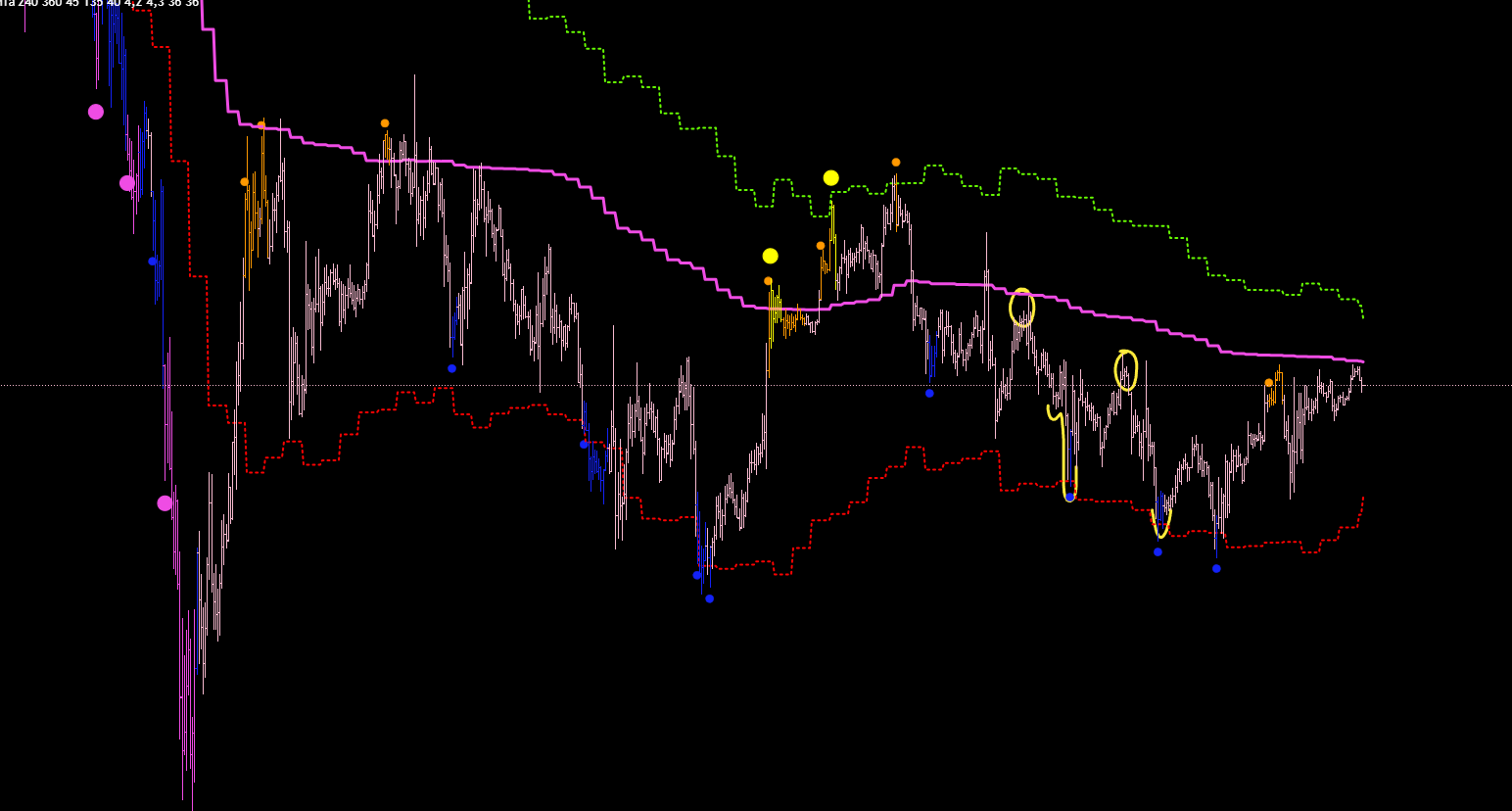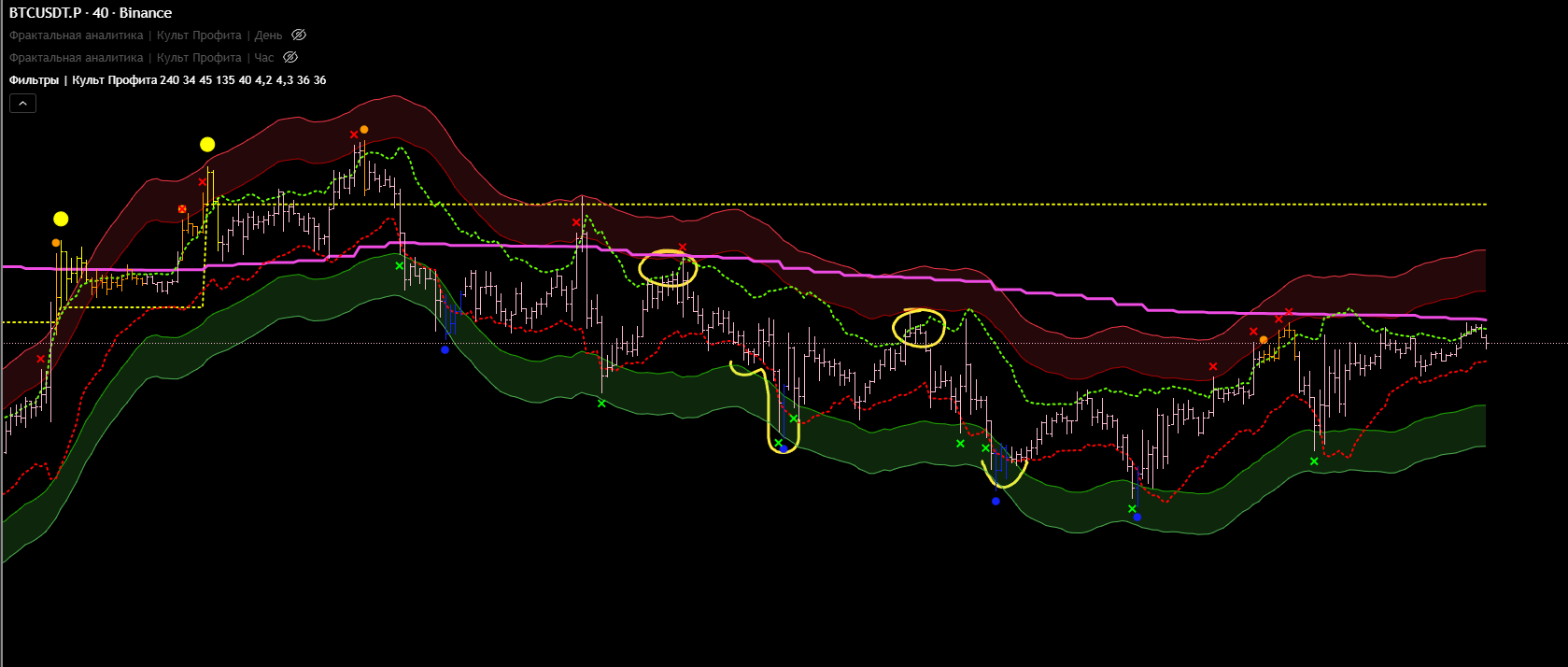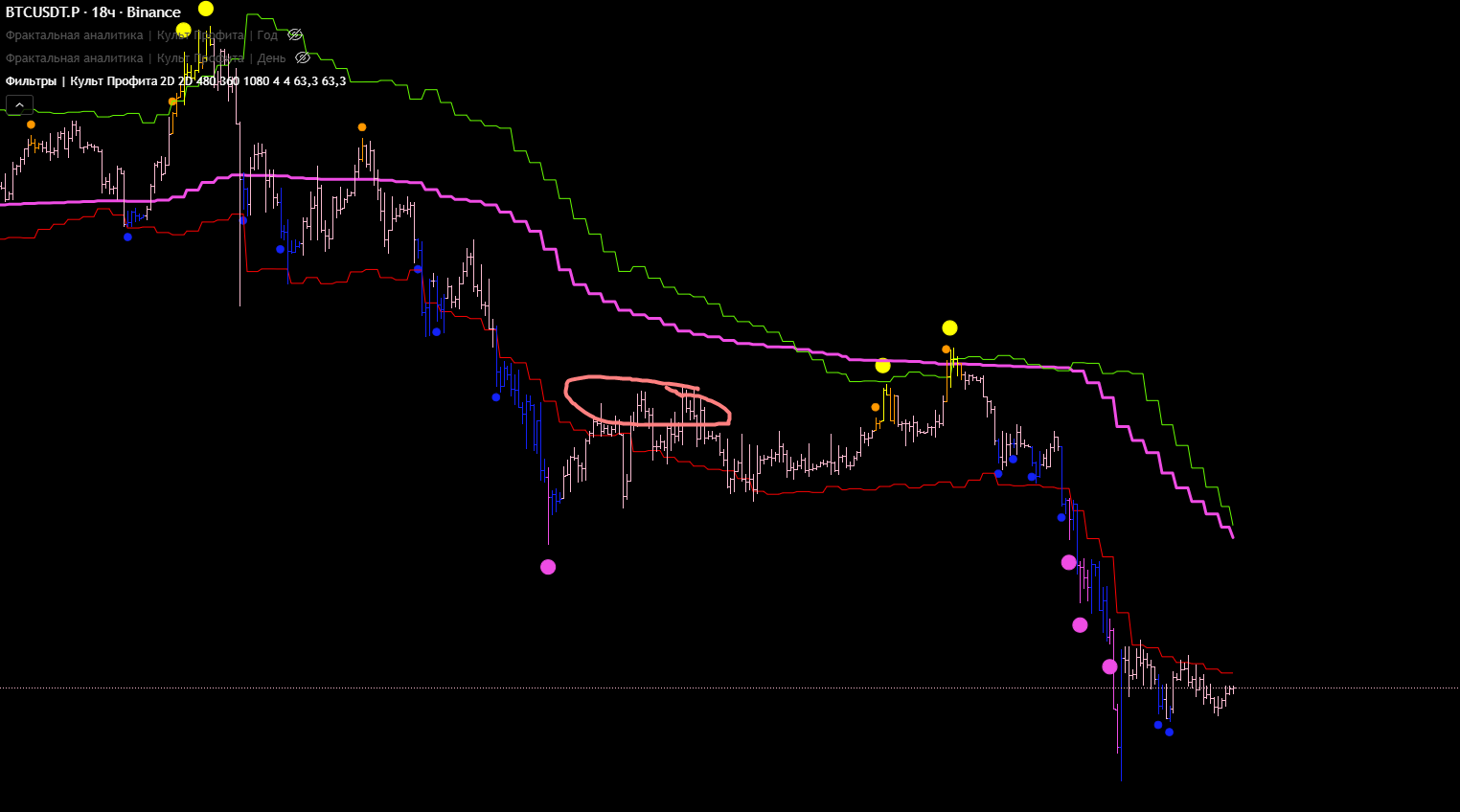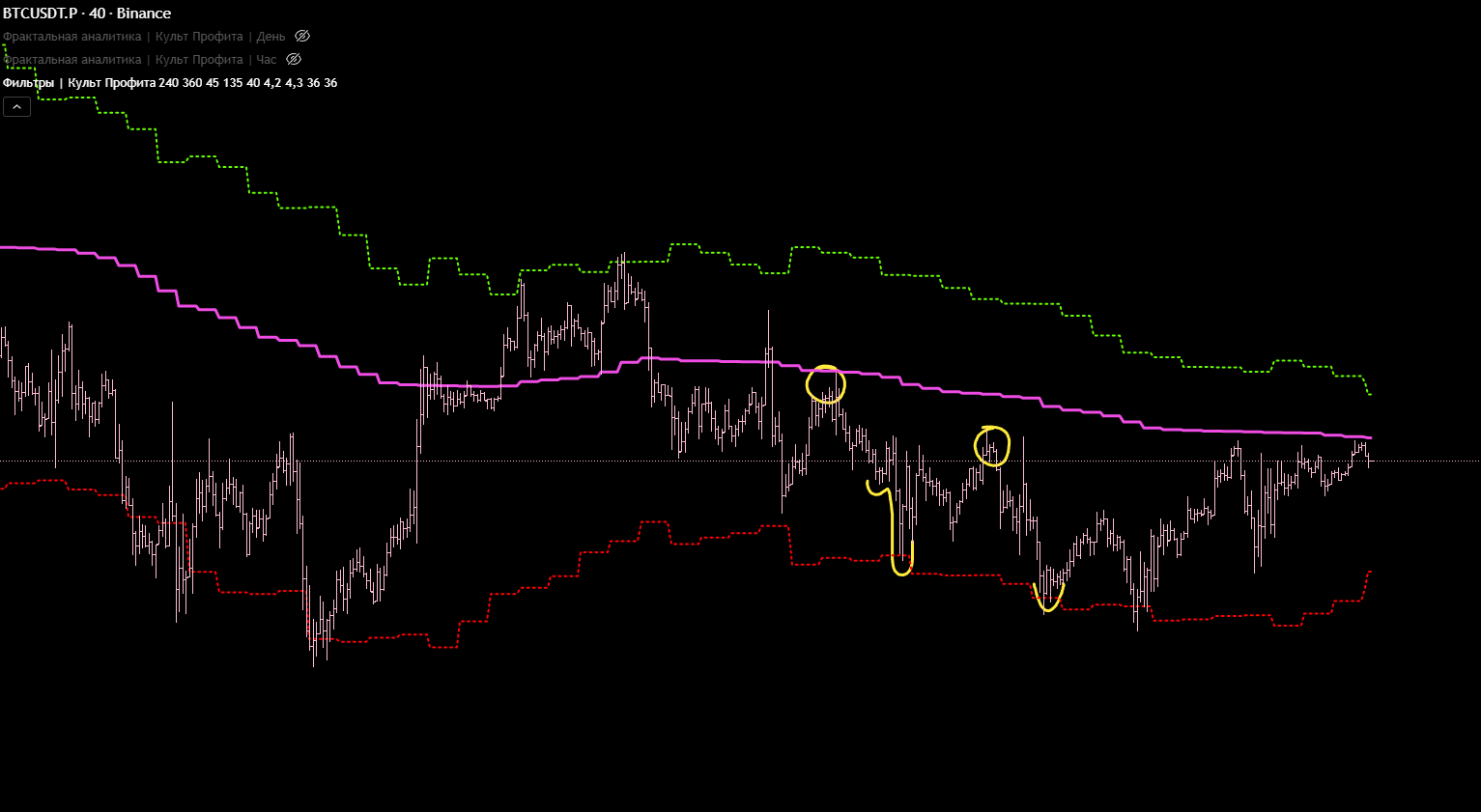 Хотелось бы увидеть какой то сигнал в этой области. Но не получилось, ну да и ладно. Главное, что получилось настроить ещё более точные глобальные хаи и лои.