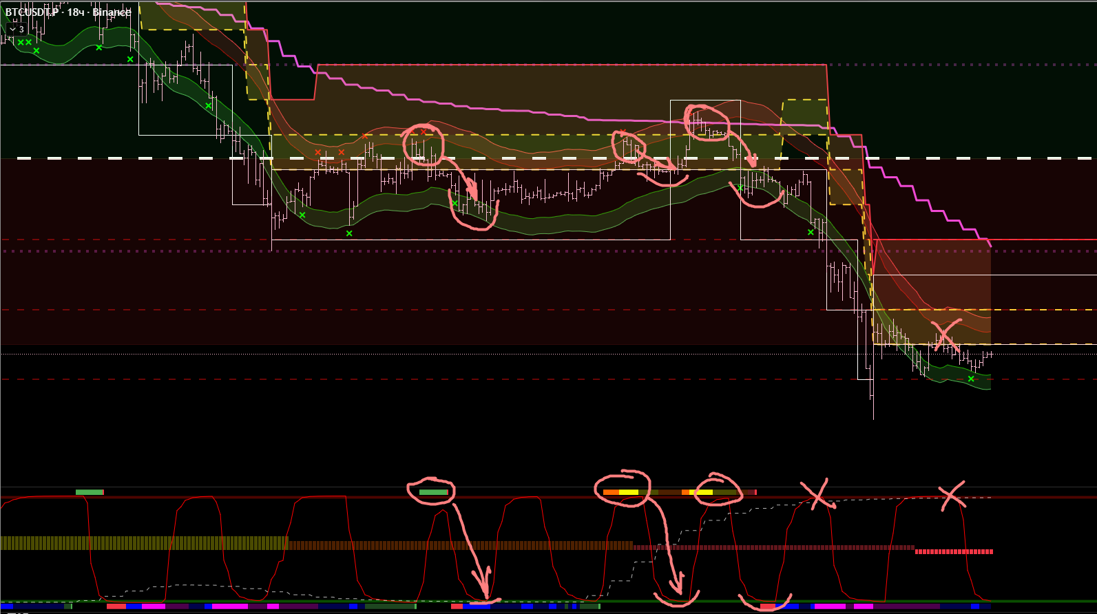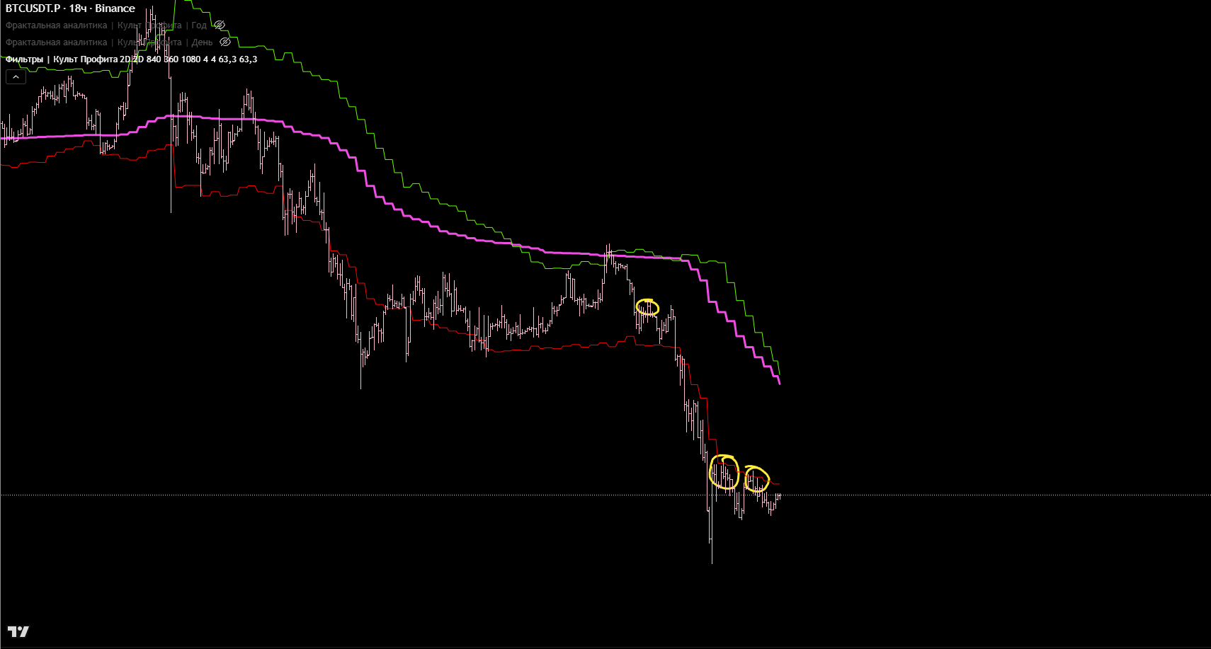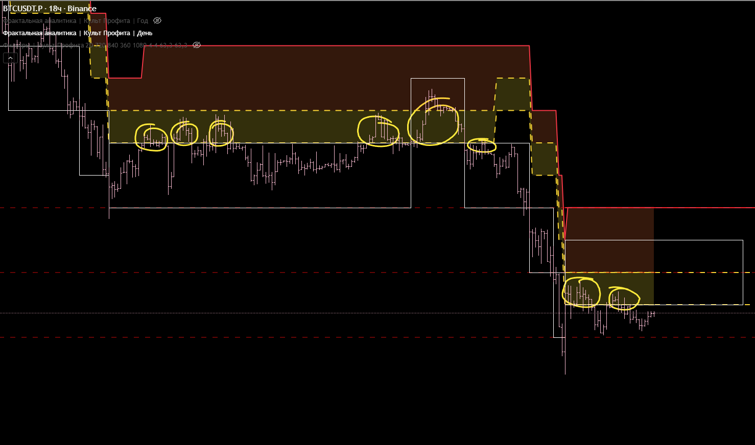 Выделим места, где мы ДОЛЖНЫ были искать точки входа для входа в шорт. Описывать всё это подробно буду только 1 раз, может два раза. Что бы не повторять одни и те же шаги для каждой сделки.