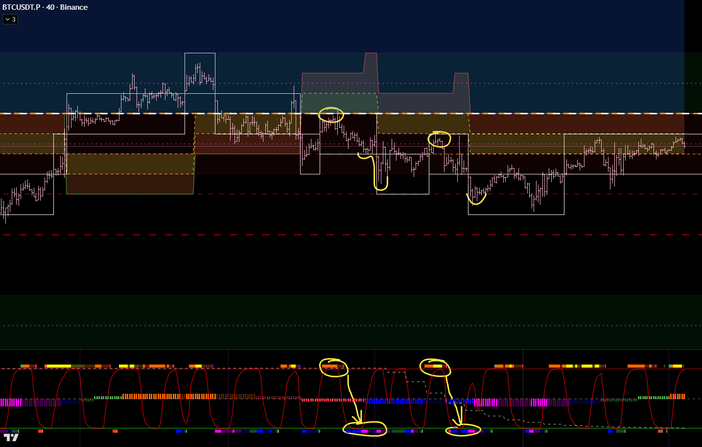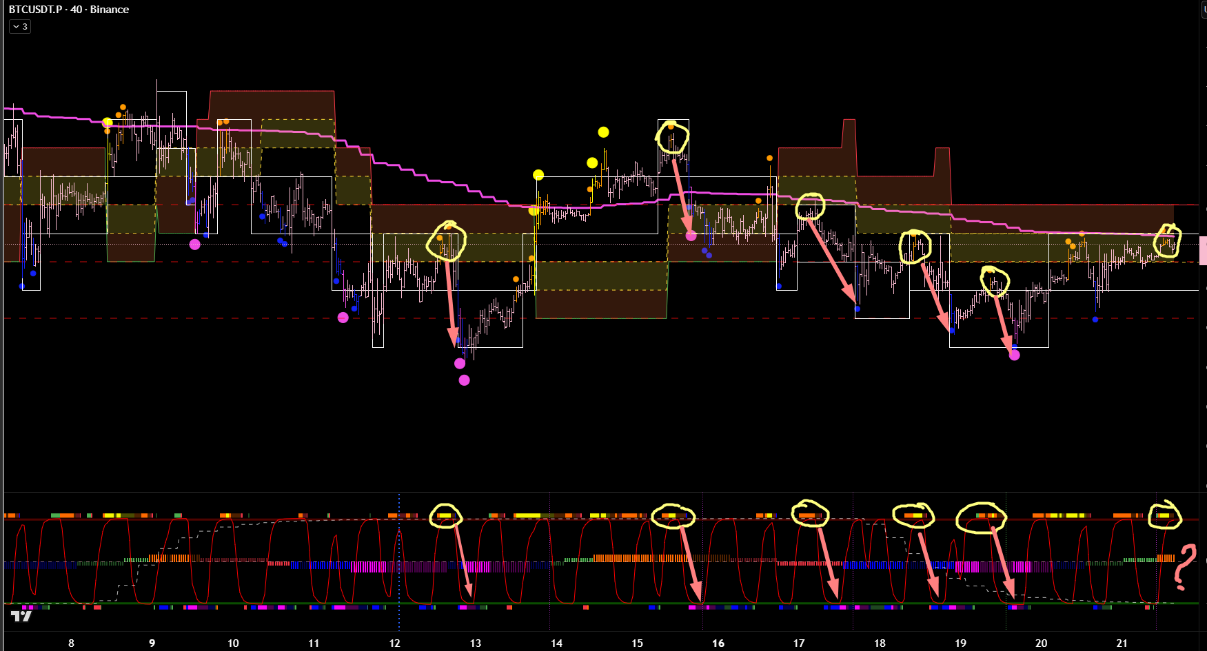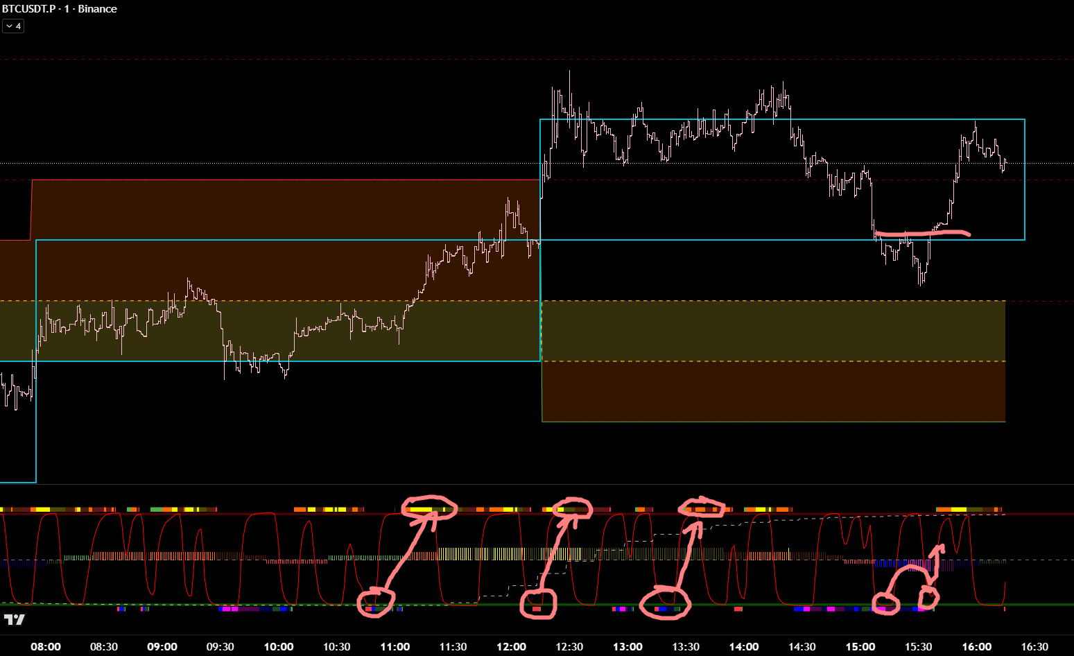 Выделим места, где мы ДОЛЖНЫ были искать точки входа для входа в шорт. Описывать всё это подробно буду только 1 раз, может два раза. Что бы не повторять одни и те же шаги для каждой сделки.