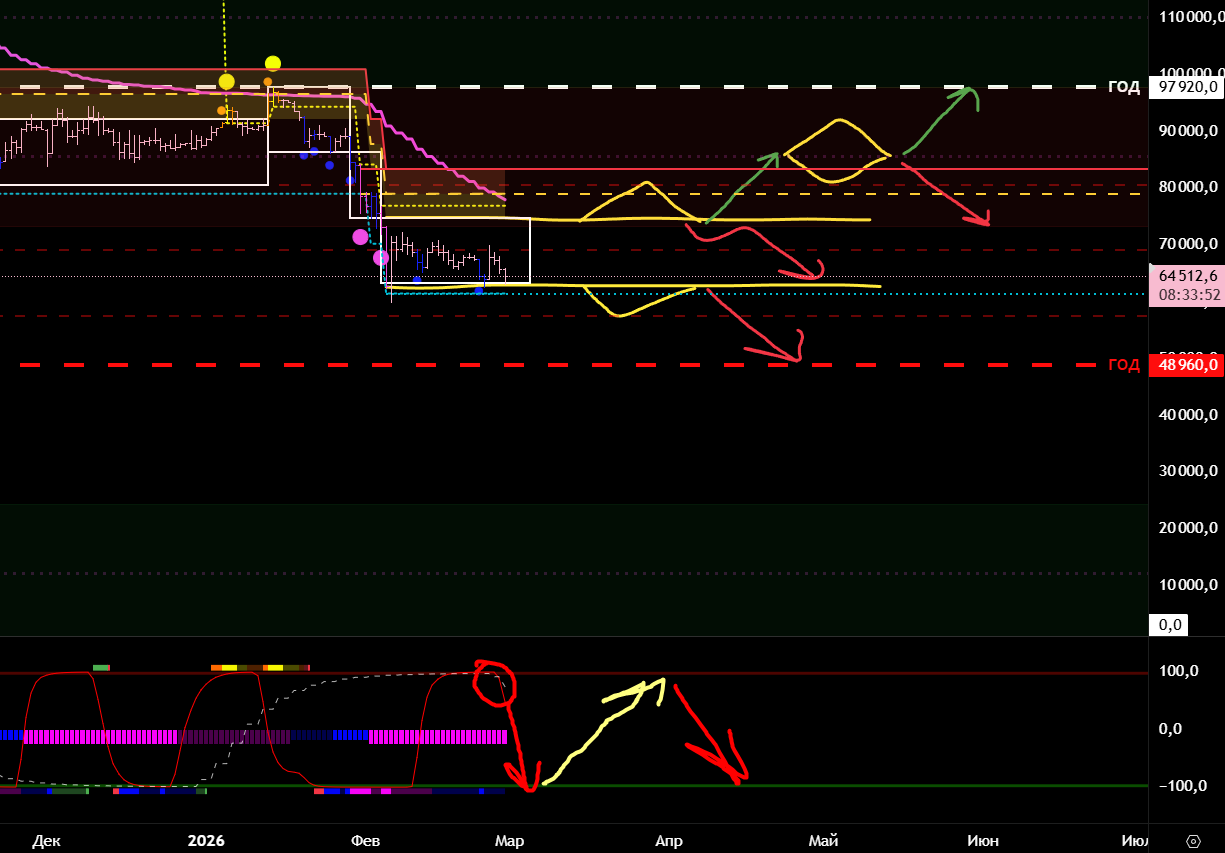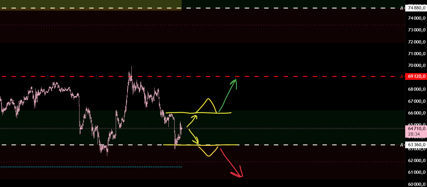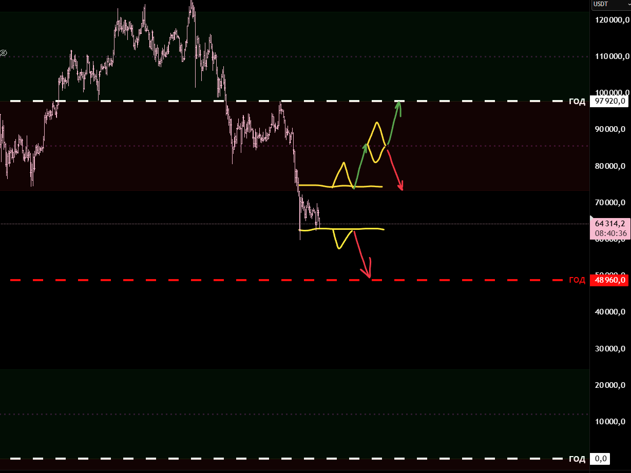 Текущий тренд шортовый и от тейка нижней границы долгосрока мы ждём лонговый откат. Дальнейший шорт от ухода под границу долгосрока и локального отката.