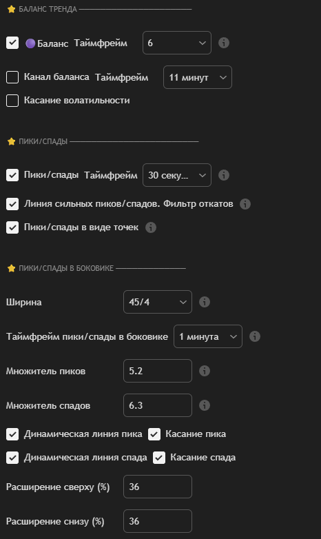 Настройки индикаторов