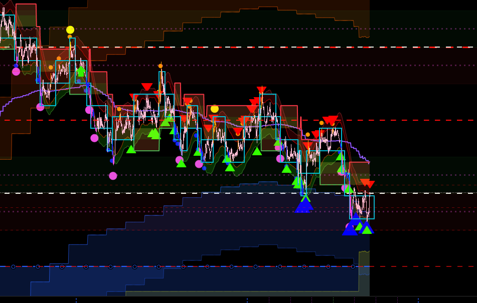 Циклически уже идёт цикл, то есть можно предположить о конце плоской коррекции и ближайшее время начало последней трендовой шортовой волны до среднего, а может и дальше.