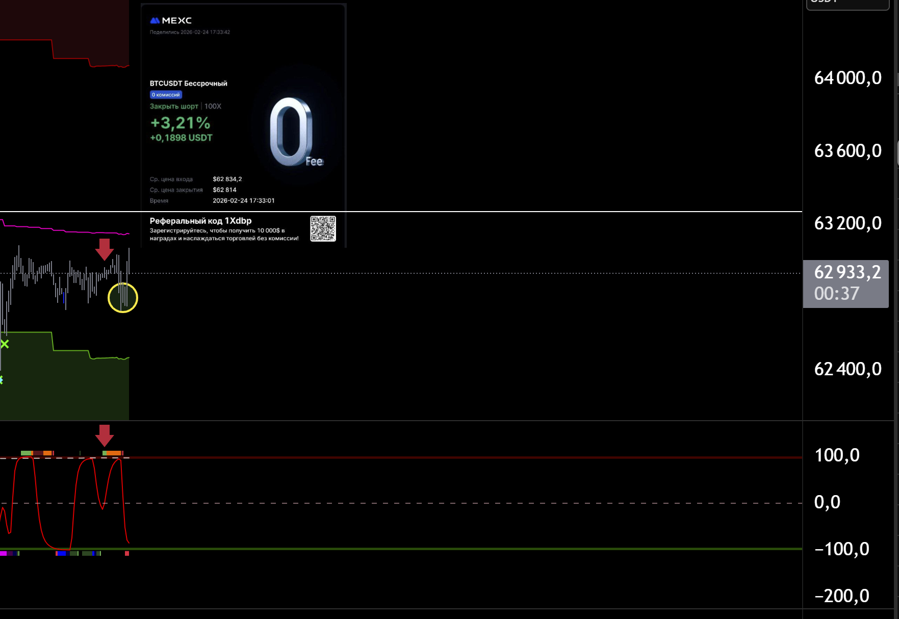 Зашел на лое по пику спад, но линия цикла была уже вверху, в итоге получил второй лой в подарок. Решил усреднить и выйти на следующем лое.
