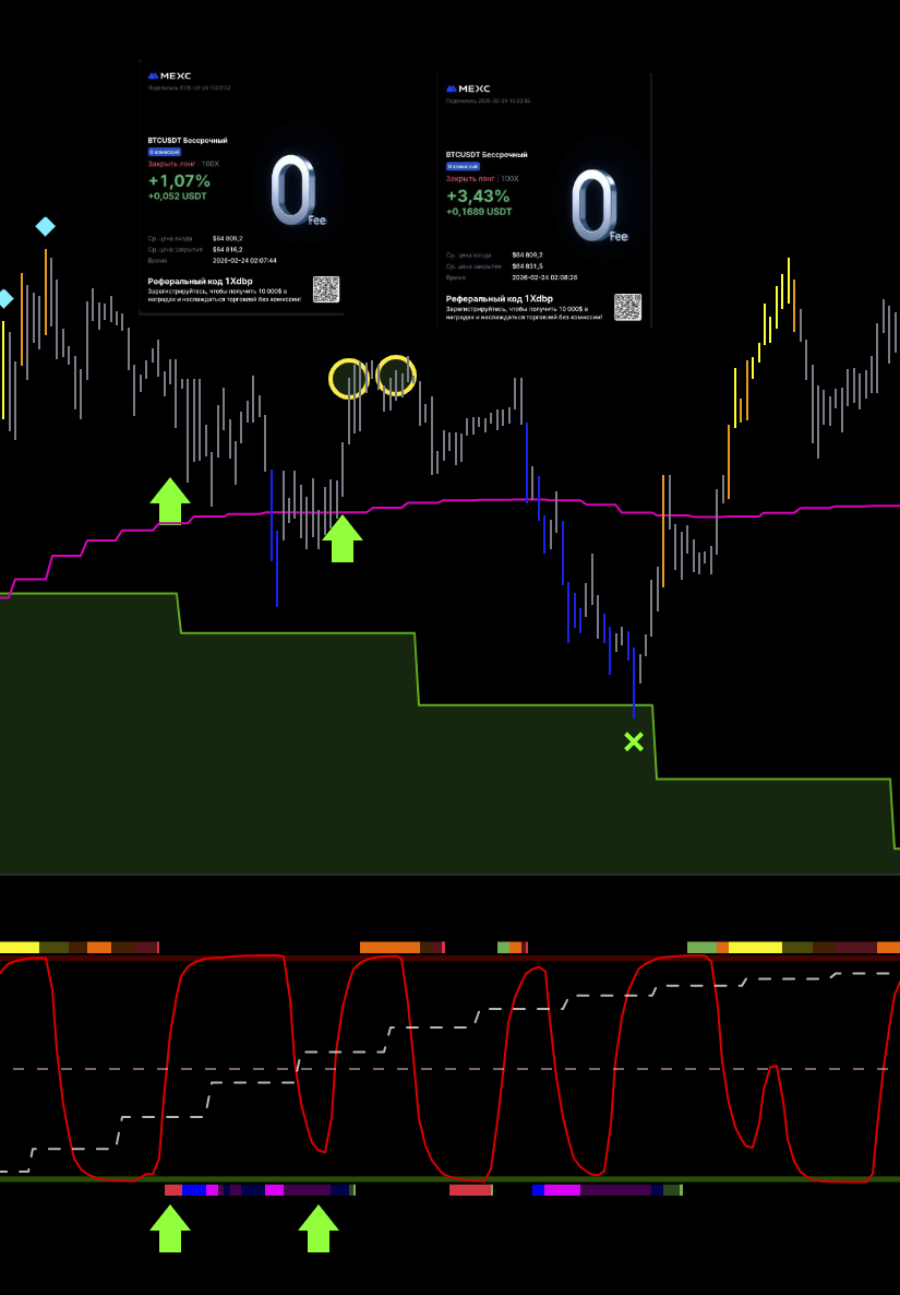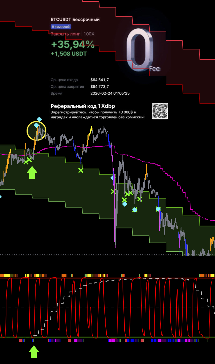 Если тренд зеленый - лонгуем 1-2 раза. Шортим ну наверное тоже 1.