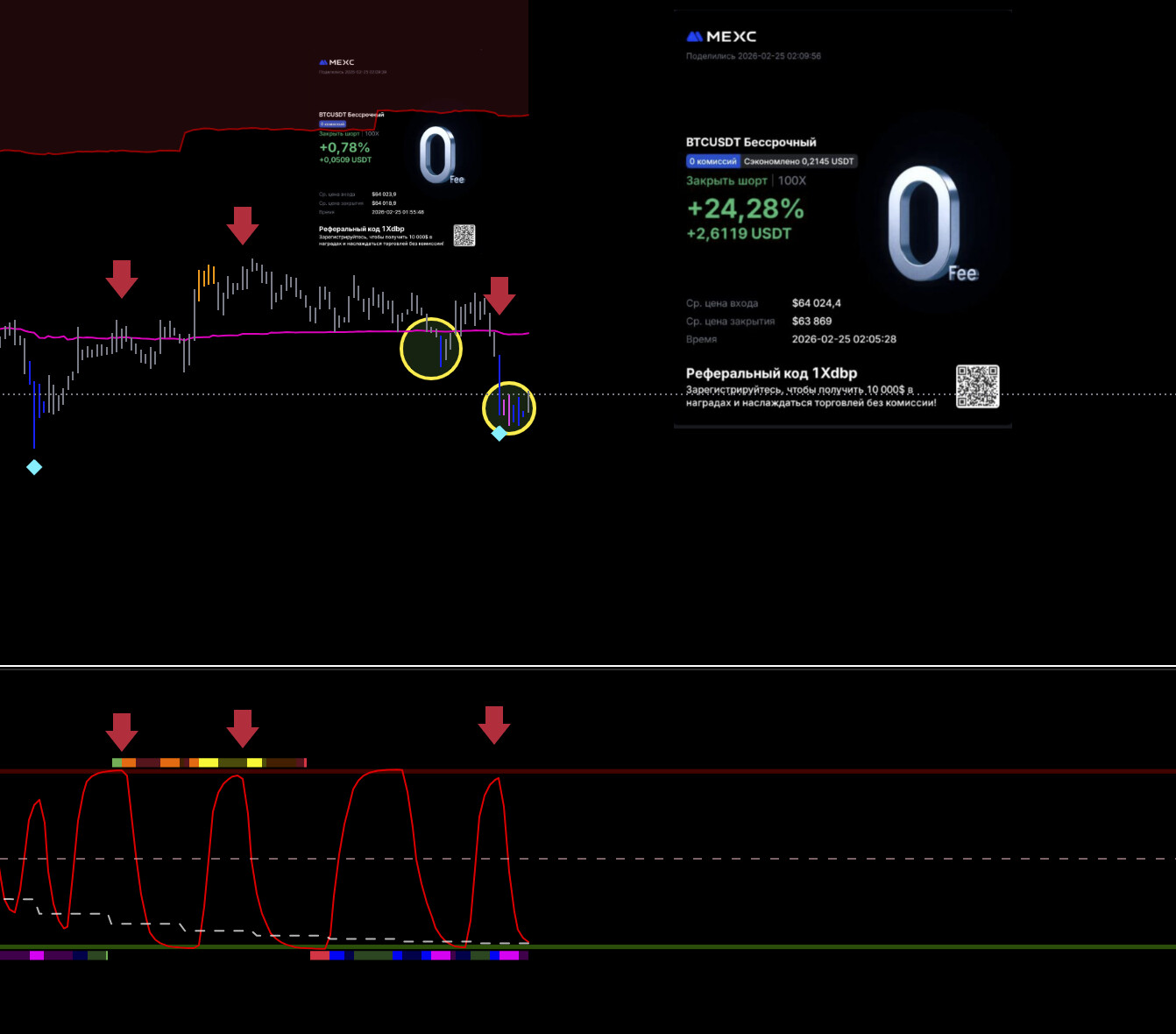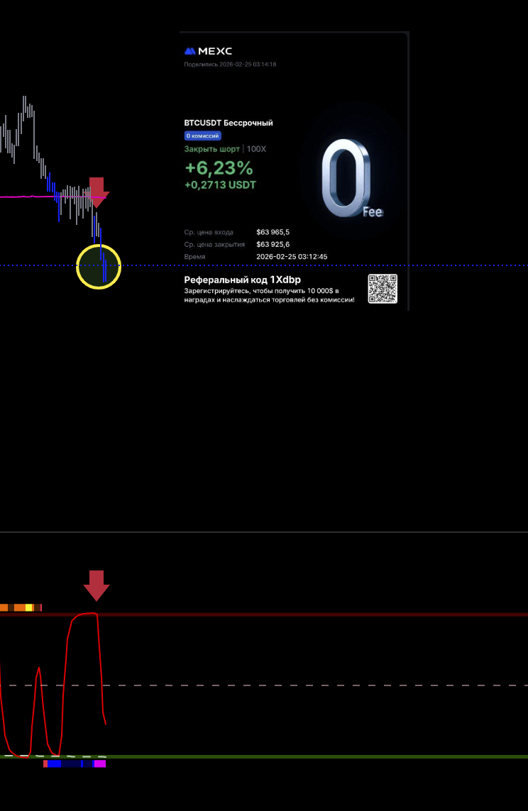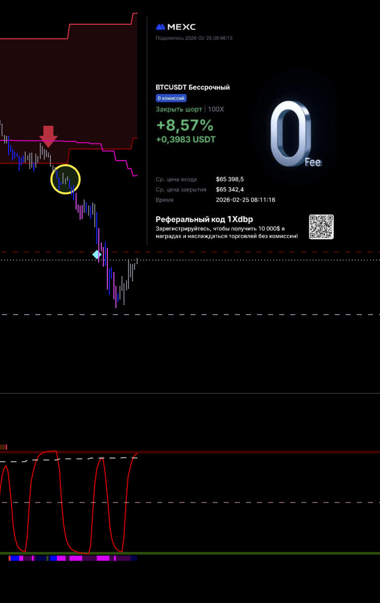 Поставил тейк на красивую цифру которой не хватало до х2). Мы в целом на хаях после бурного ночного роста, и цена уже идет в откате. Дошла до баланса. Цена под балансом - это ок. Сын на хае - это ок. Отец ну где то сверху - ок, но лучше бы чтобы был на хае в зоне бифуркации. Сила у сыночки корзиночки не горела. Объективно не лучшая сделка.