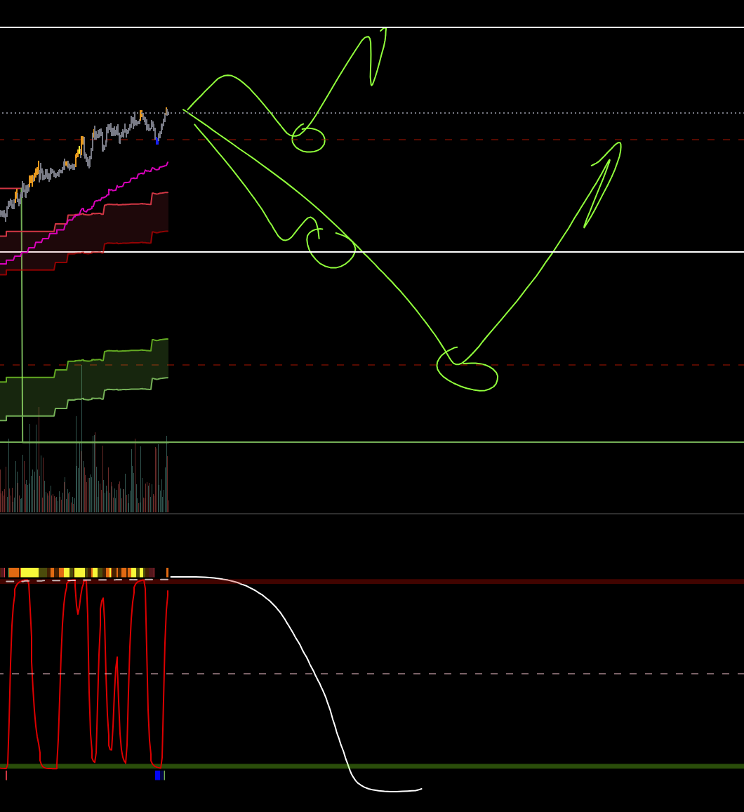Линия цикла старшая предательски падает все ниже. А движения нет. Вижу что откат снова вверх и снова ретест, доливаюсь снова и о чудо движение вниз хоть какое-то есть.