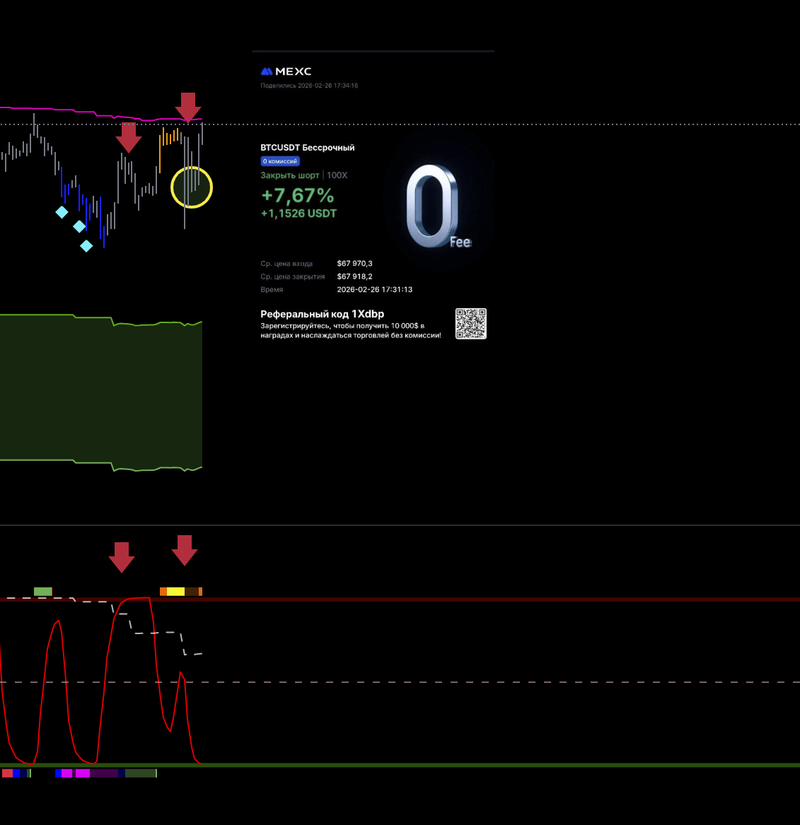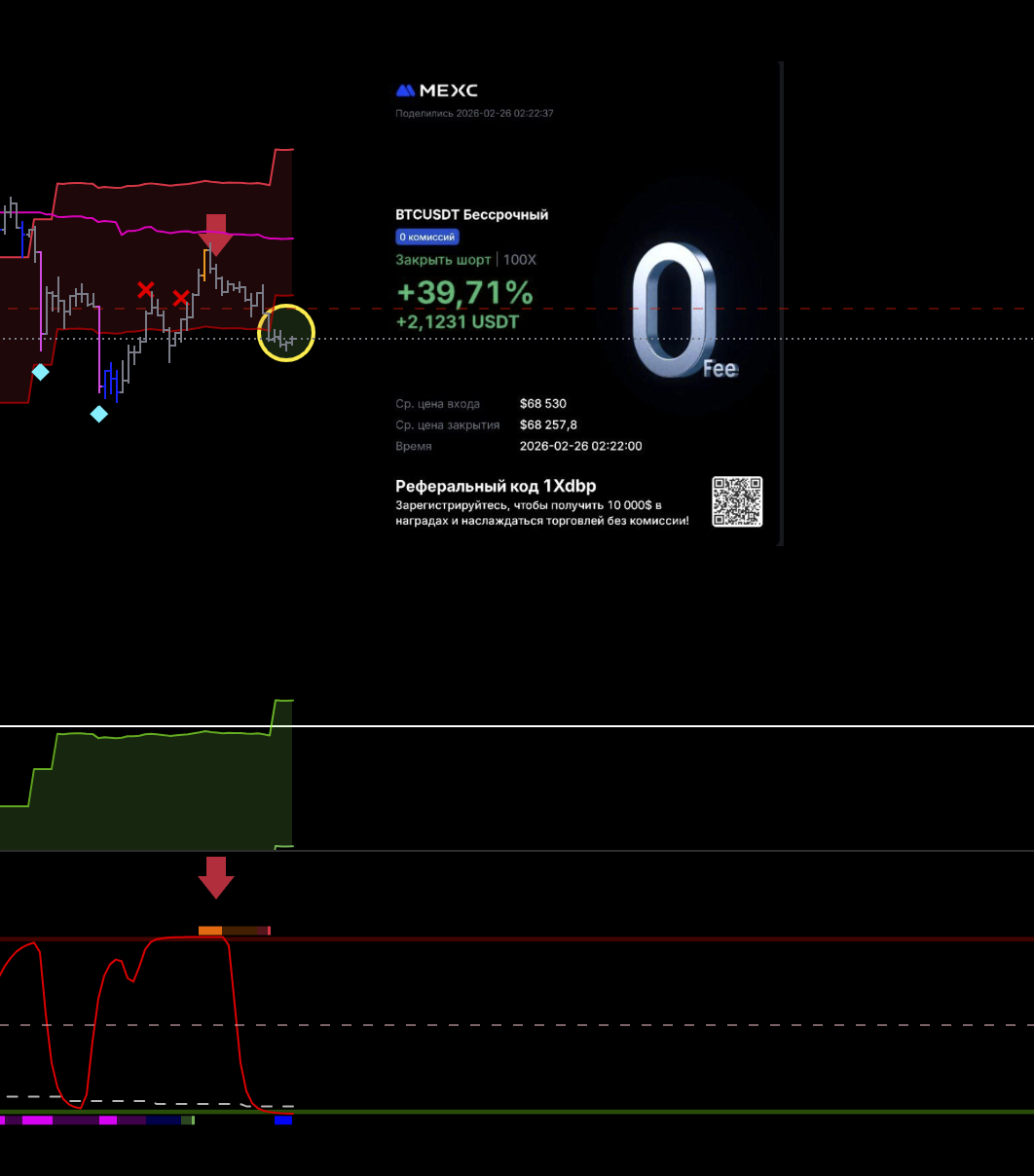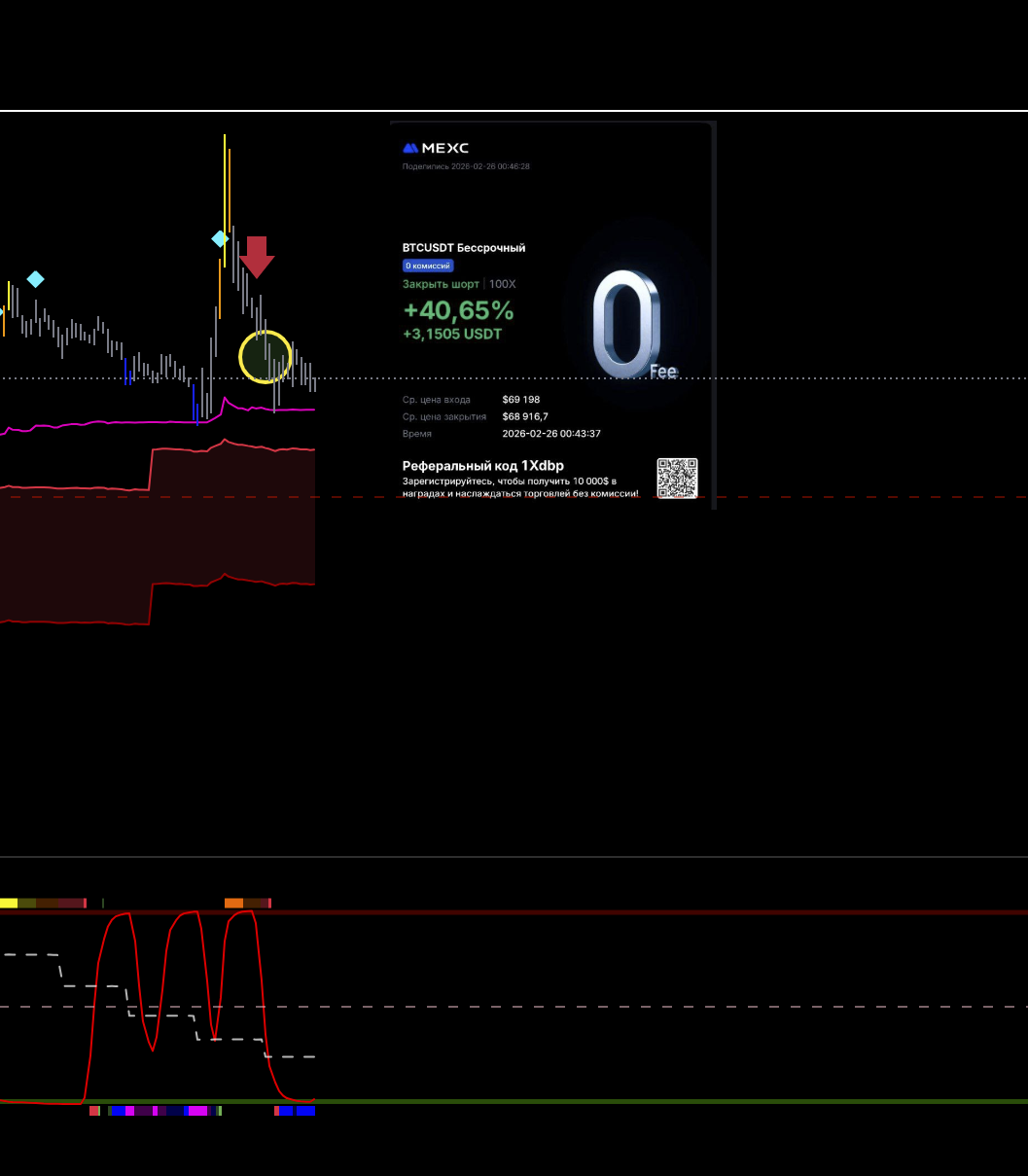 Первая идеальная сделка за эти сутки. Старшая линия цикла идет вниз. Локальная на хае. Горит сила пика. Цена под балансом. Как дошли до лоя вышел.