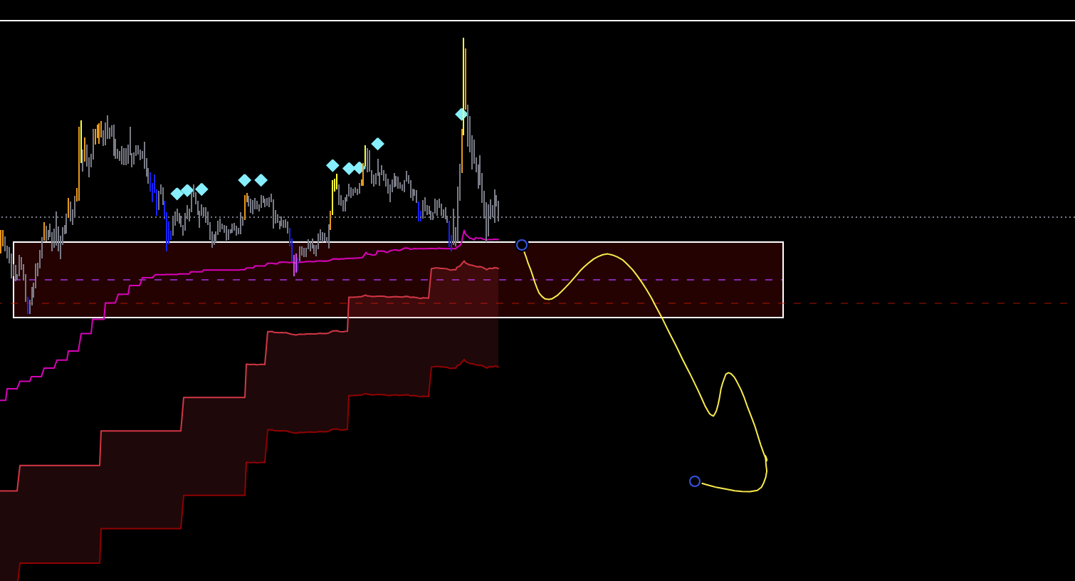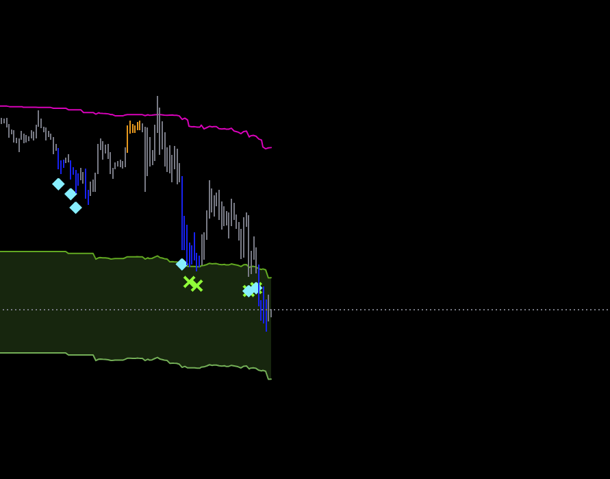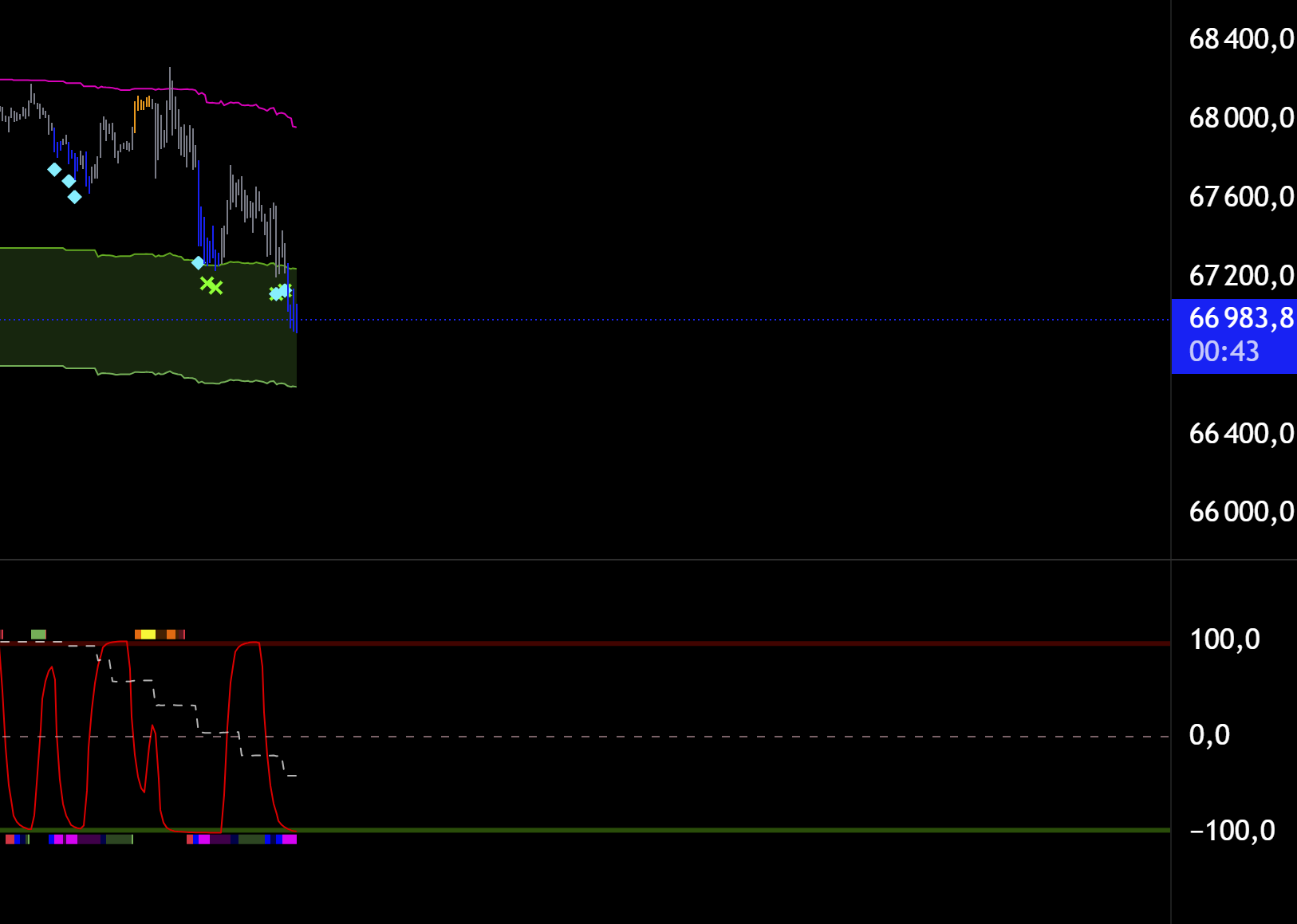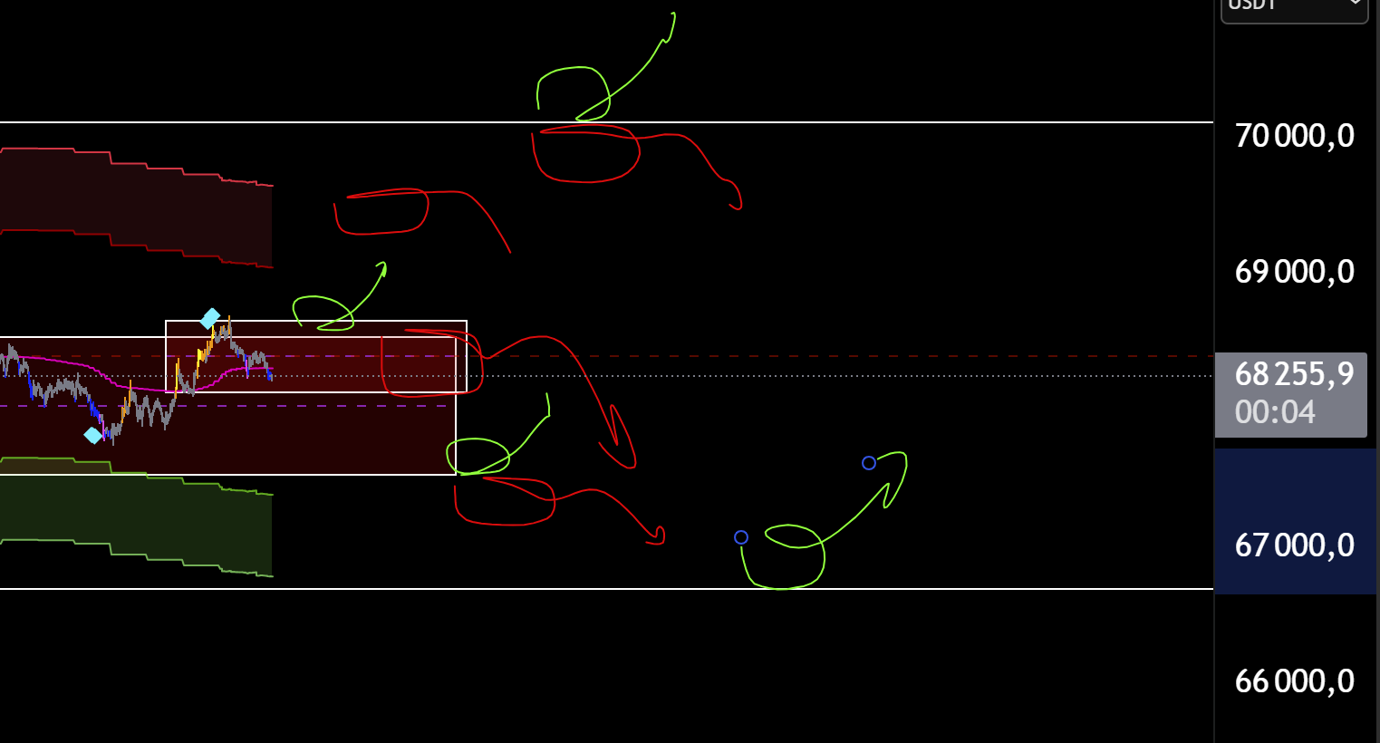 В зеленой зоне торговать в шорт - это уже лой. Буду ждать старший цикл на лое и искать лонги.