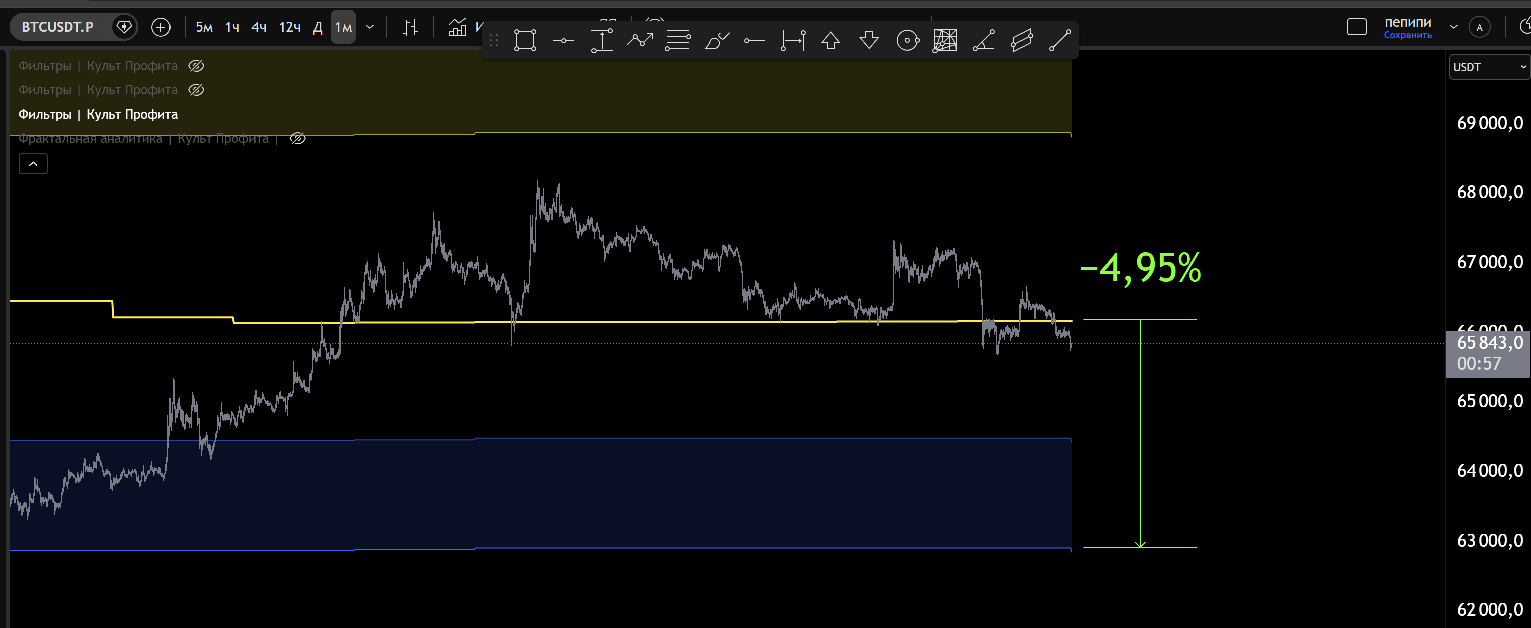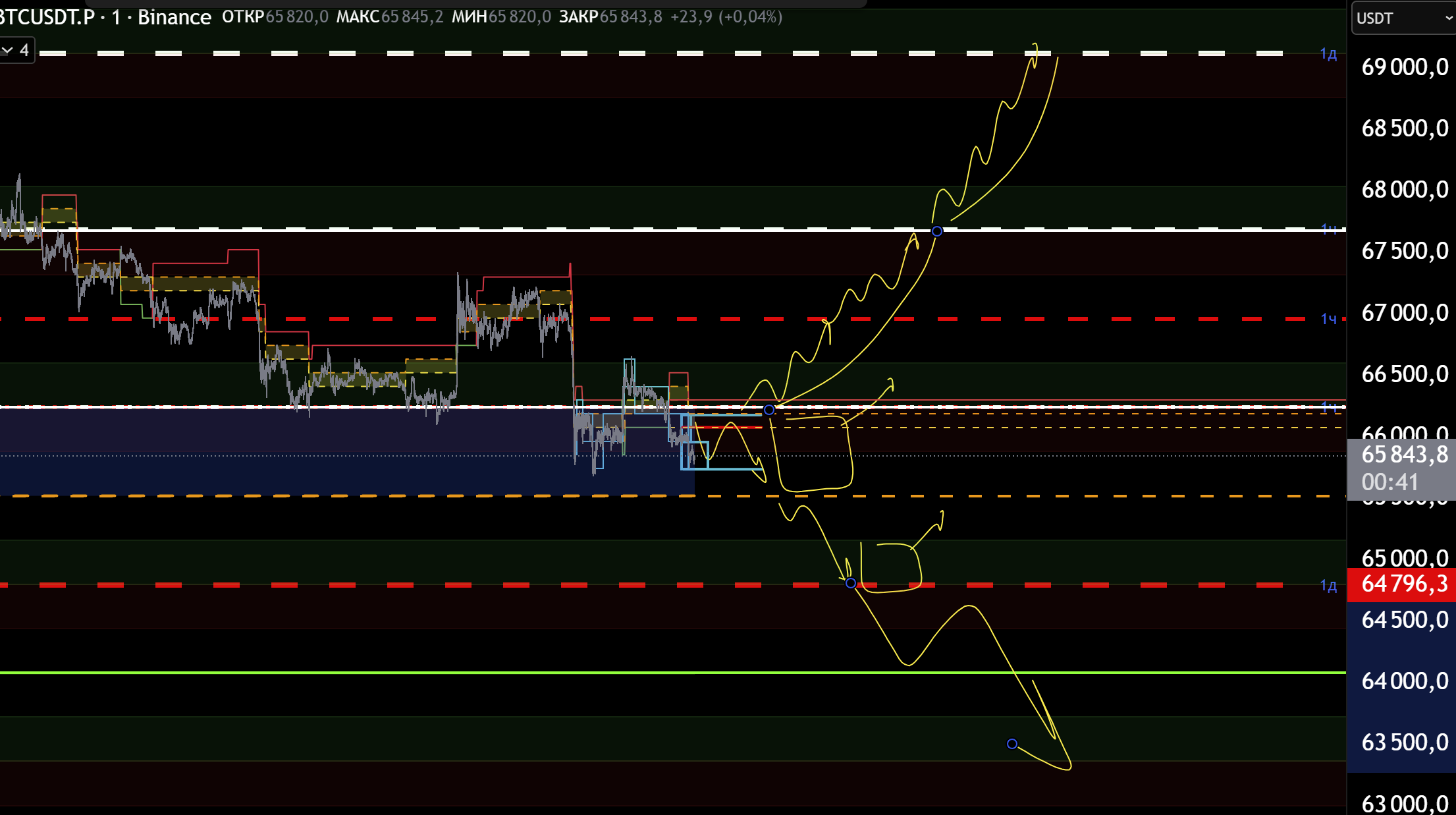 Тут хорошо видно. Что шорт вполне реален минимум до средней дневники 64796. Далее от нее ниже или разворот. Возьму за ориентир. Локальное смотрю на баланс часа.