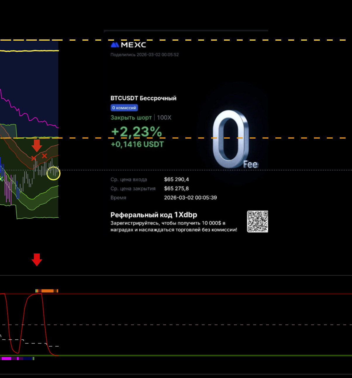 Вспомнив стрим, и концепт с него, уже потом увидел что до этого было два хая по п/с и откат к лою в виде боковика. Это навело на мысль что движение может в целом развернуться. Да и в целом часовой тренд лонг. Было больше двух откатов.