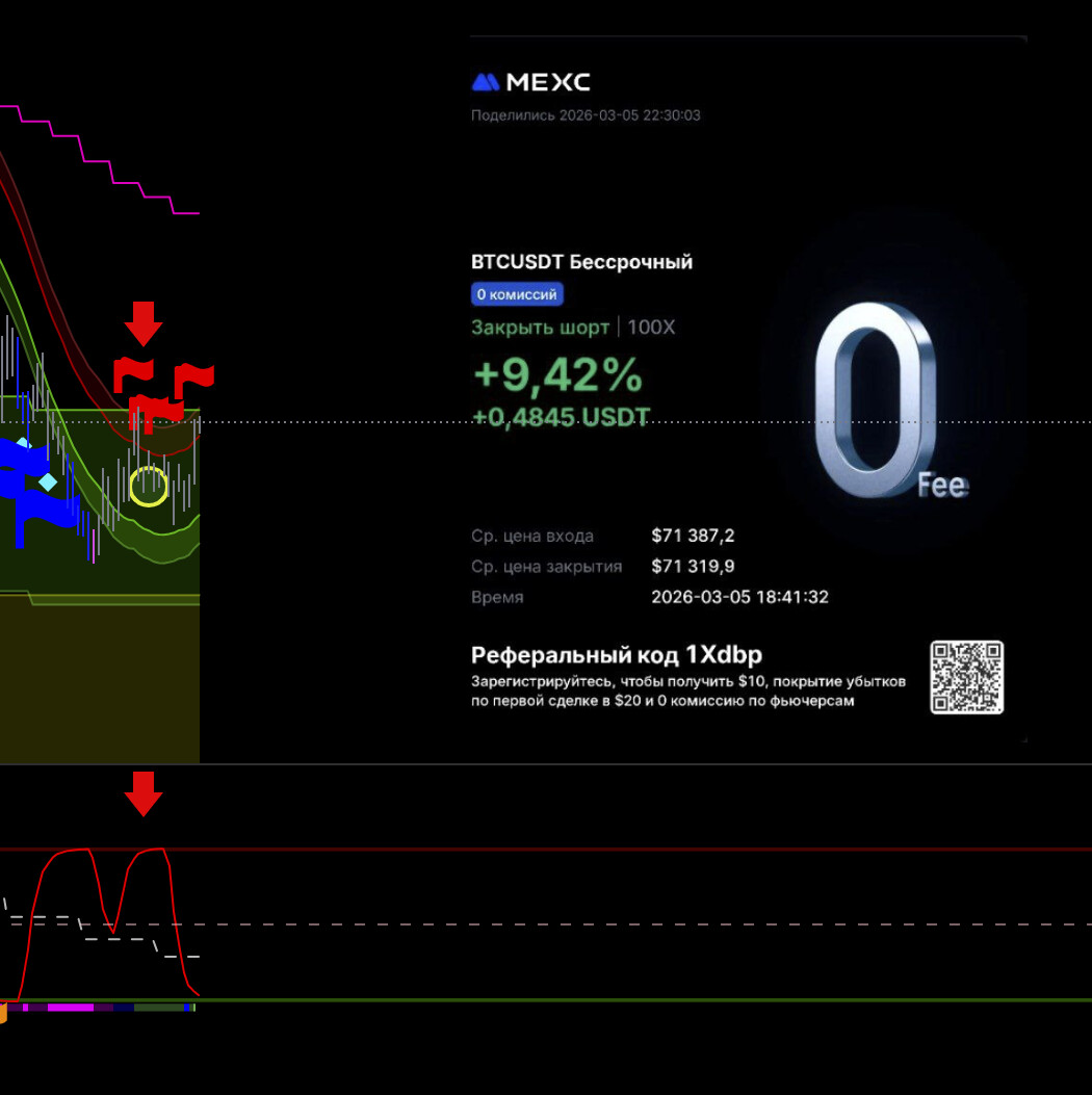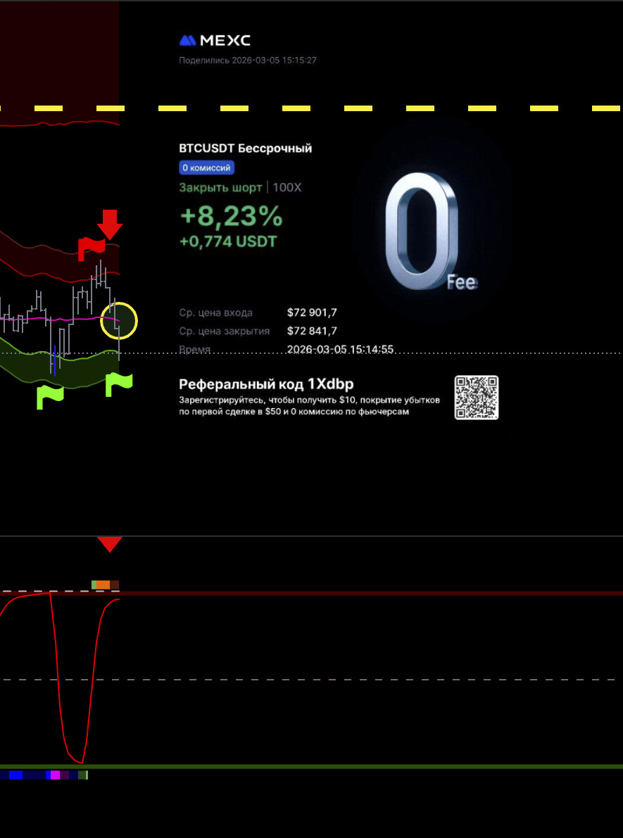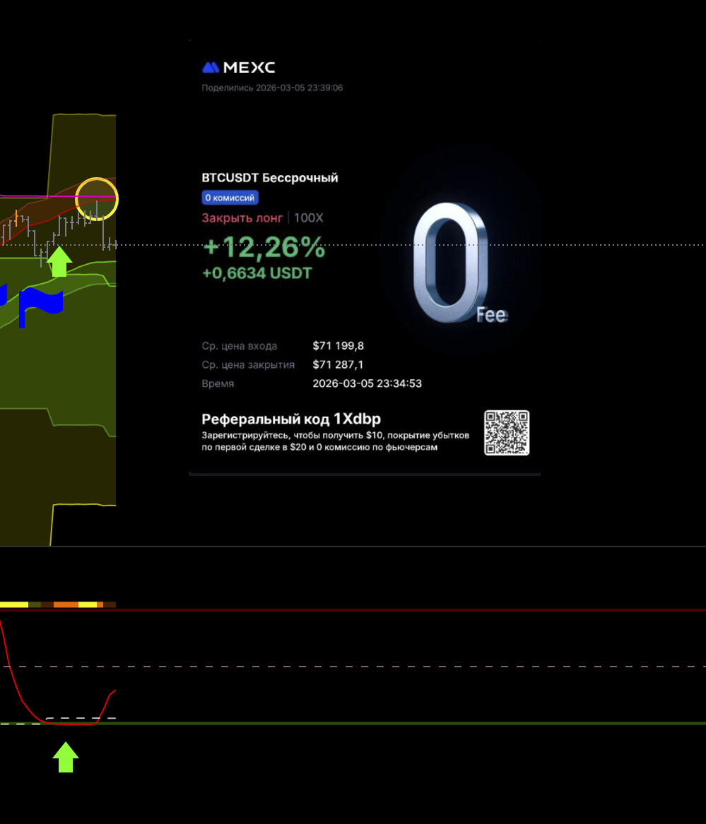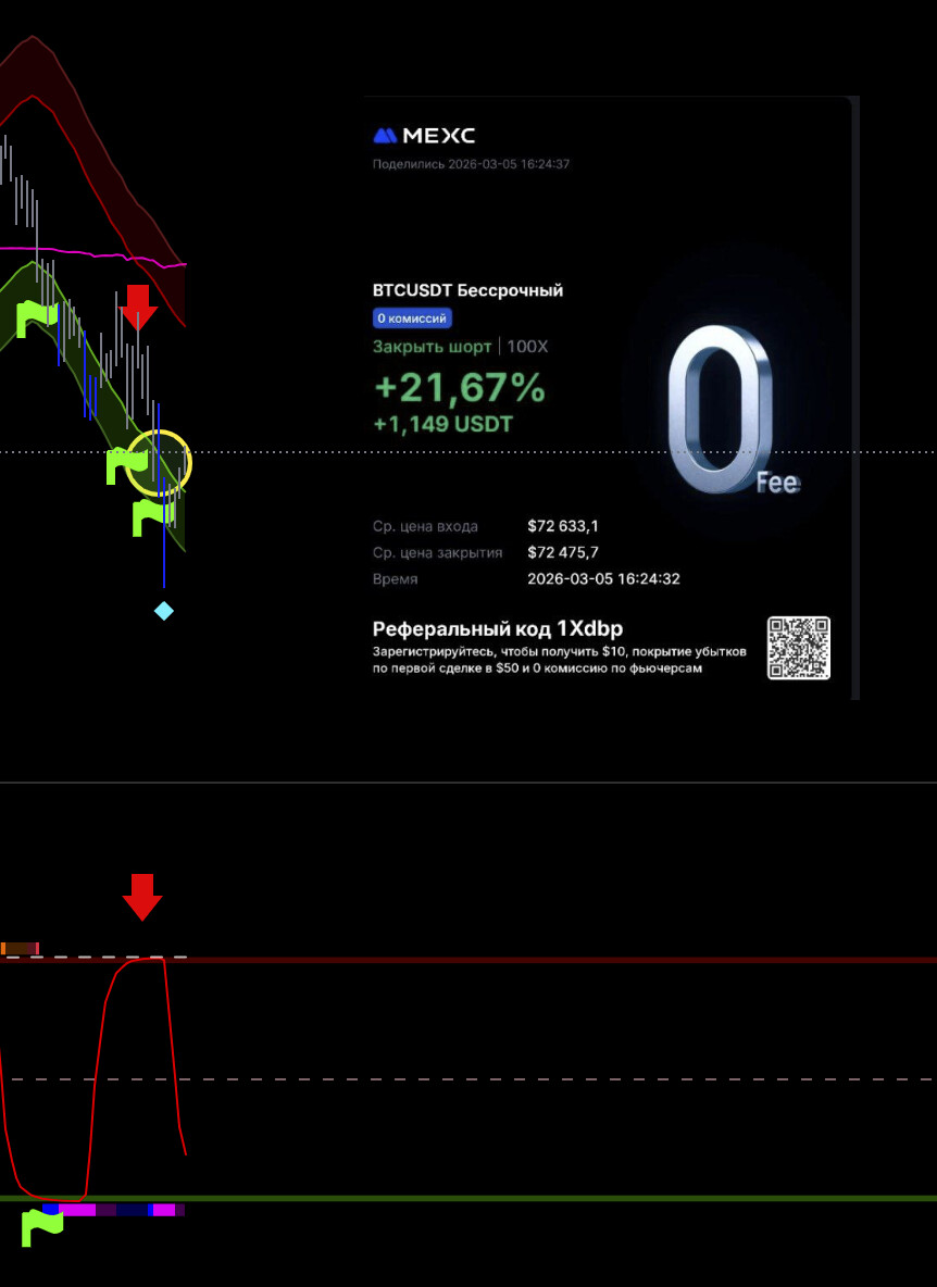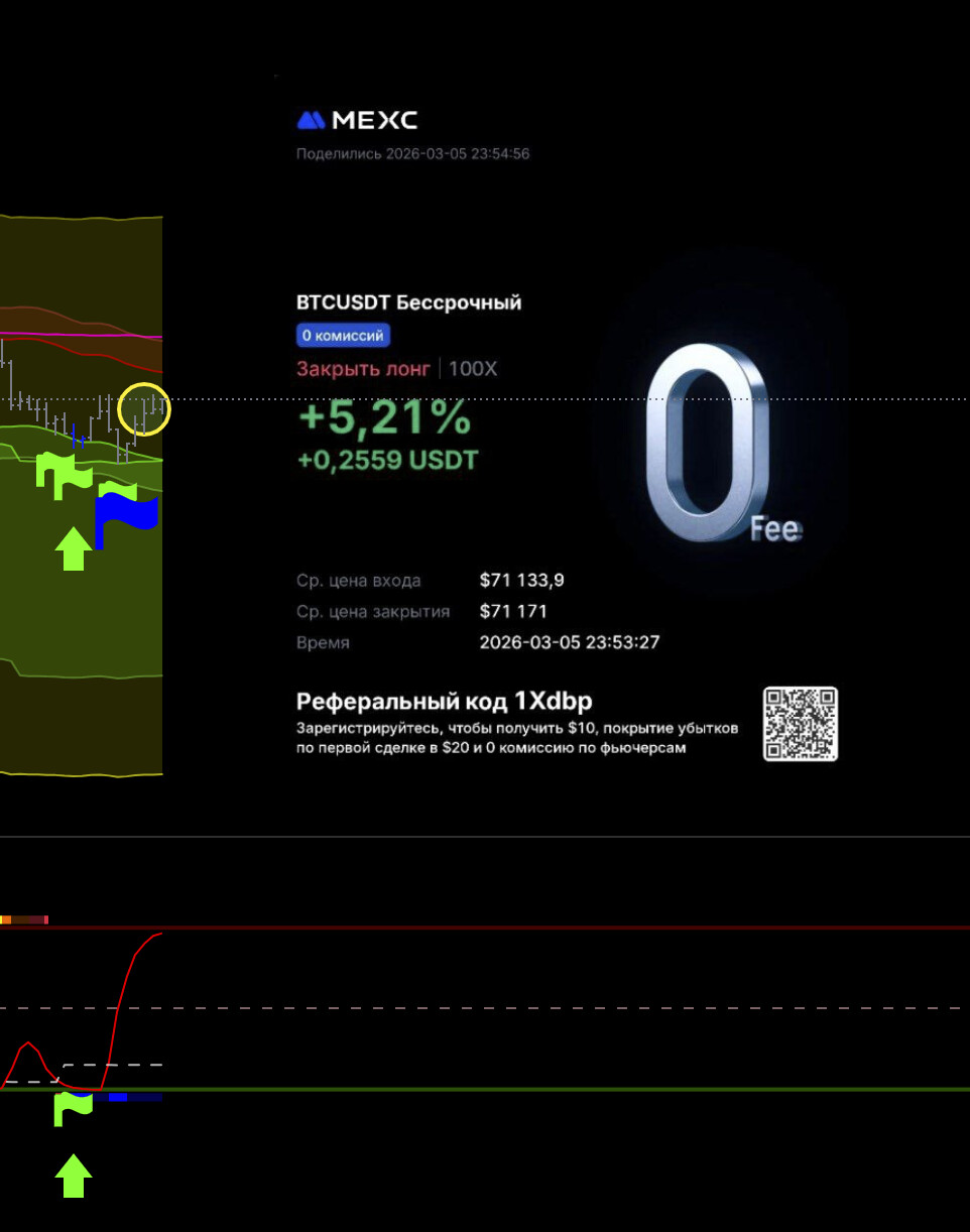Тут потенциально хорошая сделка, но не рискую, выходу видя что цикл уже сверху, а движения все нет, да силы нет по логике, сейчас все улетит х2. Но лучше потом перезайти выше баланса.