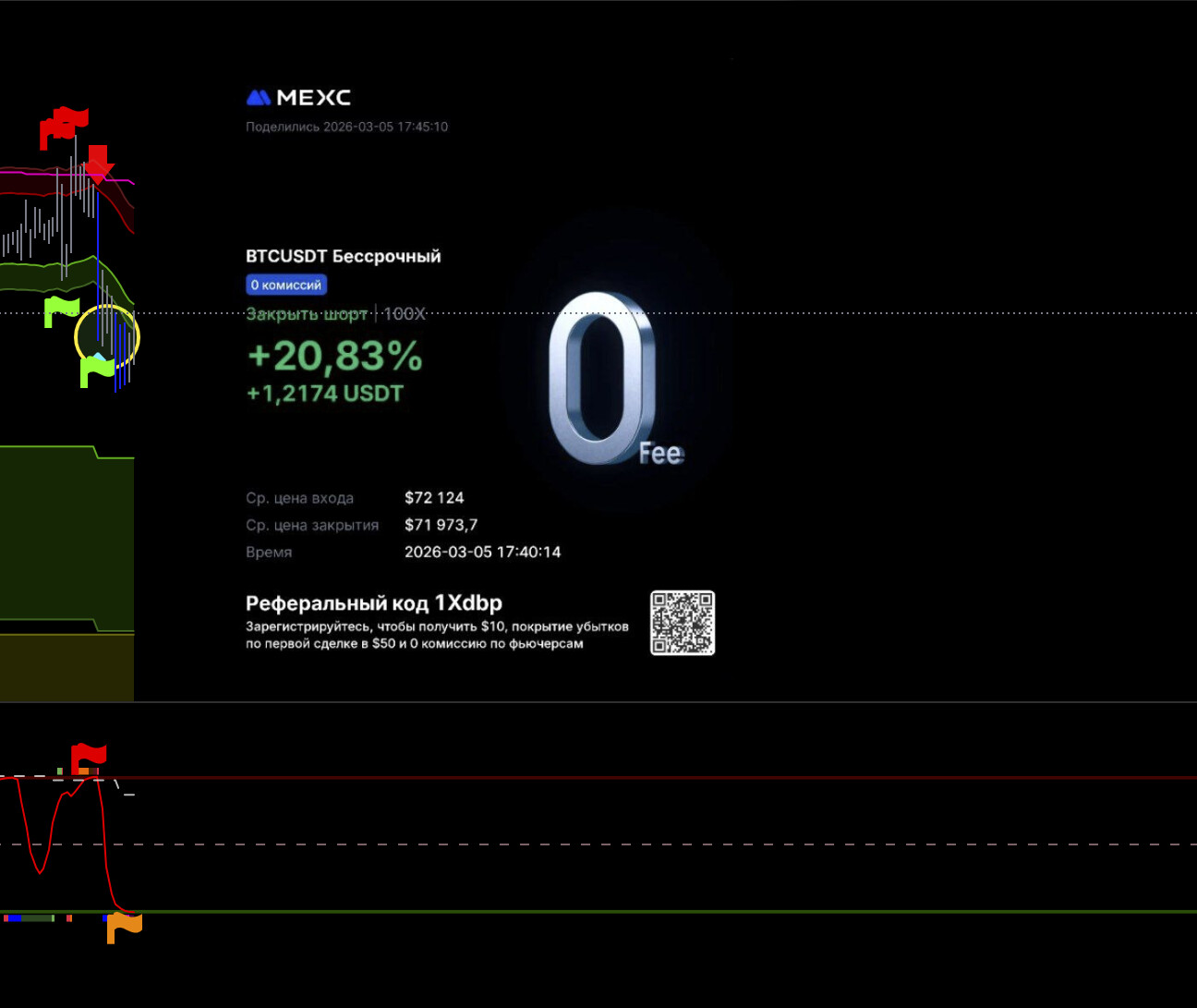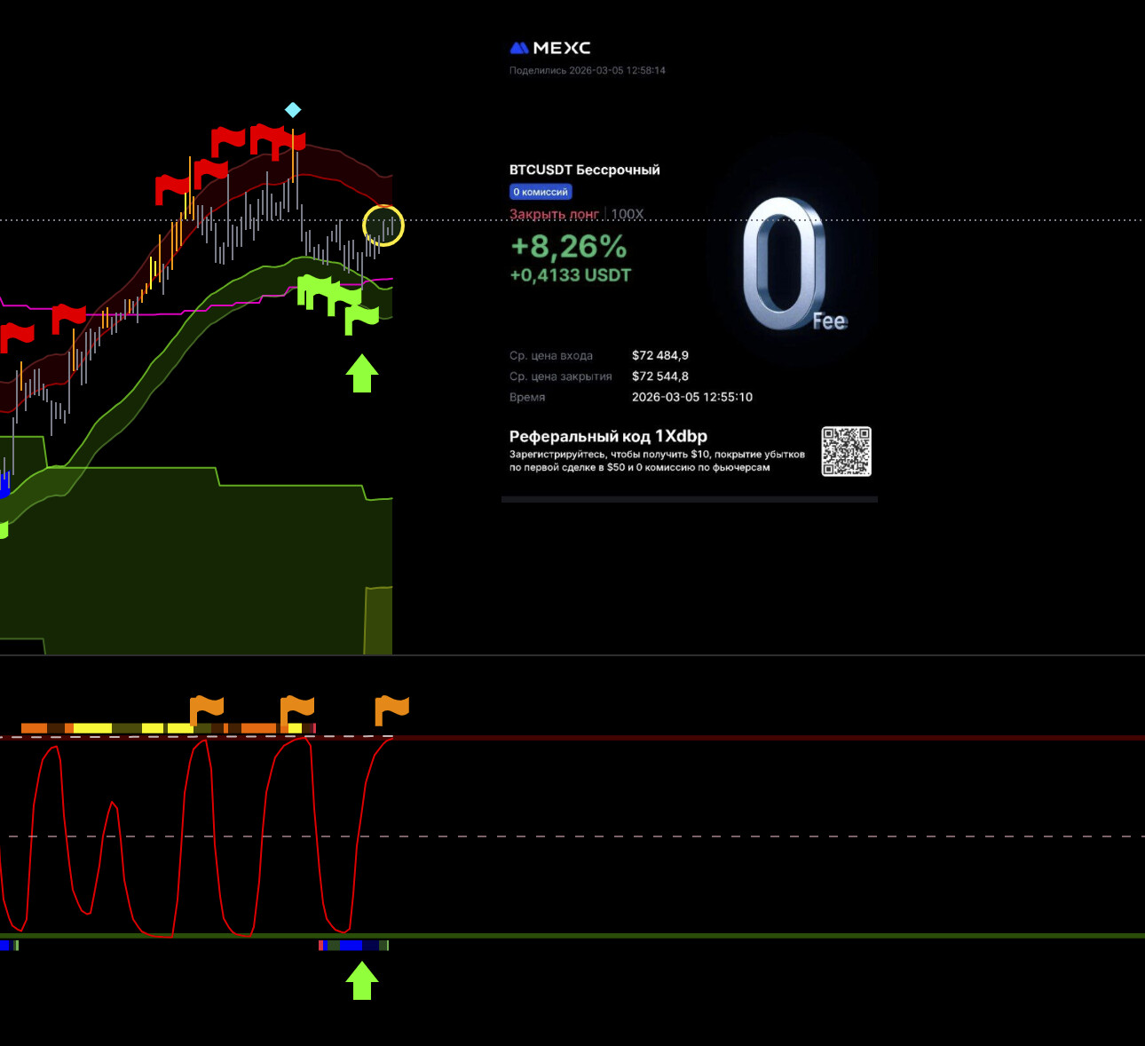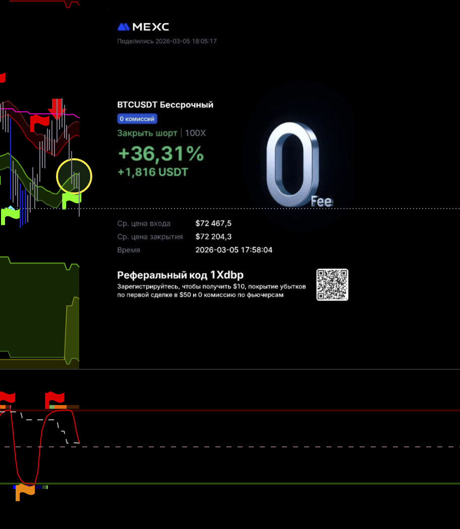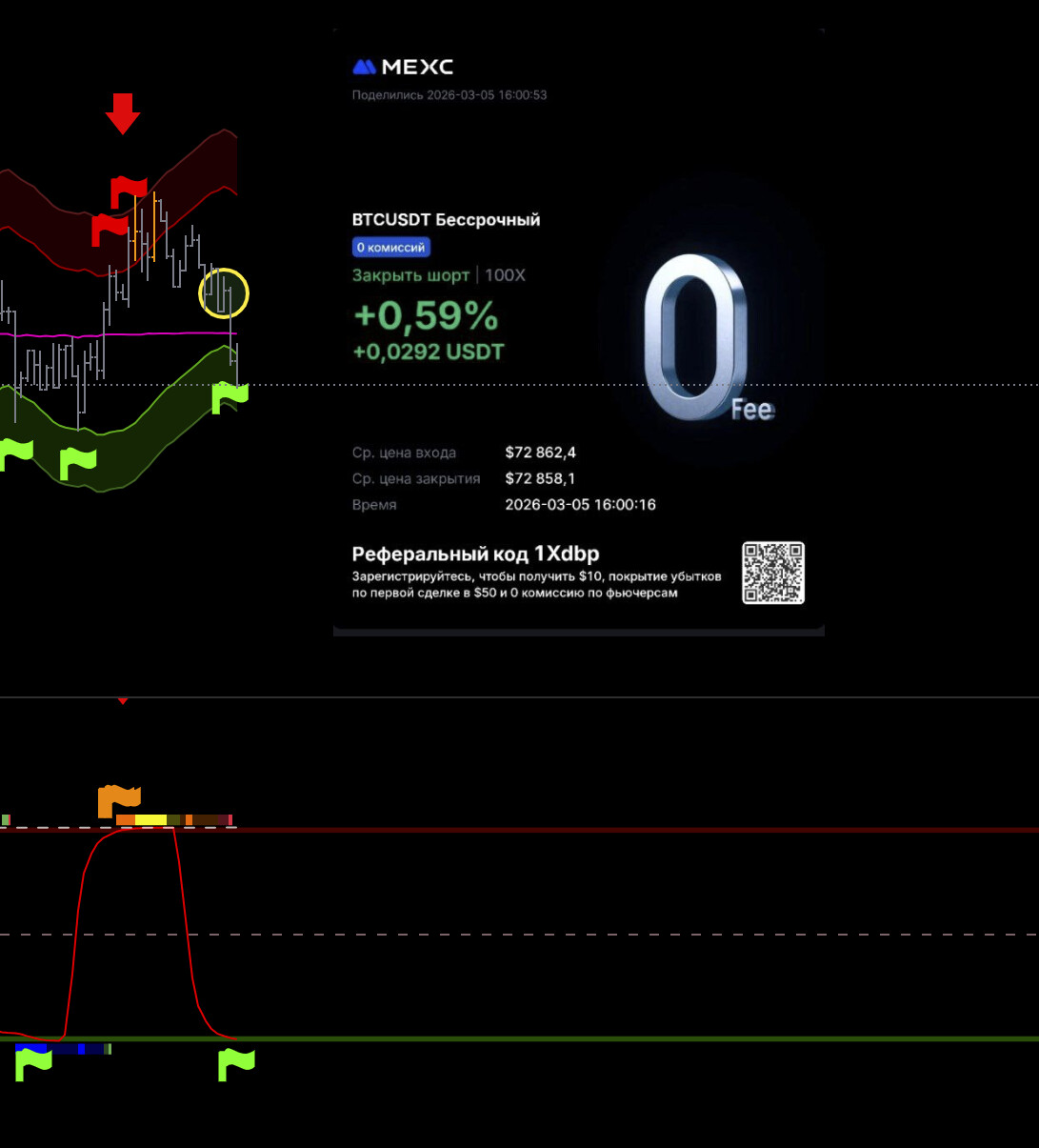 Тут потенциально хорошая сделка, но не рискую, выходу видя что цикл уже сверху, а движения все нет, да силы нет по логике, сейчас все улетит х2. Но лучше потом перезайти выше баланса.