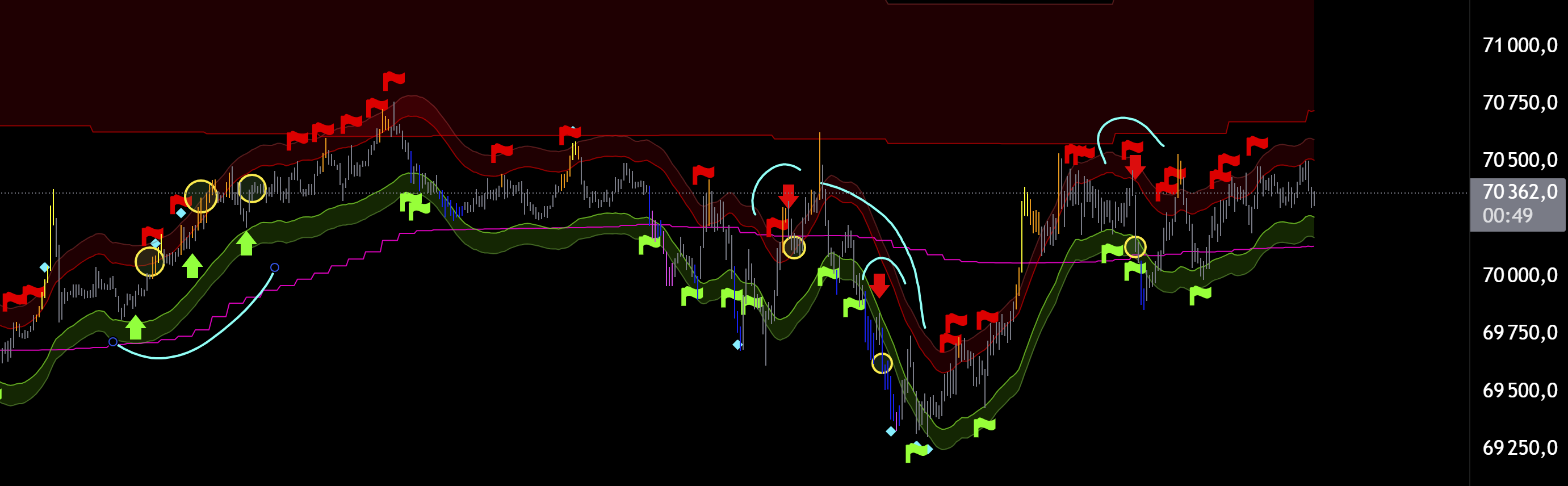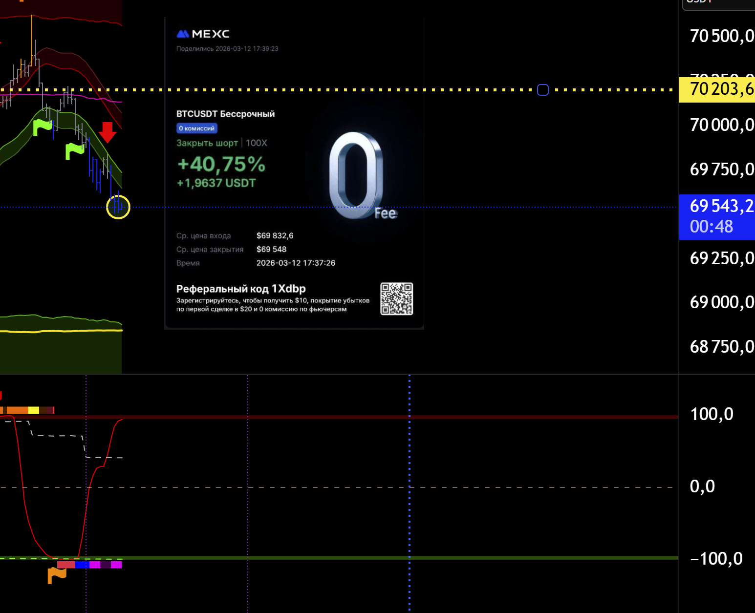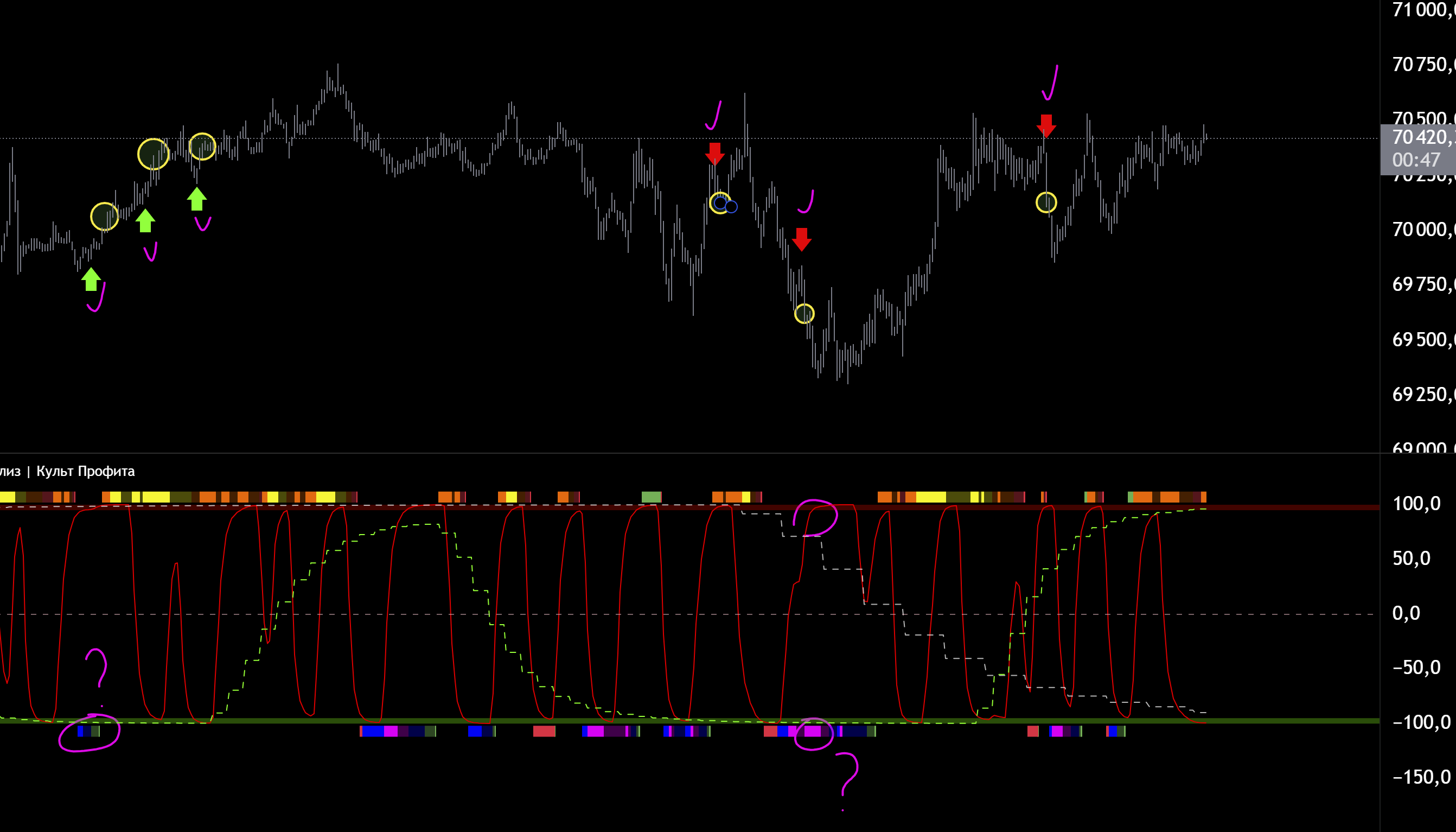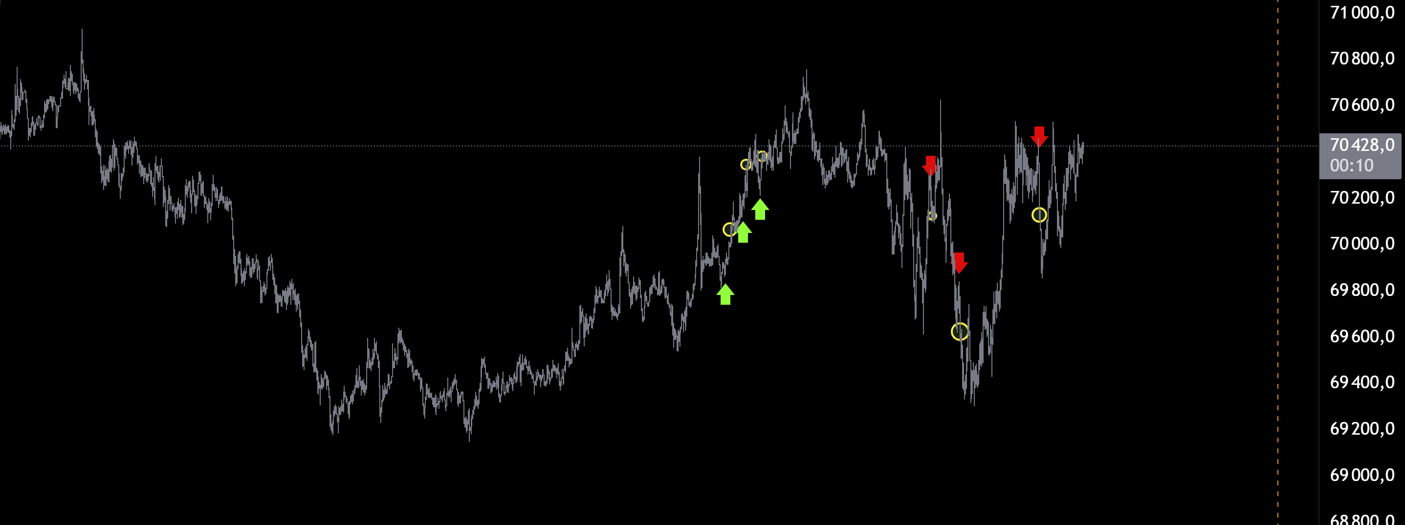 Да и в целом мы на хаях есть куда падать так то. СЦ хай. МСЦ лой. Ждать МСЦ хай и шортить на досос к 69100. Если упадем ниже 69100 еще лучше от хая шорта тоже. Ну вот такое ичо