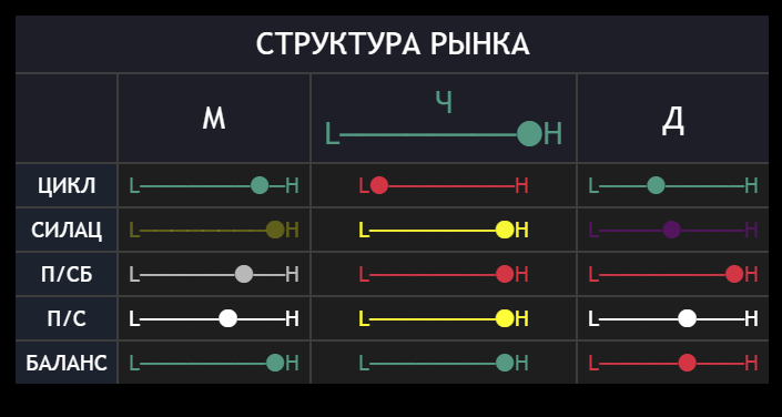 Столбил час - это старший тренд. Видим что он уже почти везде на хаях. Лонговать сейчас ну как будто не интересно. Но можно если аккуратно, так как полноценно H только на двух ползунках.