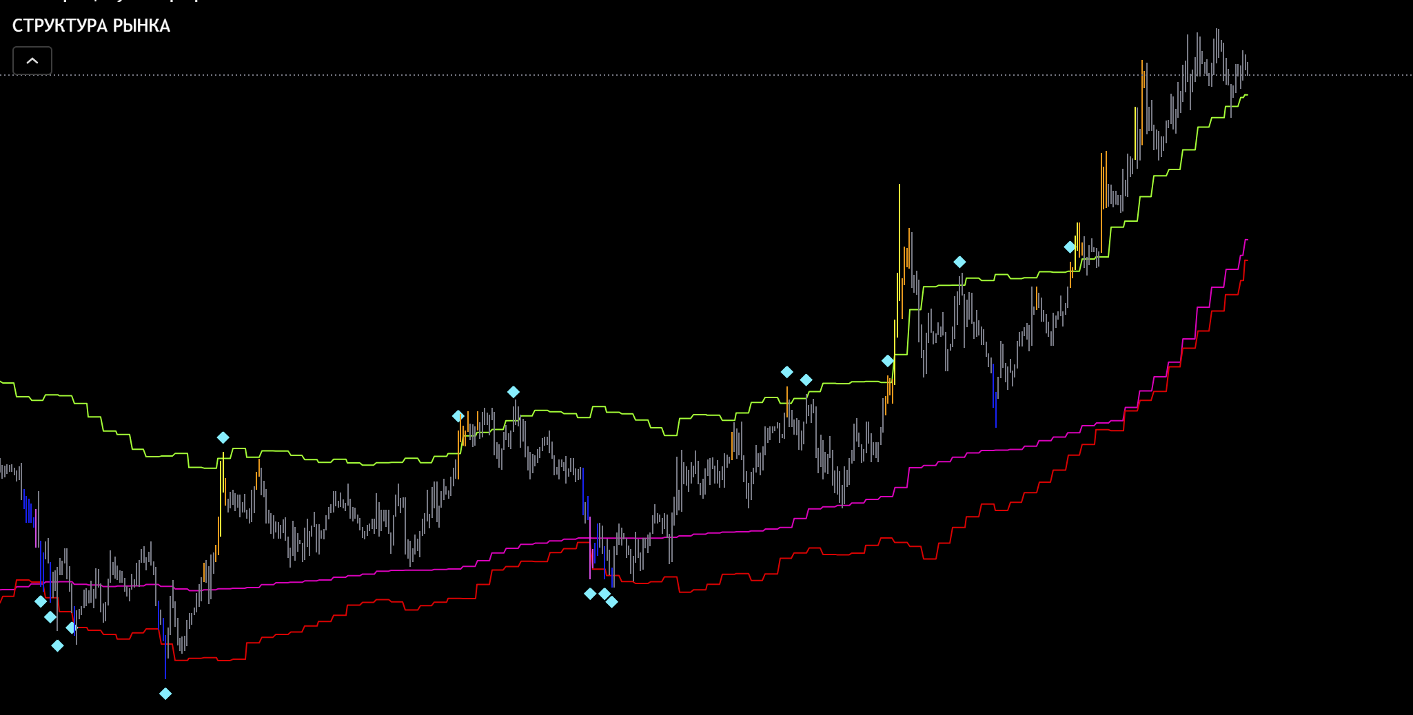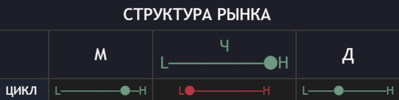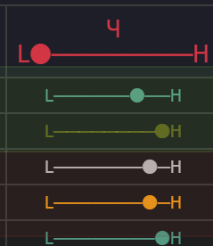 Это наши границы на графике. Если цена в зоне лоя то ползунок на L и горит зеленым.