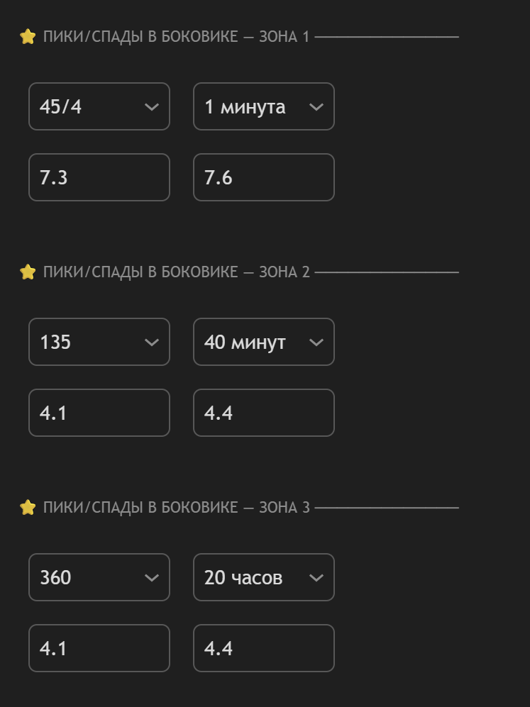 Пики спады в боковике.