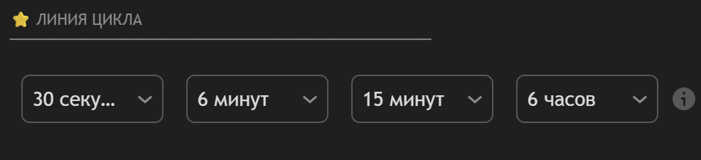 В месню мы выставляем каждый ТФ. Тот цикл который в ячейке с буквой Ч - это 6 минутный.