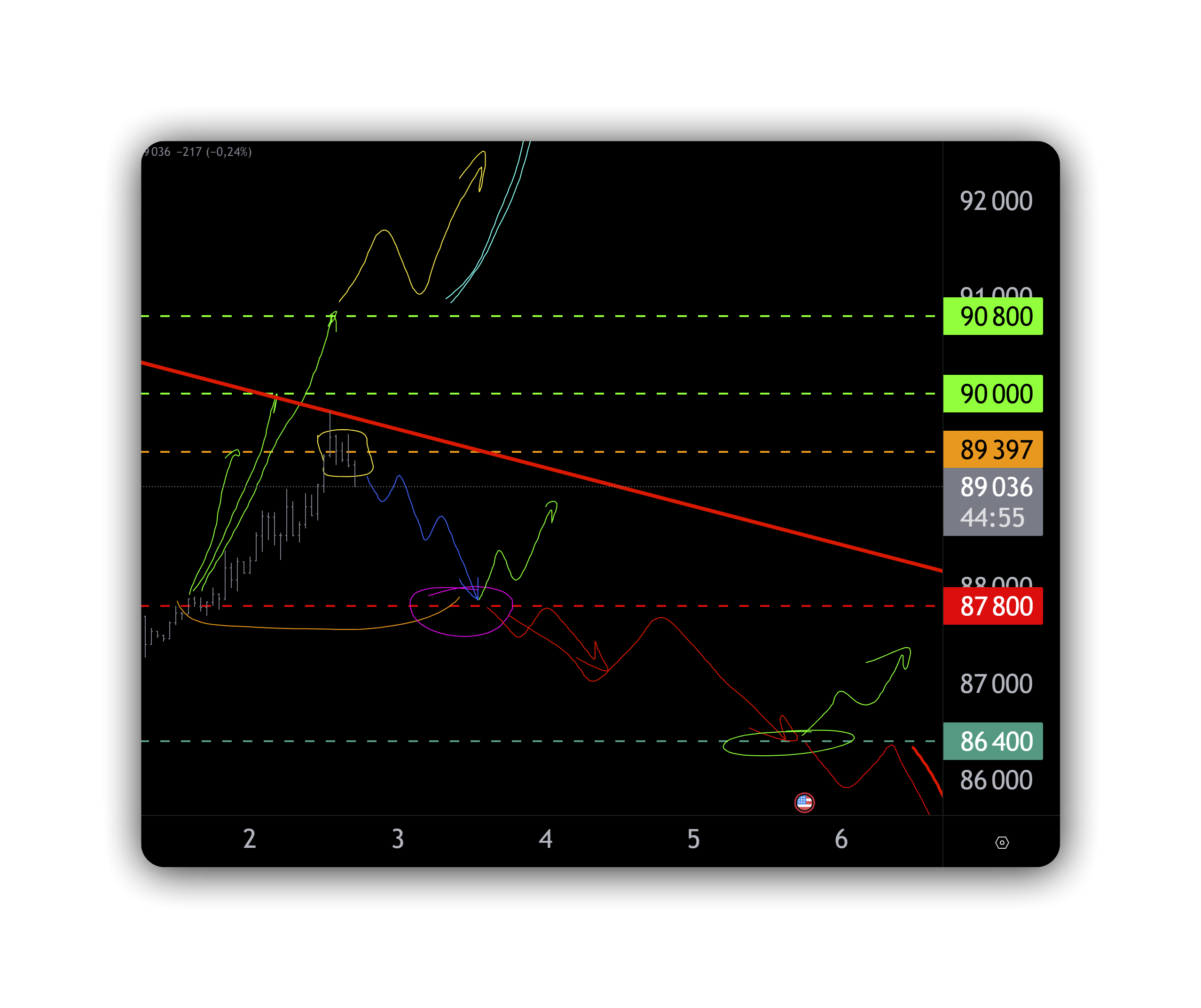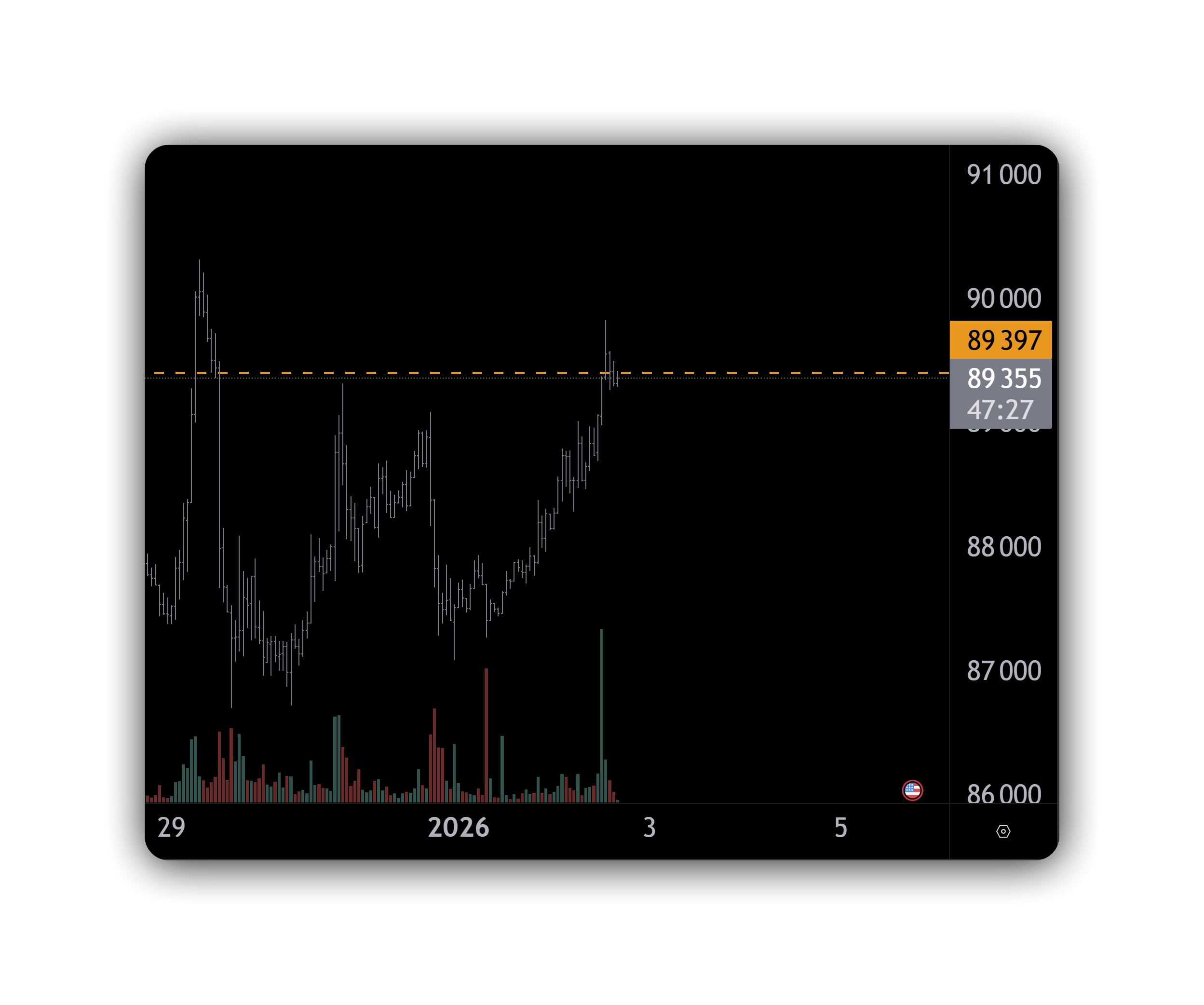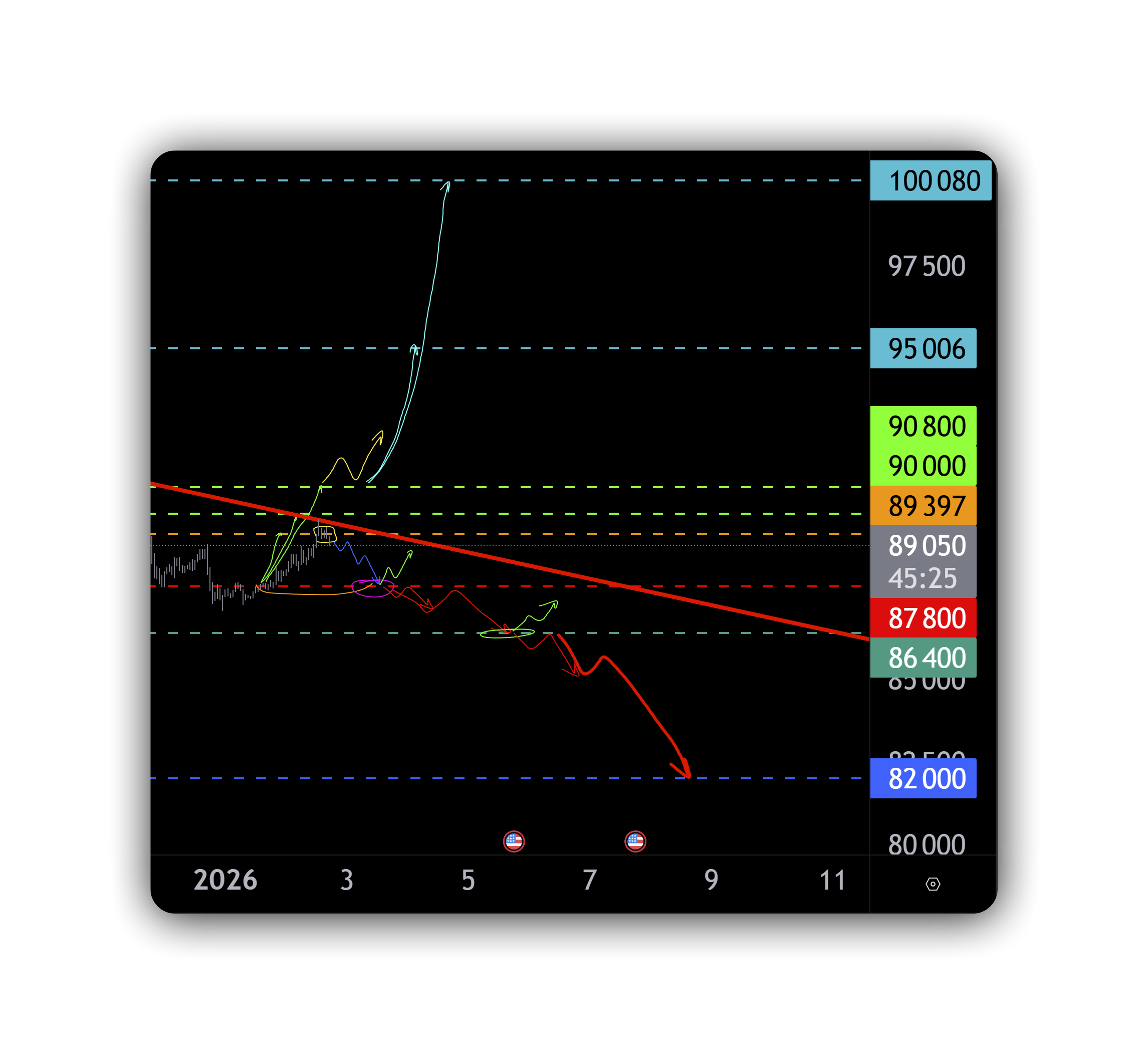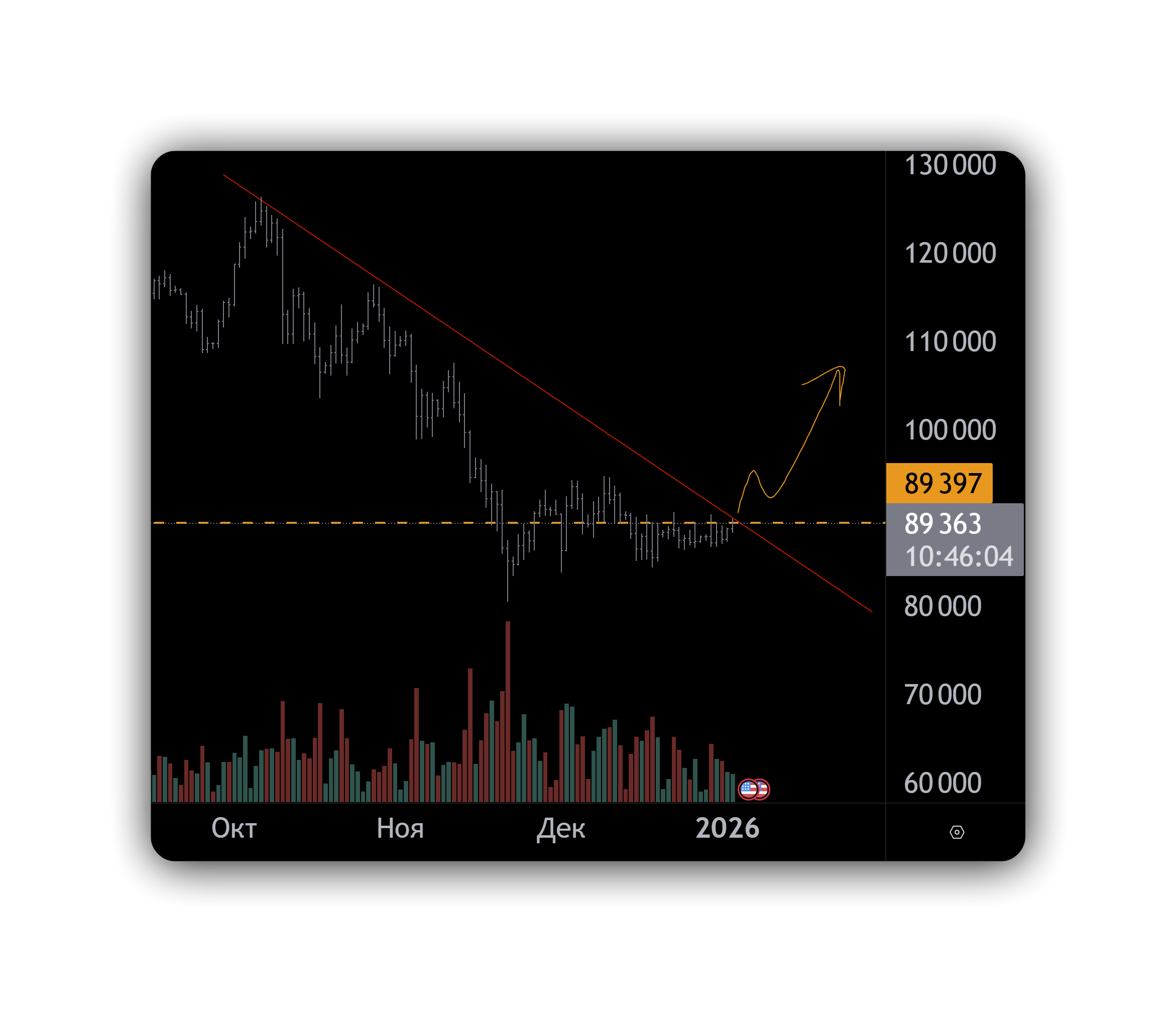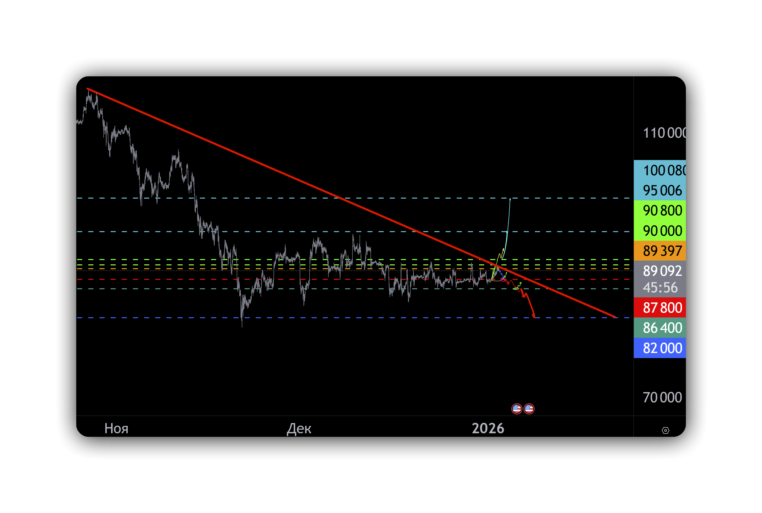 Текущая цена биткоина сейчас — около 89 400 долларов. Это не просто цифра на графике биткоина, а ключевая зона принятия решений.