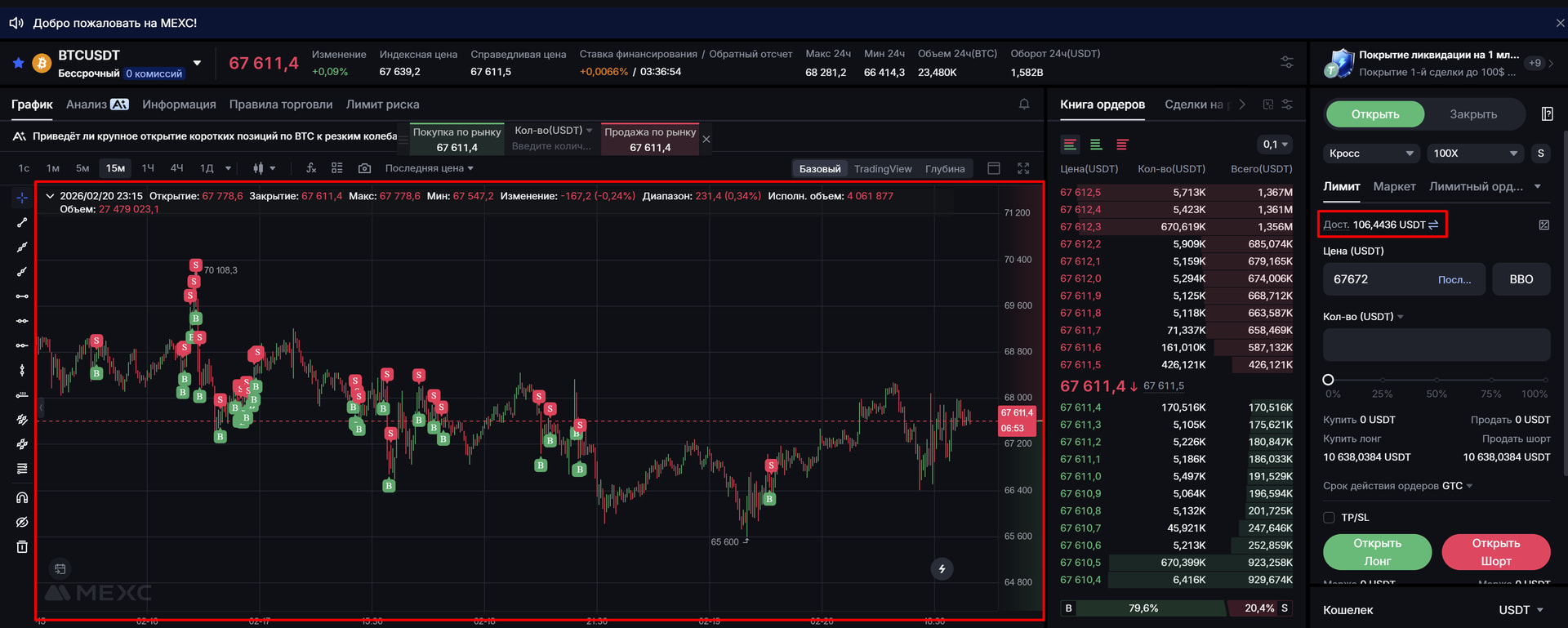 Баланс на конец 106 USDT
